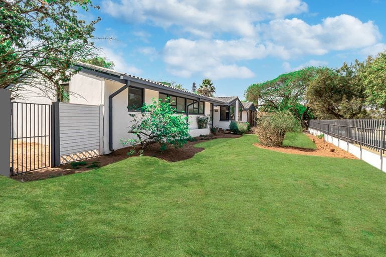 Discover this inviting 3-bedroom, 2-bathroom family home situated in the desirable suburban area of Constantia Kloof, South Africa. Boasting a fresh white and grey exterior with large windows, the property presents excellent appeal, complemented by a meticulously maintained front lawn and mature trees, creating a welcoming first impression.