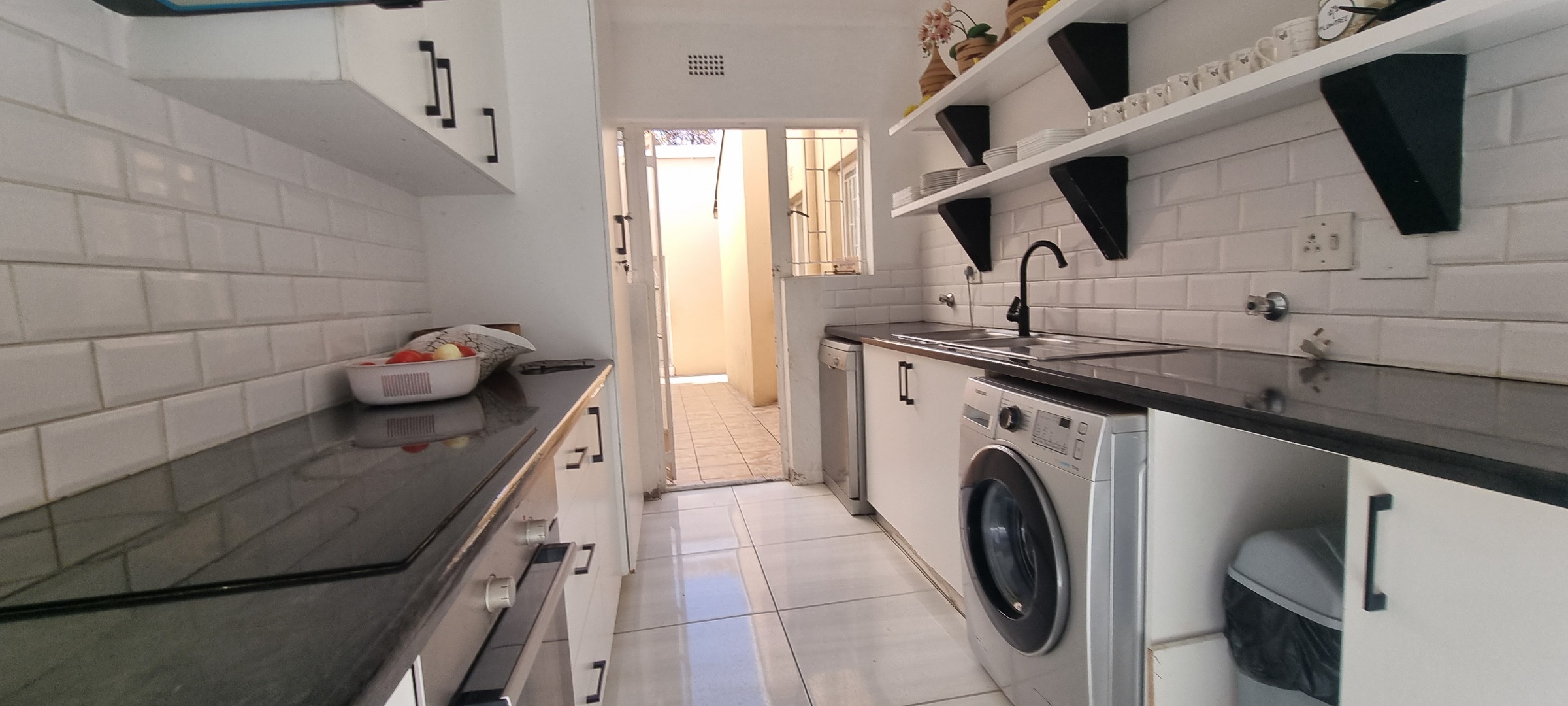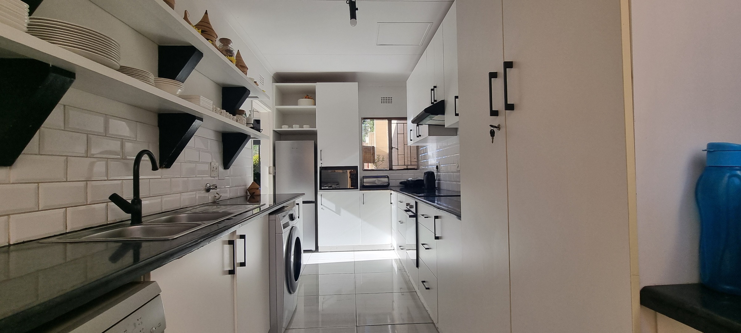 The heart of the home is a newly renovated kitchen with plenty of cupboard space, flowing into an open-plan lounge and dining area that opens out to a beautifully kept private garden – ideal for entertaining or simply enjoying quiet moments outdoors.