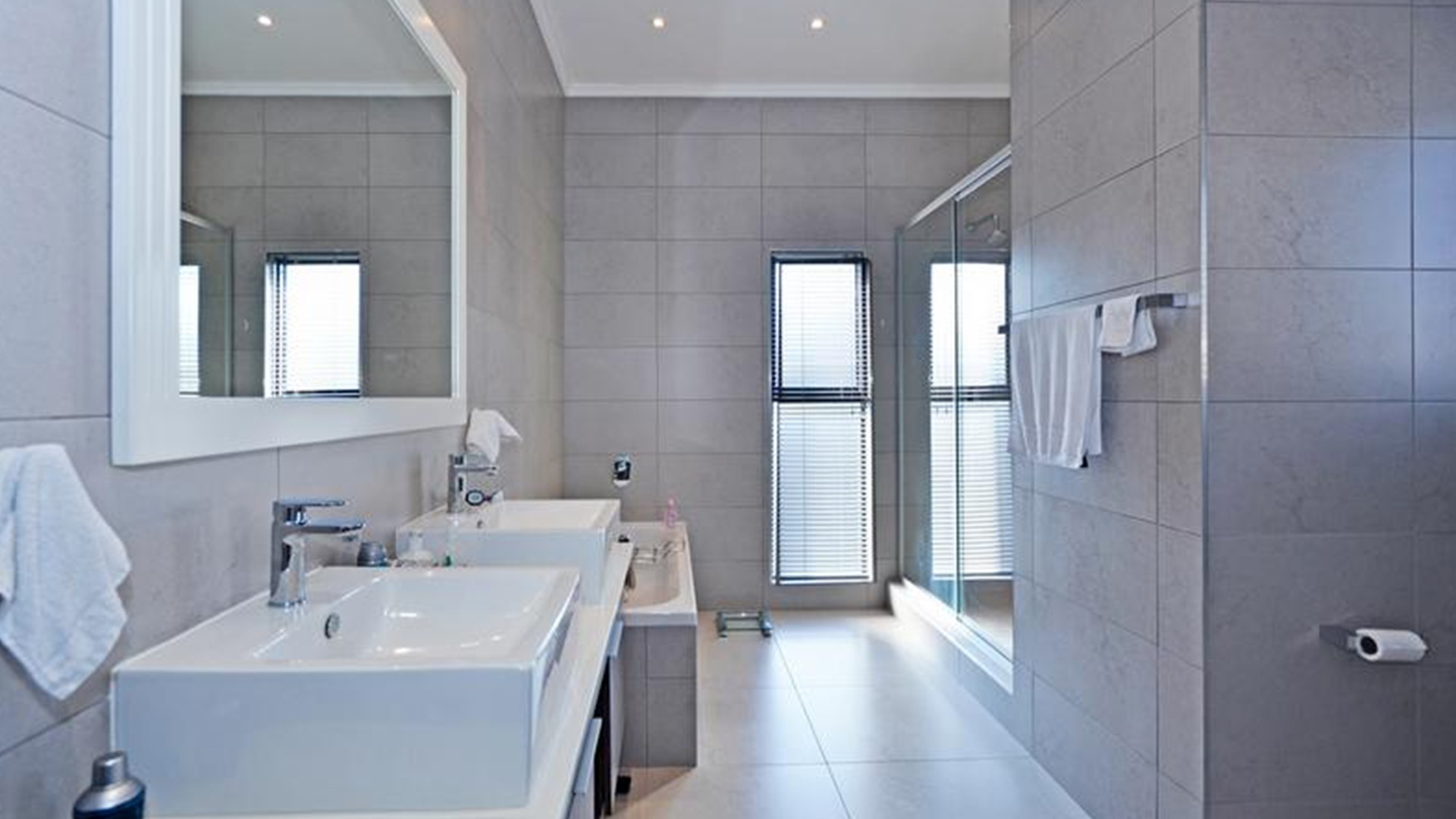 The reception areas unfold in an open plan design, allowing the lounge and dining room to connect naturally to the covered patio and garden. Large doors draw in natural light and create an easy transition to the exterior entertainment zone, where a built in gas braai overlooks the splash pool and manicured private garden.