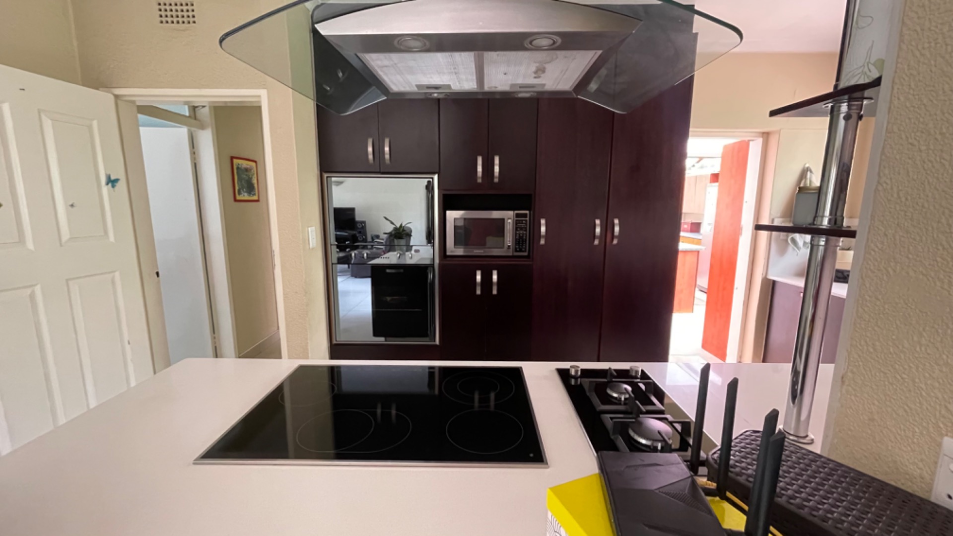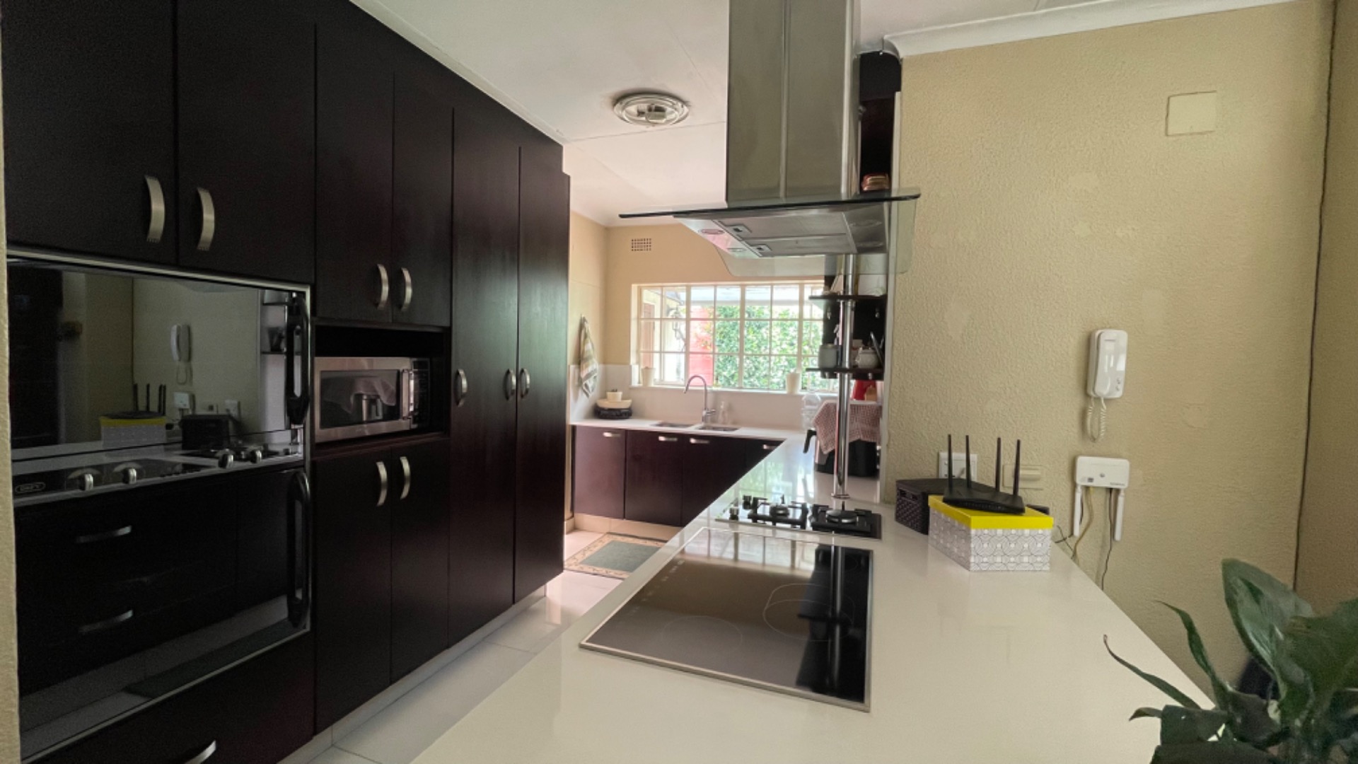 Discover this inviting single-story residence nestled in the sought-after suburb of Buccleuch, Sandton. Boasting a generous 2031 sqm erf, this property offers ample space for comfortable family living. The exterior presents a well-maintained tiled roof, light-colored stucco walls, and a spacious brick-paved driveway leading to a double garage, providing secure parking for two vehicles, with an additional open parking bay. Step inside to an open-plan layout that seamlessly connects the living and dining areas, featuring tiled flooring and abundant natural light from large windows. The modern kitchen is a highlight, equipped with sleek dark cabinetry, practical white countertops, and integrated appliances including both gas and electric hobs, an oven, and a microwave. A convenient pantry adds to the kitchen's functionality, making it ideal for culinary enthusiasts. The home comprises three well-proportioned bedrooms, including one en-suite bathroom, alongside a main bathroom, ensuring comfort and privacy for all residents. Built-in cupboards offer practical storage solutions. A dedicated study provides a quiet space for work or hobbies, while staff quarters add further utility. Outdoor living is enhanced by a private garden and a swimming pool, perfect for relaxation and entertaining. Security features such as window bars and a security gate contribute to peace of mind. Buccleuch is a well-established area in Sandton, known for its convenient access to major routes, business hubs, and amenities, offering a balanced suburban lifestyle. Key Features: * 3 Bedrooms, 1 En-suite, 1 Bathroom * Modern Kitchen with Dual Hobs & Pantry * Open-Plan Living & Dining Areas * Double Garage & 1 Additional Parking * Private Garden & Swimming Pool * Dedicated Study & Staff Quarters * Security Bars & Security Gate * Spacious 2031 sqm Erf