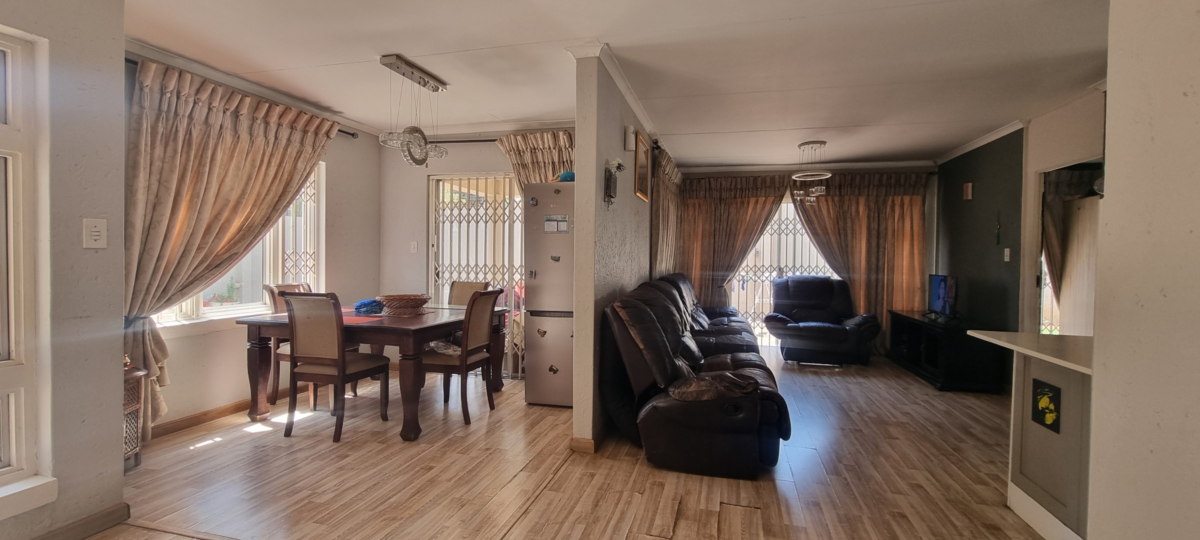 This stunning single-storey home is set in a safe and well-maintained complex, offering modern comfort and convenience. Featuring four spacious bedrooms and two bathrooms, the main bedroom boasts a full en-suite bathroom with ample cupboard space, while the other bedrooms share a stylish bathroom with a shower.