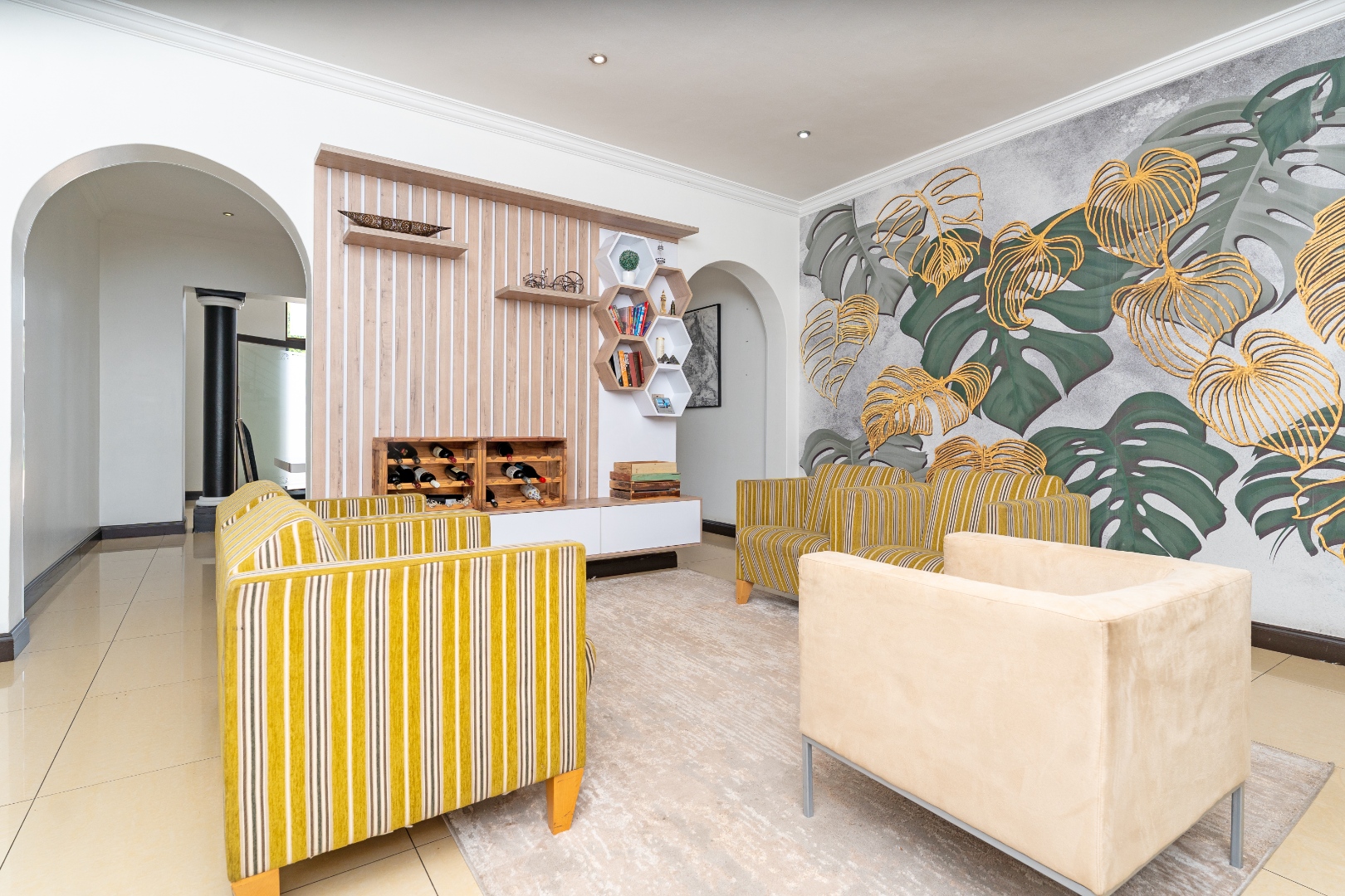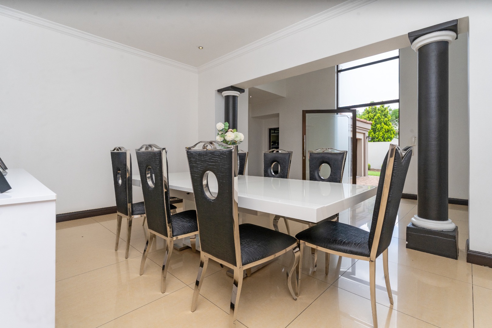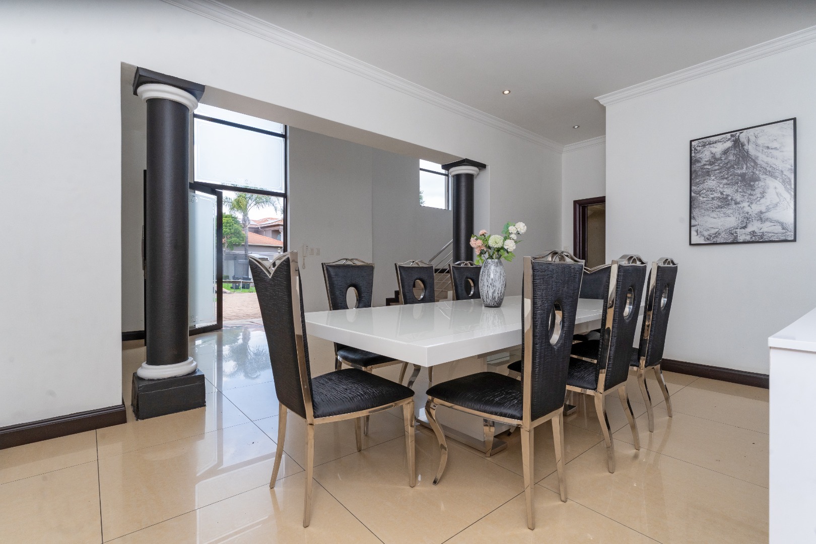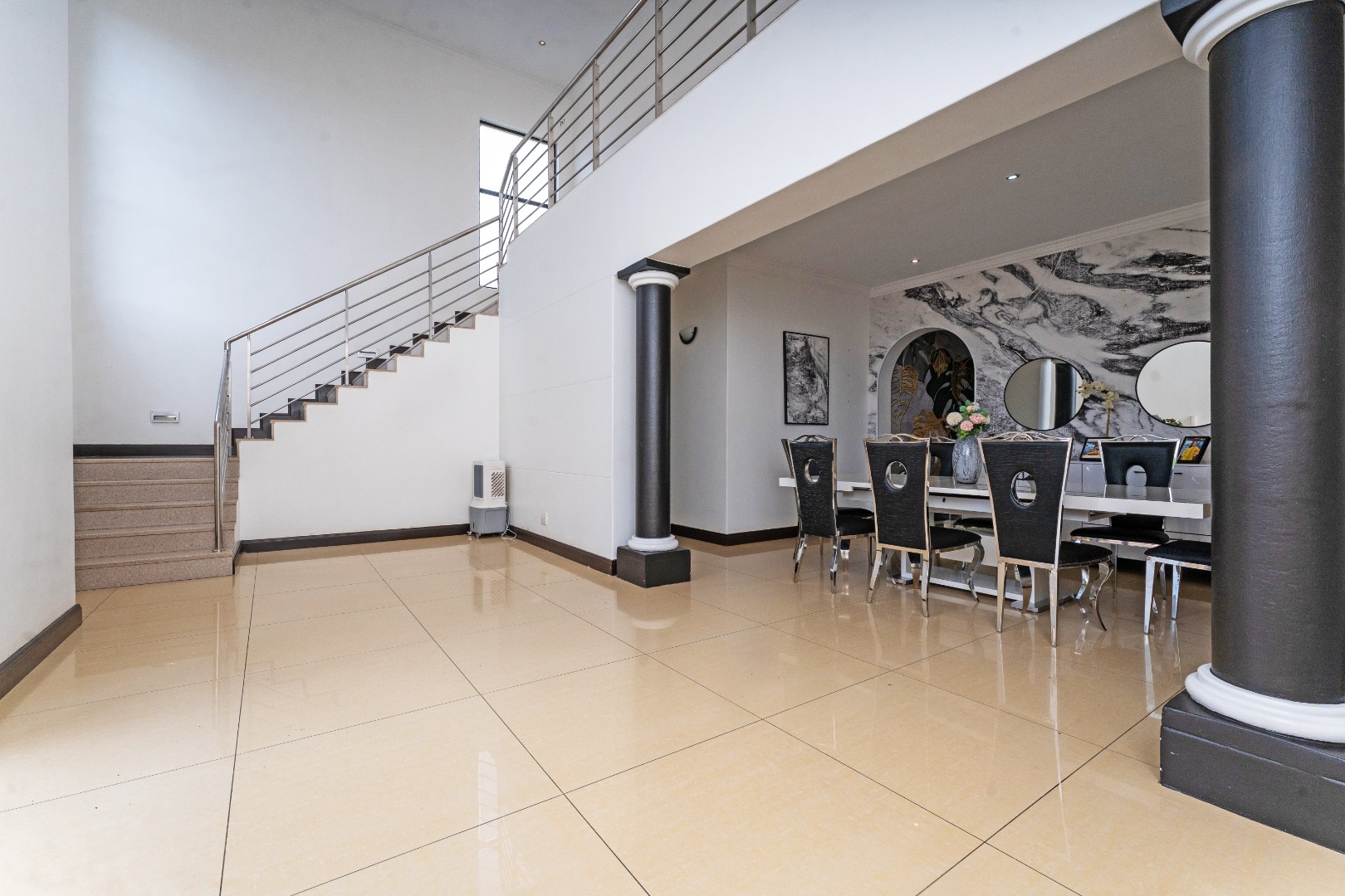- Grand Entrance & Ceilings: Features an opulent double-volume high ceiling entrance hall with a modern chandelier, creating an immediate sense of space and luxury, a common trait in the estate's homes. Exceptionally high ceilings are a feature throughout the house.