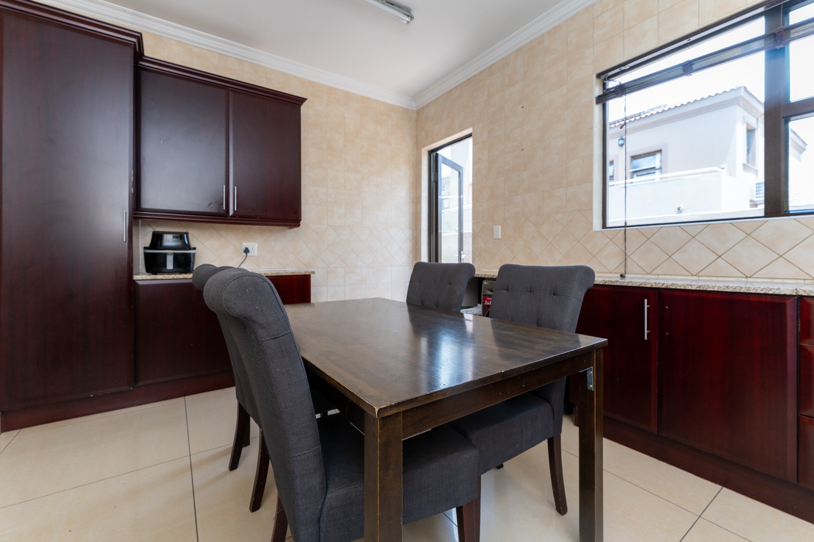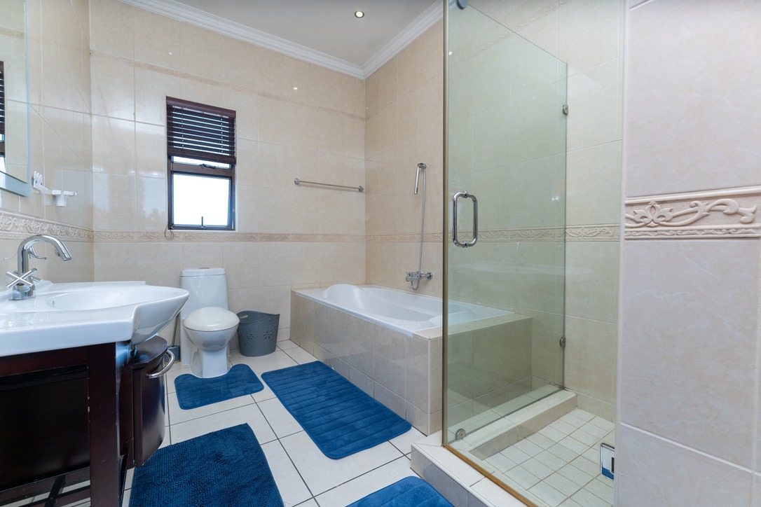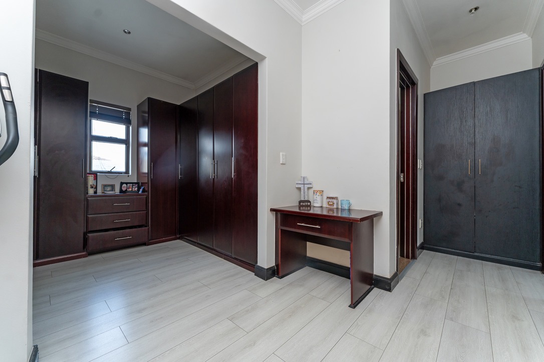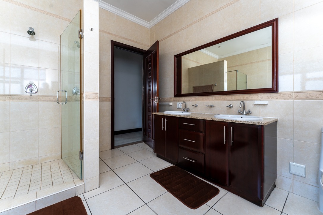 - Bedrooms & Bathrooms: The home includes four large bedrooms, with three located upstairs, all featuring full en-suite bathrooms and ample cupboard space. The fourth bedroom is conveniently situated downstairs to accommodate guests, and there is an additional guest toilet on the ground floor.