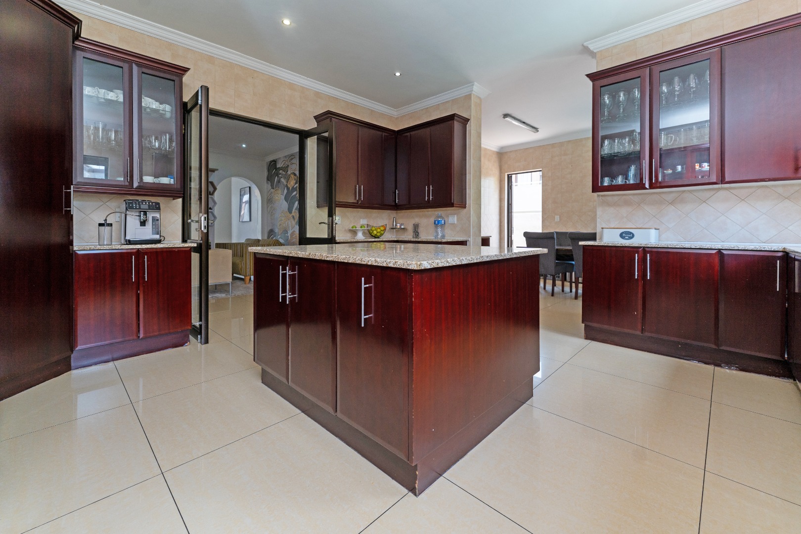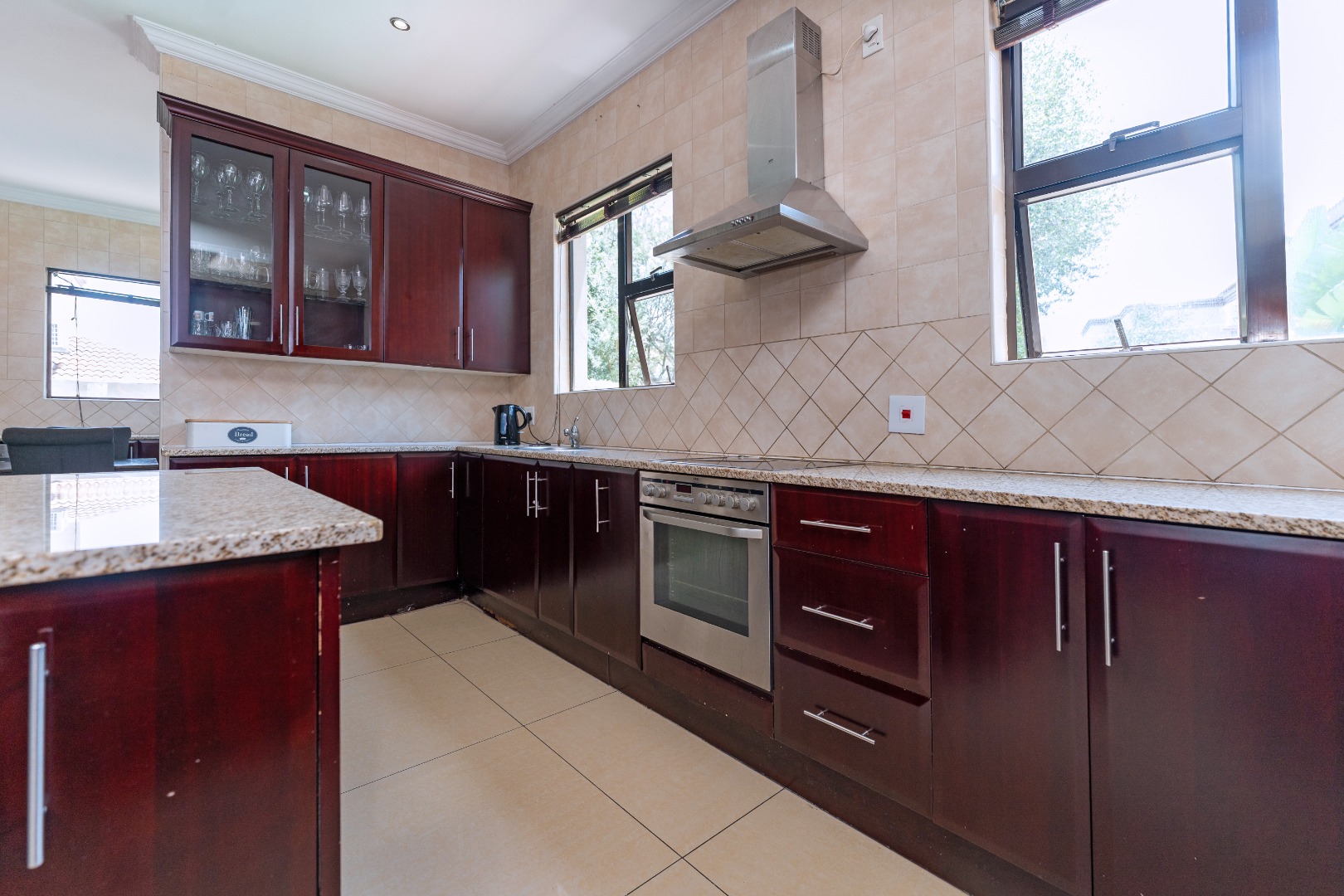 - Kitchen & Utility: The huge, light, and airy kitchen is a chef's dream with lots of windows, a centre island, scullery, and laundry, offering ample cupboard space and functionality.