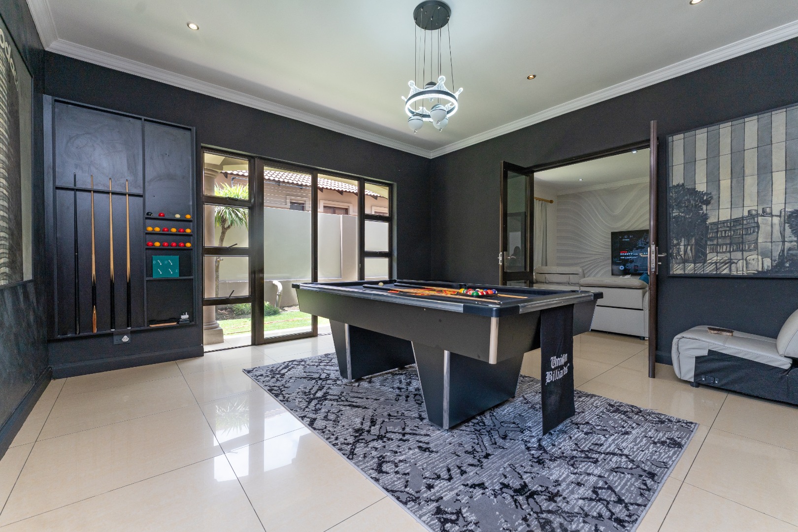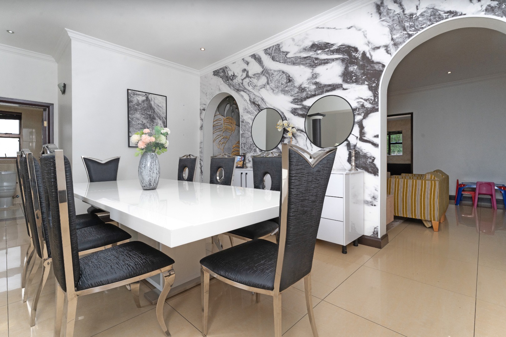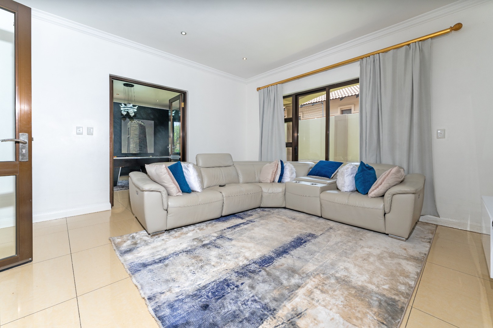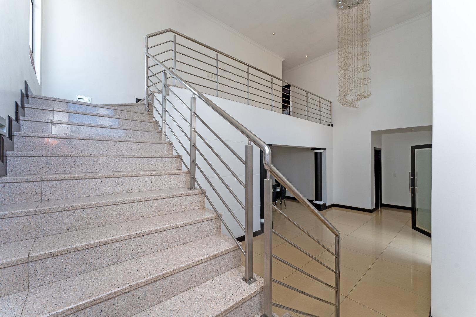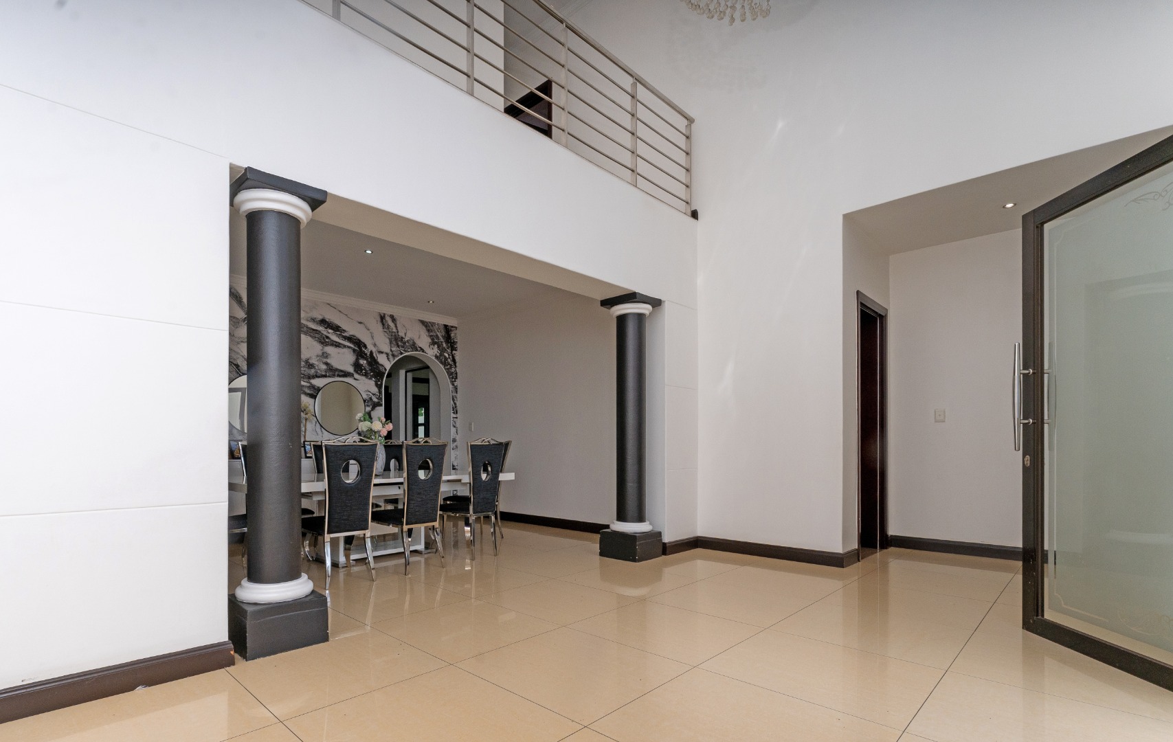 - Grand Entrance & Ceilings: Features an opulent double-volume high ceiling entrance hall with a modern chandelier, creating an immediate sense of space and luxury, a common trait in the estate's homes. Exceptionally high ceilings are a feature throughout the house.