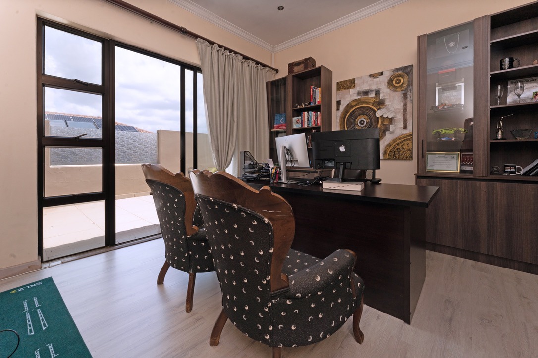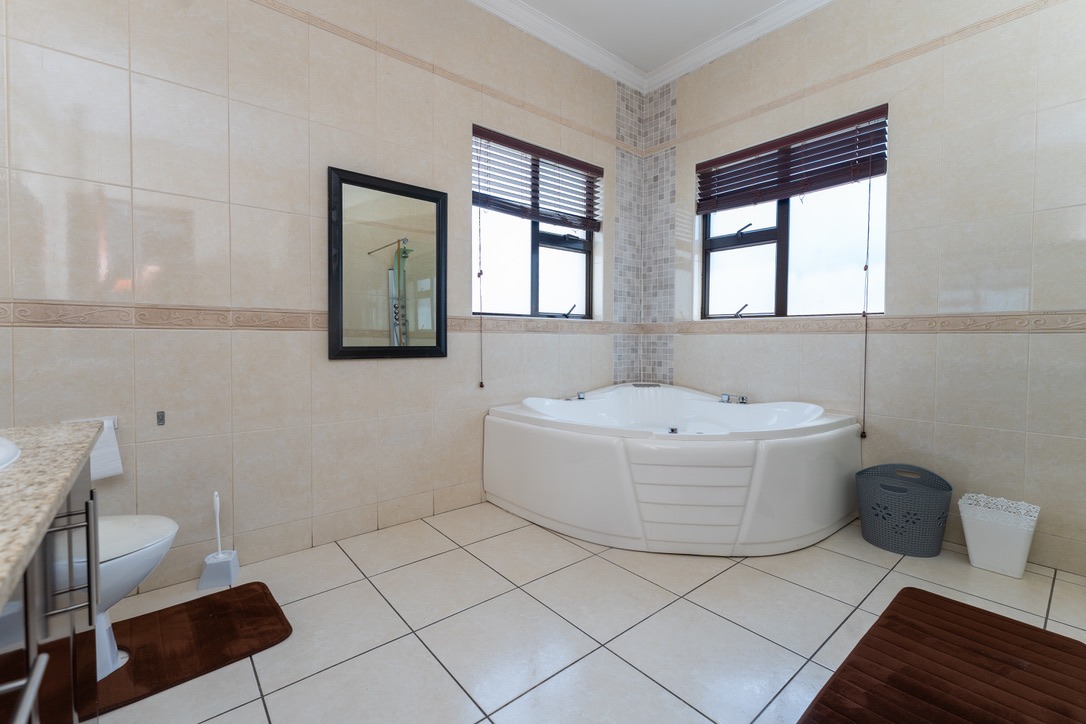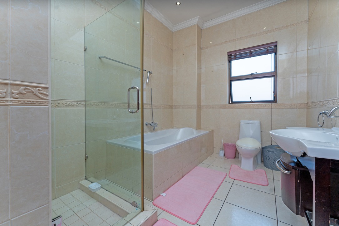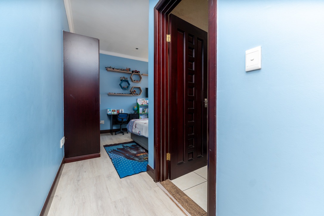 - Bedrooms & Bathrooms: The home includes four large bedrooms, with three located upstairs, all featuring full en-suite bathrooms and ample cupboard space. The fourth bedroom is conveniently situated downstairs to accommodate guests, and there is an additional guest toilet on the ground floor.