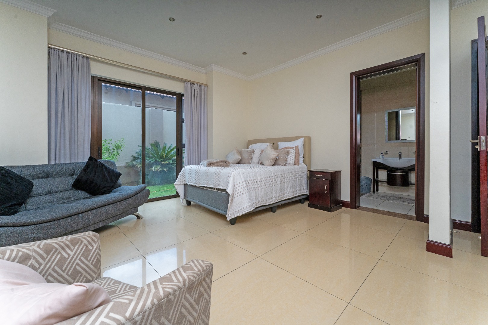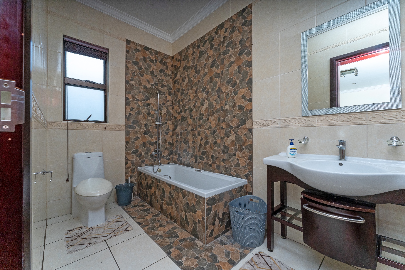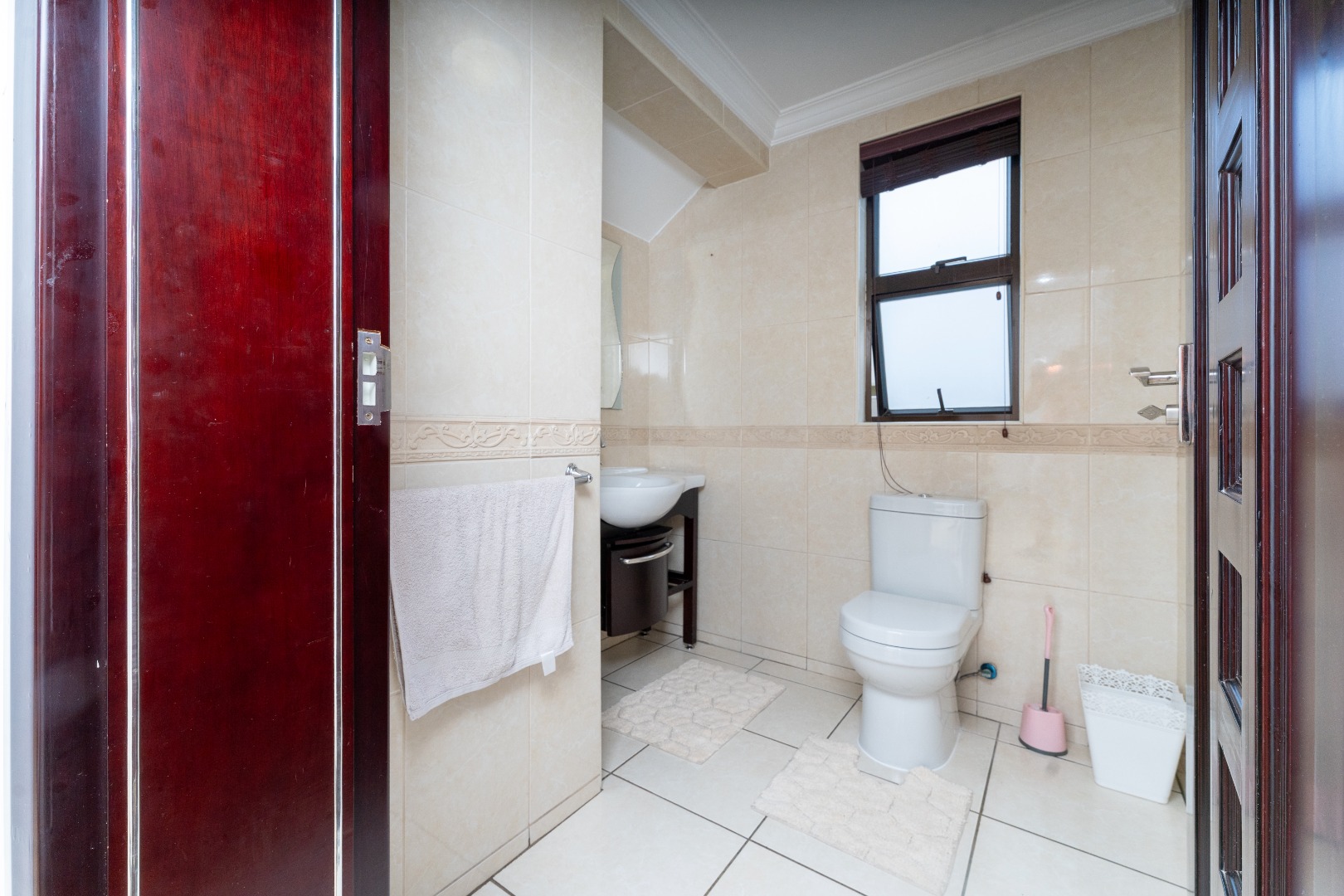 - Bedrooms & Bathrooms: The home includes four large bedrooms, with three located upstairs, all featuring full en-suite bathrooms and ample cupboard space. The fourth bedroom is conveniently situated downstairs to accommodate guests, and there is an additional guest toilet on the ground floor.