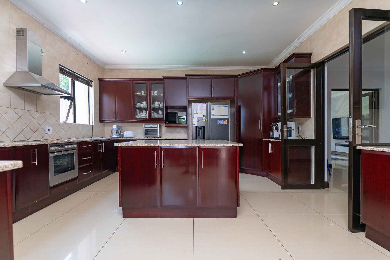 - Kitchen & Utility: The huge, light, and airy kitchen is a chef's dream with lots of windows, a centre island, scullery, and laundry, offering ample cupboard space and functionality.