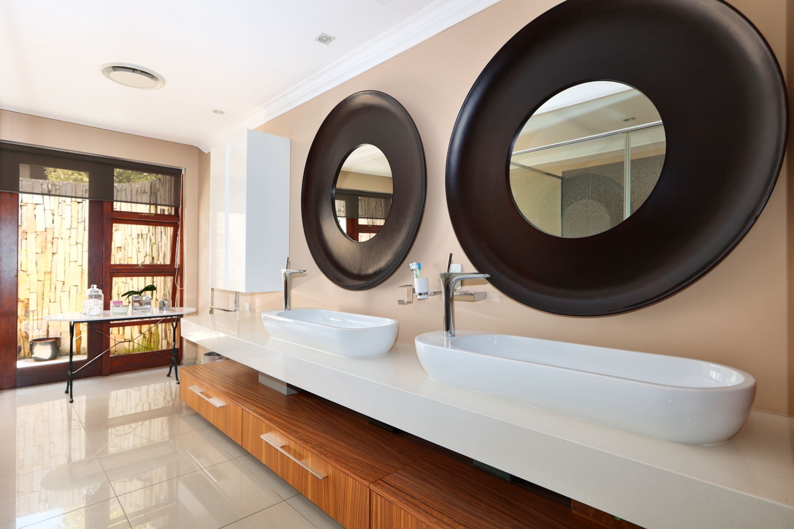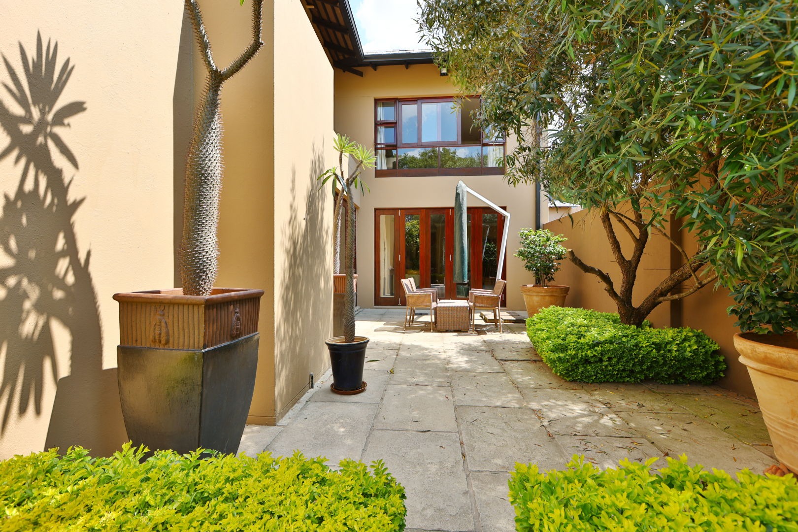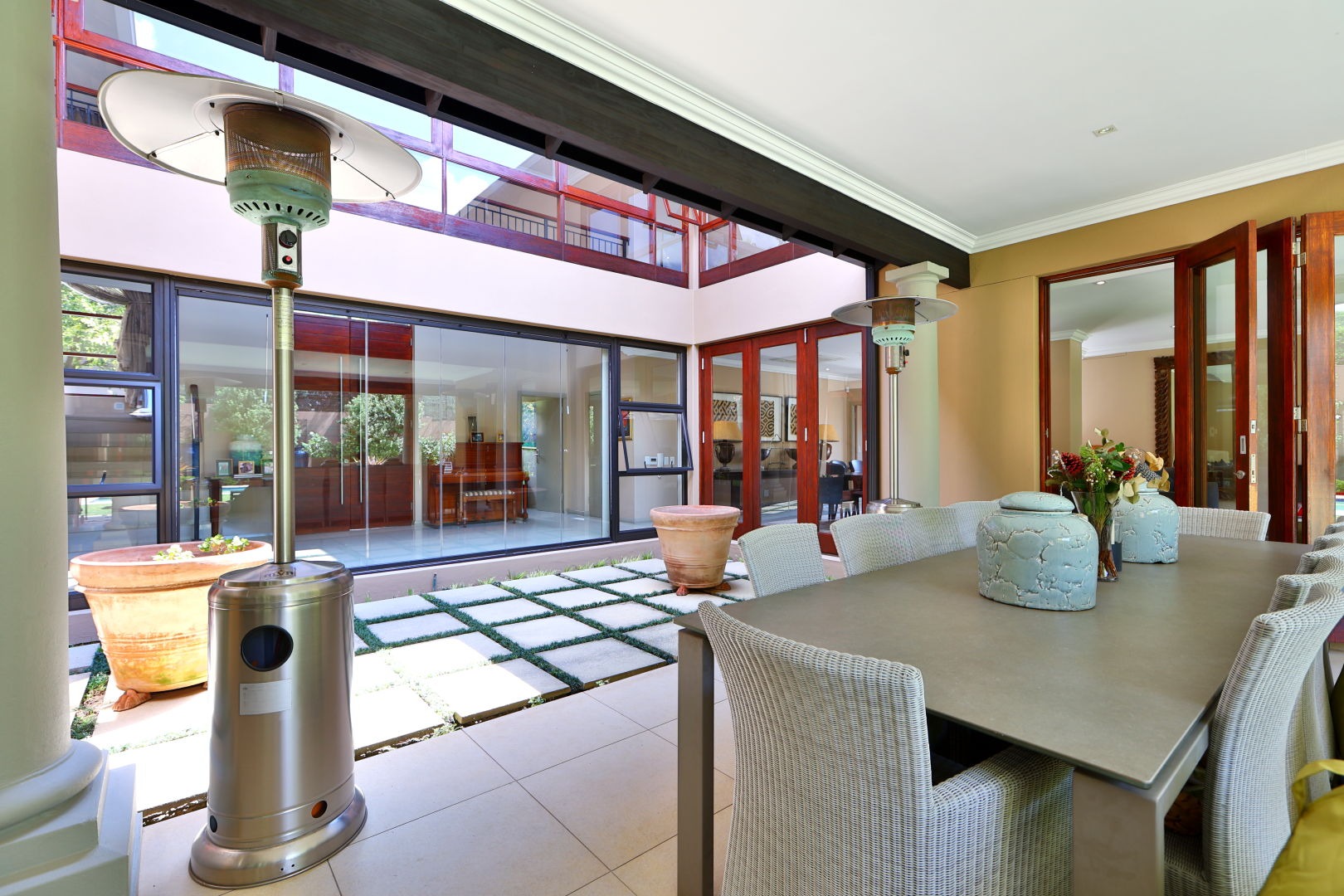 A private study provides an ideal work from home setting, while the covered entertainment patio and atrium create an inviting environment for gatherings throughout the seasons. Integrated security shutters add another layer of comfort, privacy and peace of mind.