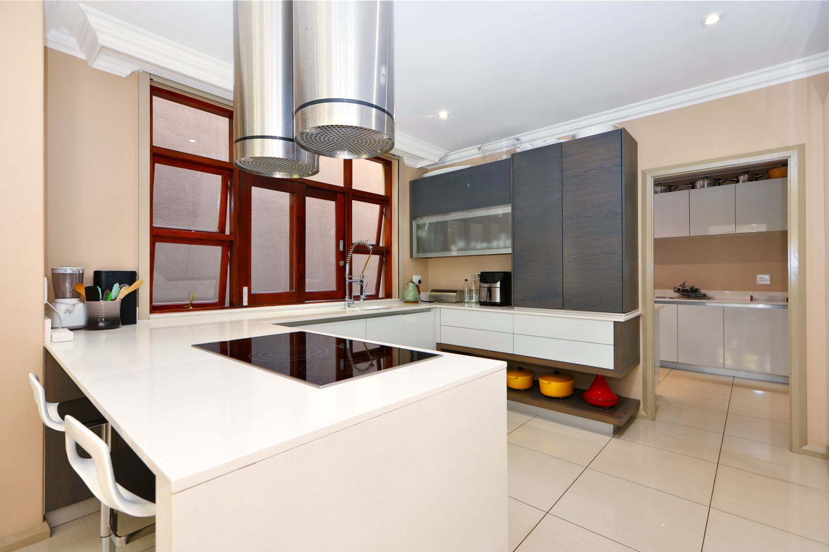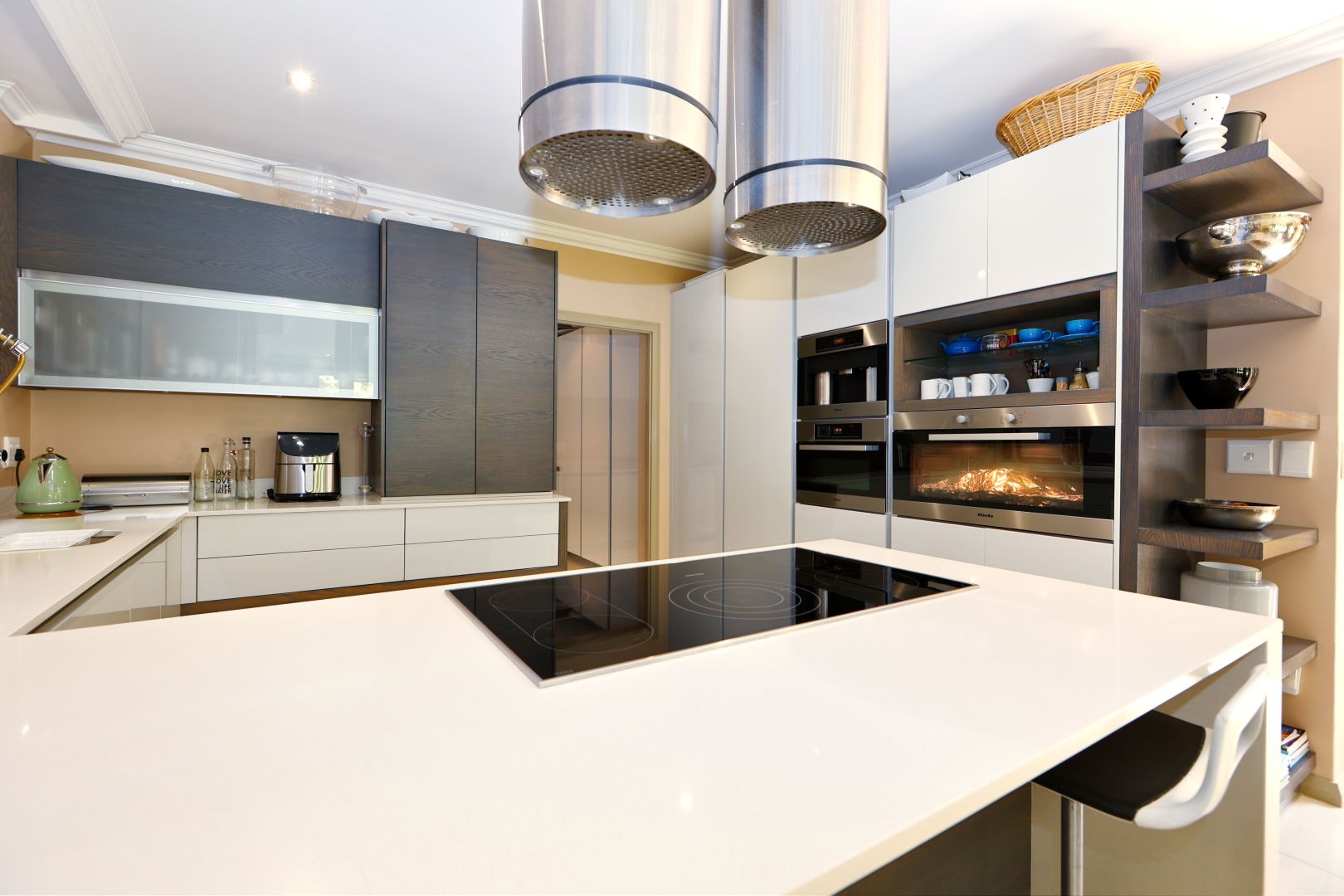At the heart of the home, the kitchen delivers both beauty and performance. Clean contemporary lines are complemented by premium integrated Miele appliances including a fridge, coffee machine, microwave and oven. Ample cabinetry, quality finishes and a separate scullery ensure practicality without compromising on style.