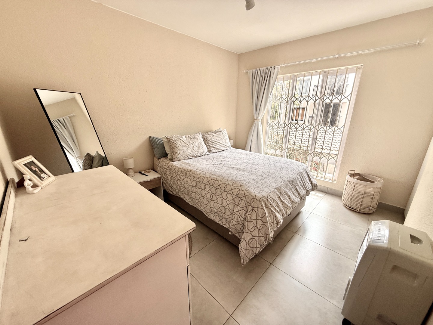 Accommodation comprises two generously proportioned bedrooms, with the master featuring an en-suite bathroom for enhanced privacy and convenience. A second well-appointed bathroom serves the additional bedroom and guests. Further amenities include a dedicated garaged parking space, ensuring secure vehicle storage. Residents benefit from comprehensive security provisions, including 24-hour surveillance, an alarm system, security post, access gate, and intercom facilities, all contributing to a secure residential environment.