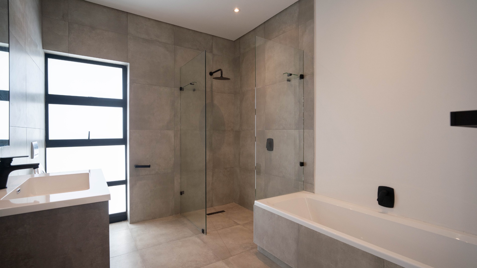 The experience begins with volume and light. Interiors are expansive yet comfortable, designed to adapt seamlessly from everyday family life to sophisticated entertaining. Glass doors slide away to reveal a garden retreat and elevated deck, where a built in braai anchors memorable gatherings with friends and family.