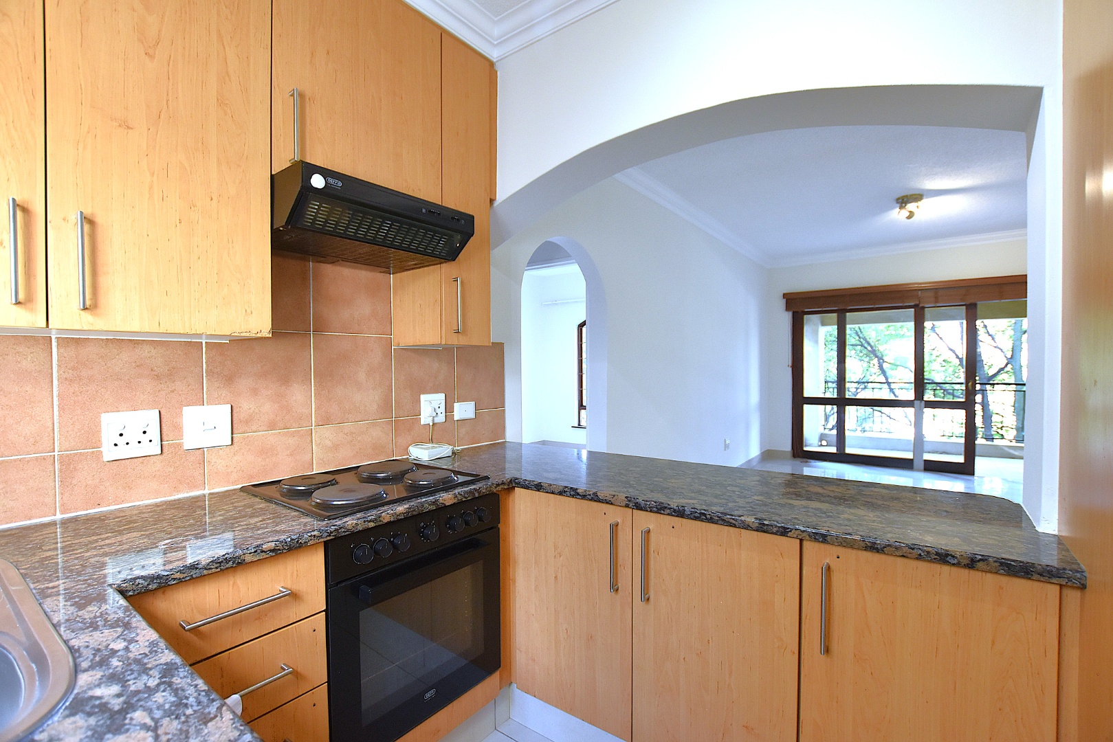 The kitchen features granite counter-tops, stove, extractor fan, pantry, space for washing machine and a refrigerator.