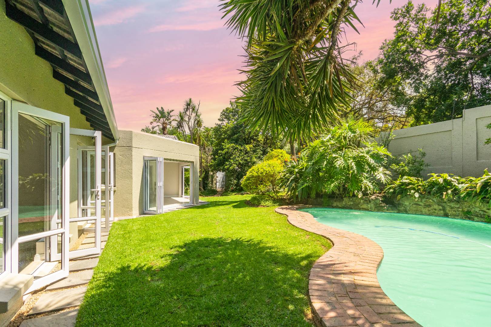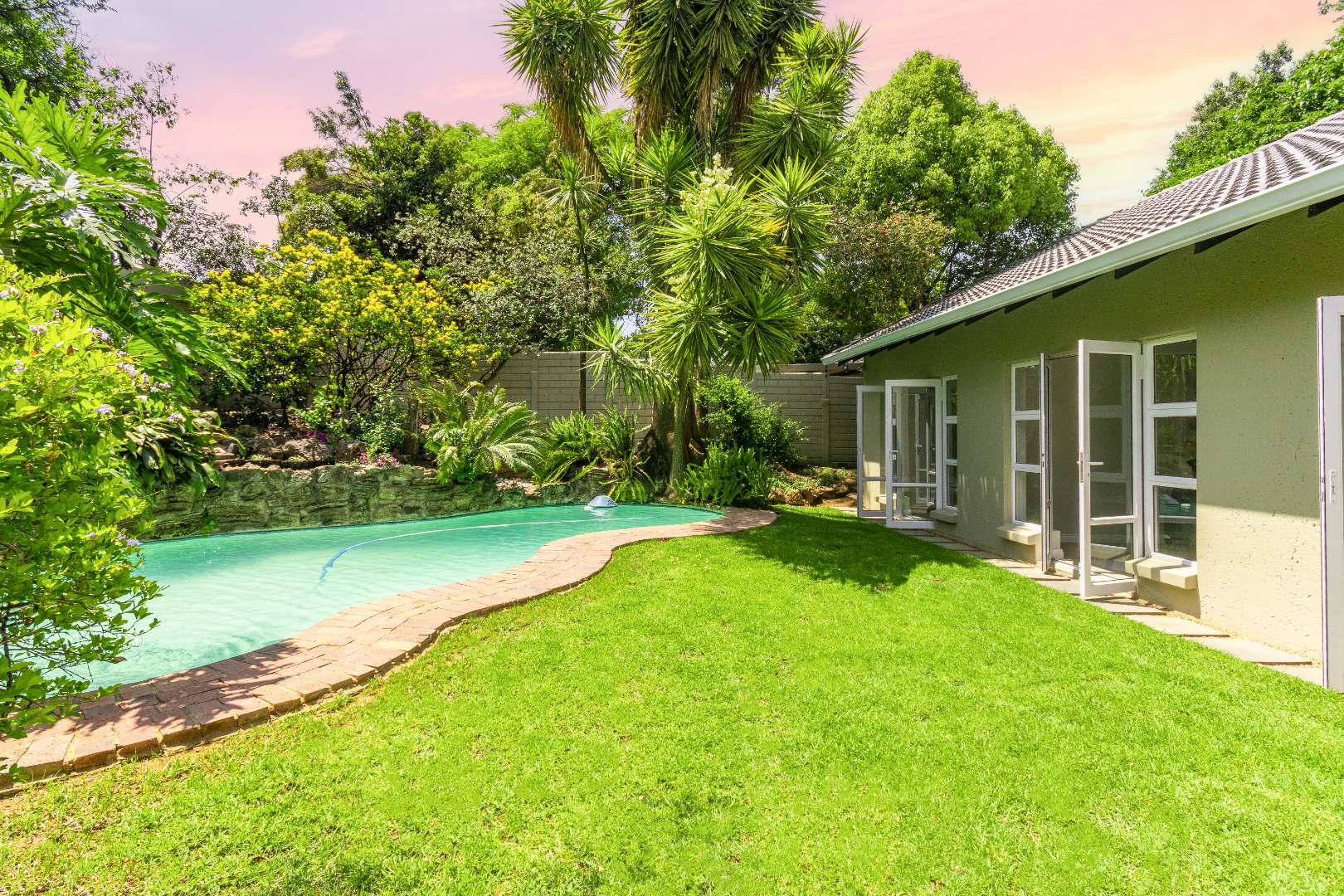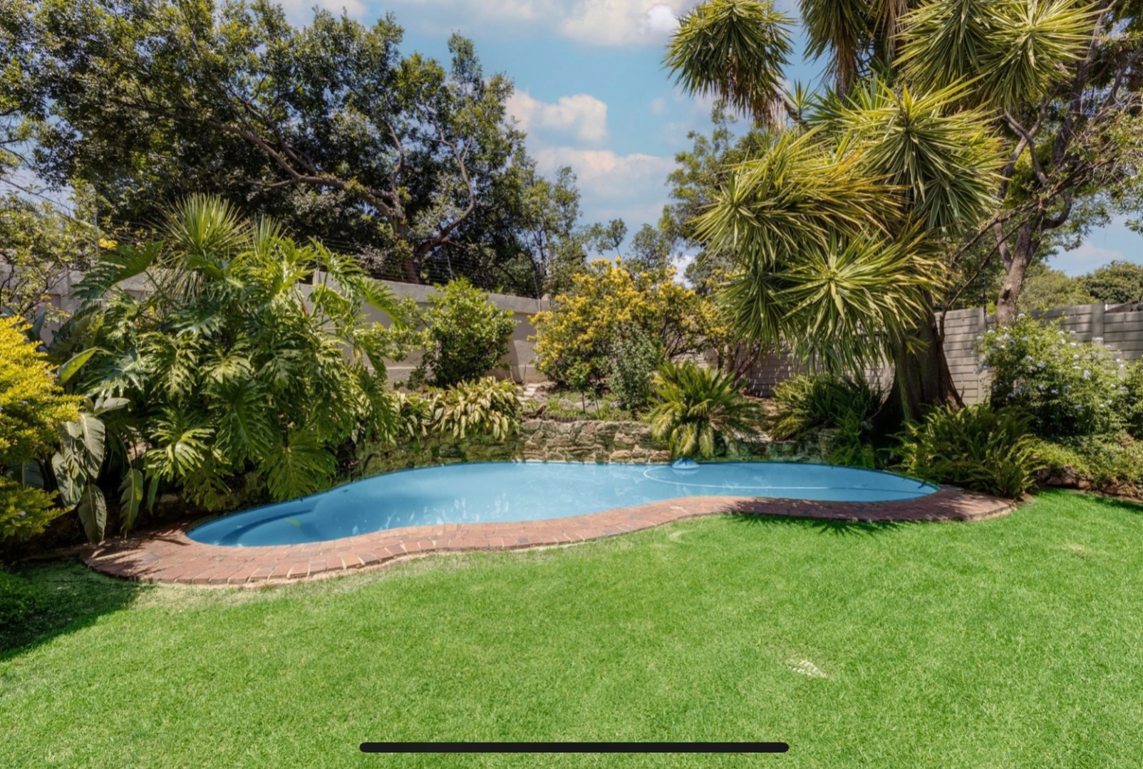Discover an exquisite sanctuary nestled within the prestigious gated community of Parkmore, Sandton. This magnificent 4-bedroom, 3-bathroom residence, spanning an impressive 390 sqm on a generous 991 sqm erf, epitomises sophisticated living with an unparalleled connection to nature. The property's kerb appeal is immediately evident, with its meticulously maintained exterior and lush, mature gardens hinting at the private oasis within. Step inside to a world of refined elegance, where an open-plan design seamlessly integrates the spacious lounge and dining areas, bathed in abundant natural light. The well-appointed kitchen, complete with a convenient pantry, forms the heart of the home, perfect for culinary pursuits and entertaining. Thoughtful details like an inviting entrance hall and a guest toilet enhance the functional luxury of the interior, while sliding doors effortlessly extend living spaces outdoors. Four serene bedrooms offer private retreats, including a lavish en-suite master bathroom, ensuring comfort and privacy for all residents. The additional two bathrooms are equally well-appointed, reflecting a commitment to quality and style throughout. Every detail has been curated to provide a harmonious living experience. The outdoor realm is a true masterpiece, featuring a sparkling private swimming pool set amidst a vibrant, tropical-inspired garden with mature trees and a sprinkler system. Multiple large glass doors, bi-fold doors, and French doors create an exceptional indoor-outdoor flow, leading to a covered patio ideal for al fresco dining and relaxation. A double garage, staff quarters, and a versatile flatlet provide ample utility and flexibility. Security is paramount, with a comprehensive system including 24-hour security, CCTV, an alarm, electric fencing, an access gate, and an intercom, all within a totally walled perimeter. Modern conveniences such as fibre and ADSL connectivity are also in place. Parkmore, a highly sought-after Sandton suburb, offers a tranquil residential environment while being moments away from world-class amenities, fine dining, and premier shopping destinations. Key Features: * 4 Bedrooms, 3 Bathrooms (1 En-suite) * Private Swimming Pool & Lush Garden * Expansive 390 sqm Floor Size * Double Garage & Staff Quarters * Versatile Flatlet * Open-Plan Living with Fireplace * Advanced 24-Hour Security System * Fibre & ADSL Connectivity * Gated Community in Parkmore, Sandton * Pets Allowed