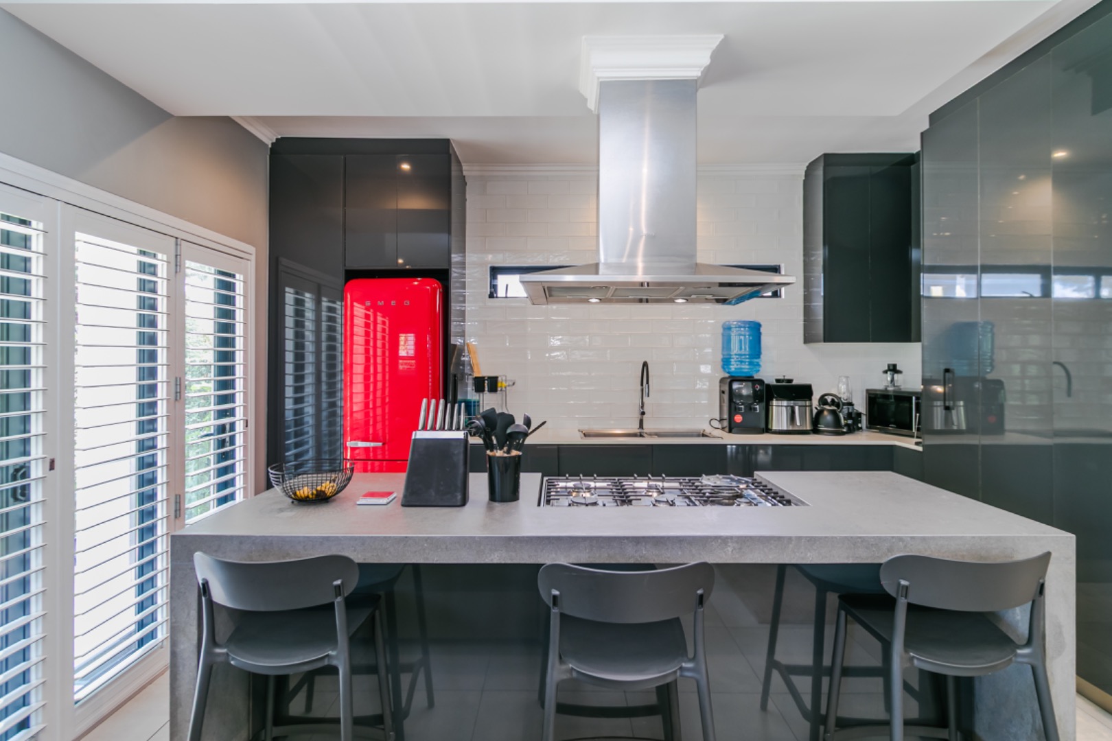 * Sleek Kitchen with Gas Hob & Island (matching SMEG gas stove and fridge)