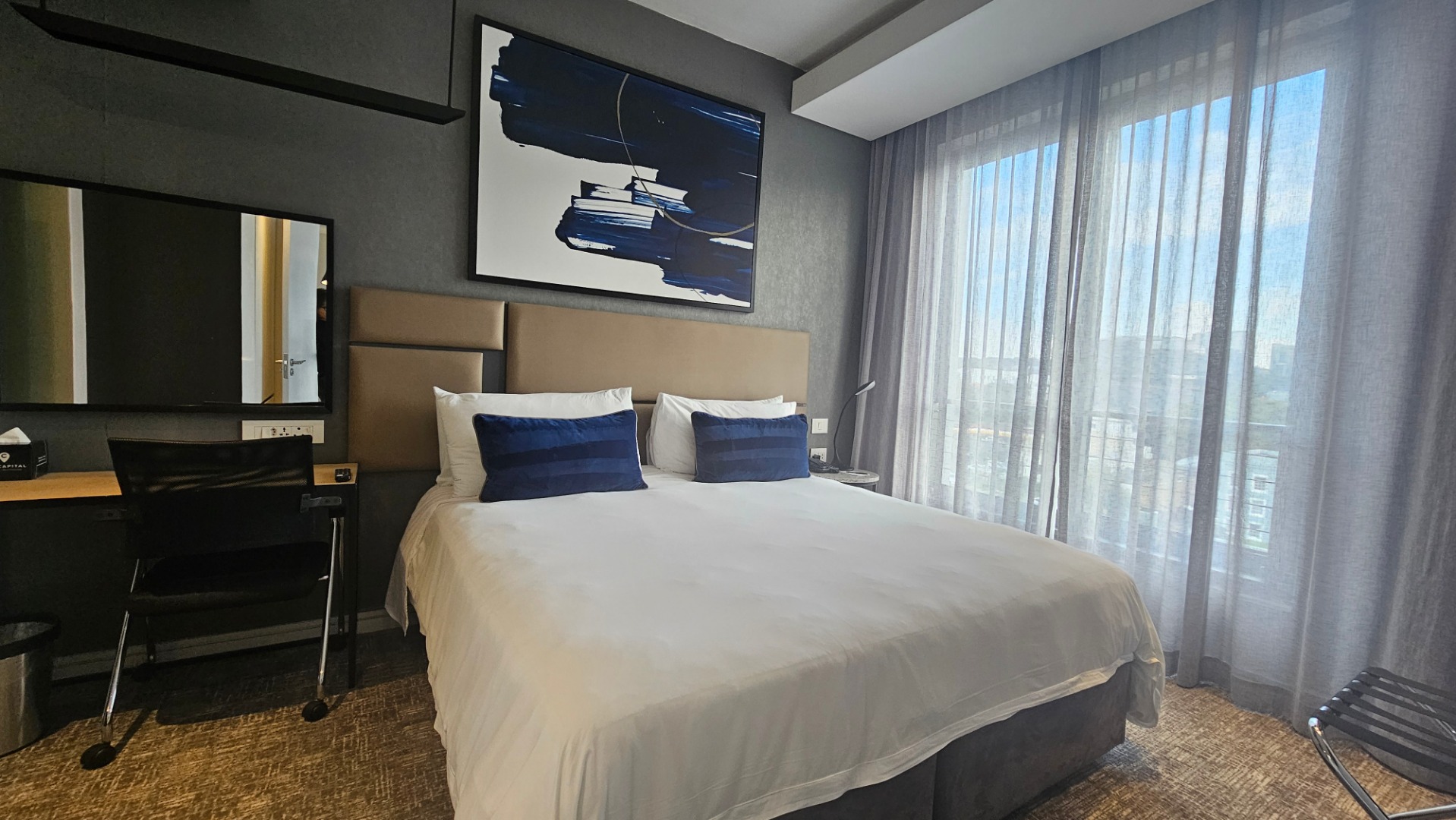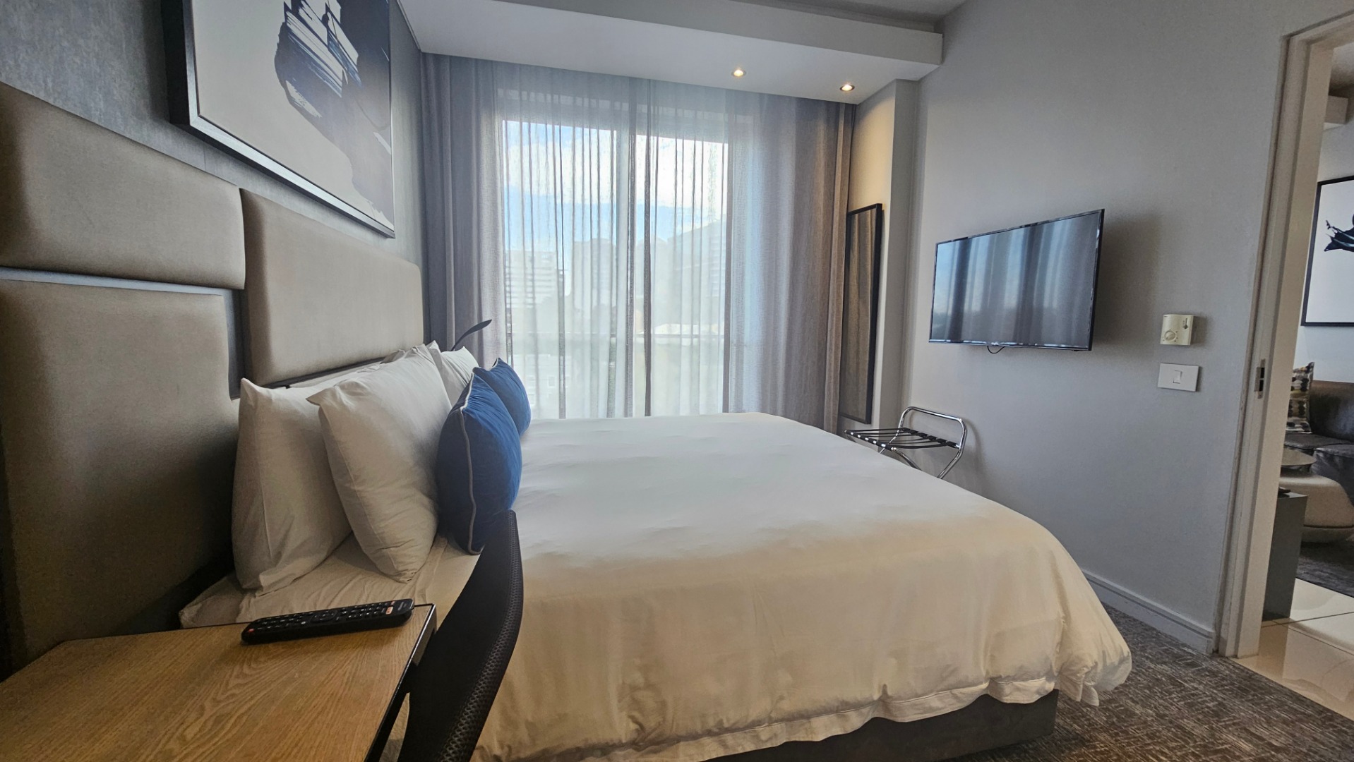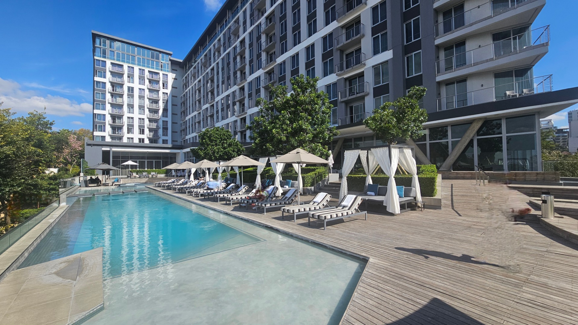 The intimate yet luxurious bedroom serves as a private retreat, complete with a pristine ensuite bathroom featuring contemporary fixtures that elevate daily routines into moments of indulgence. Beyond your private abode, a world of exclusive amenities awaits, including an outdoor bar with sparkling communal pool, a state-of-the-art gymnasium, conference rooms, boardroom, concierge, restaurant, cocktail bar, coffee shop and salon. A dedicated parking bay ensures convenience, complemented by panoramic scenic views.