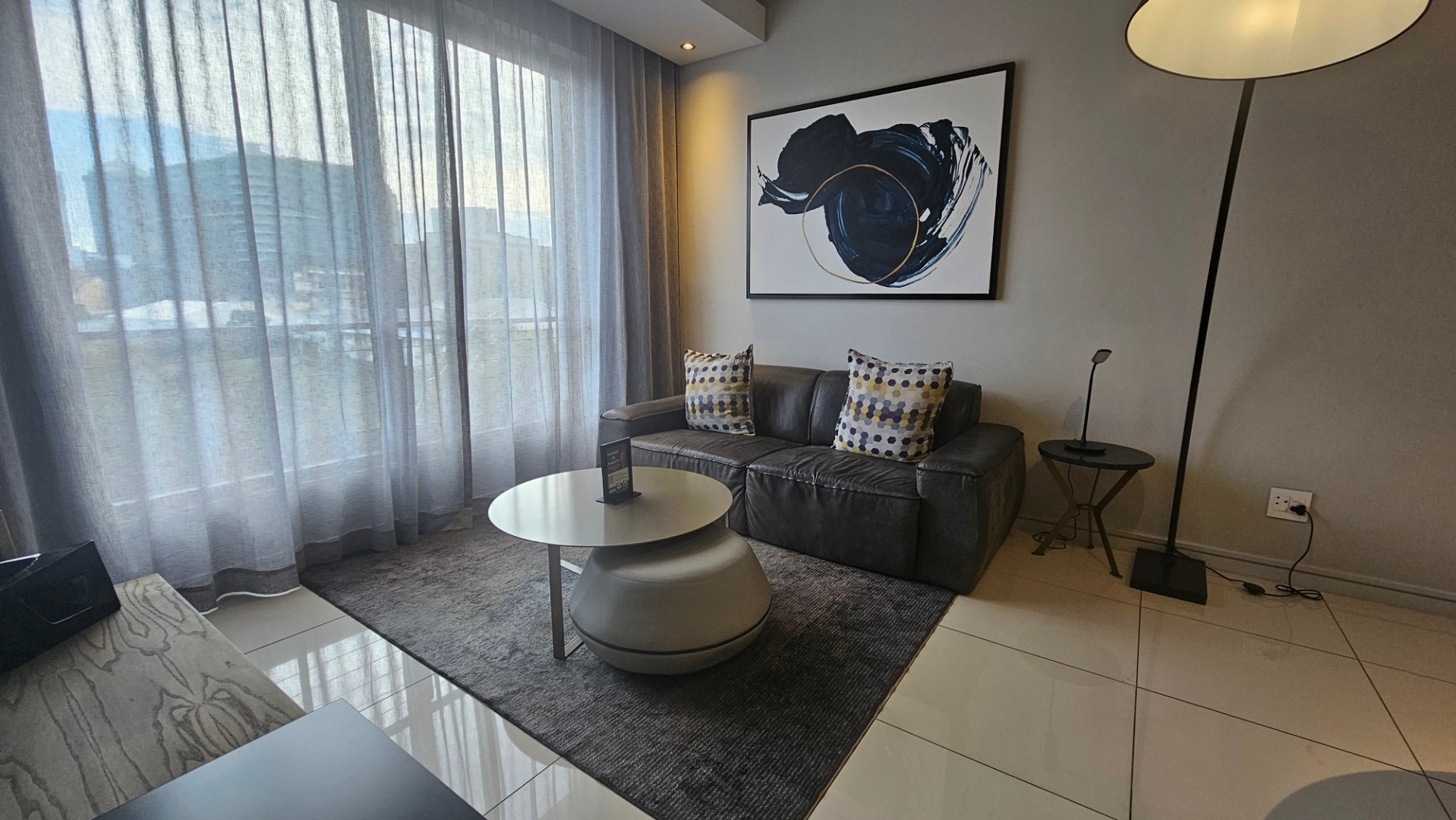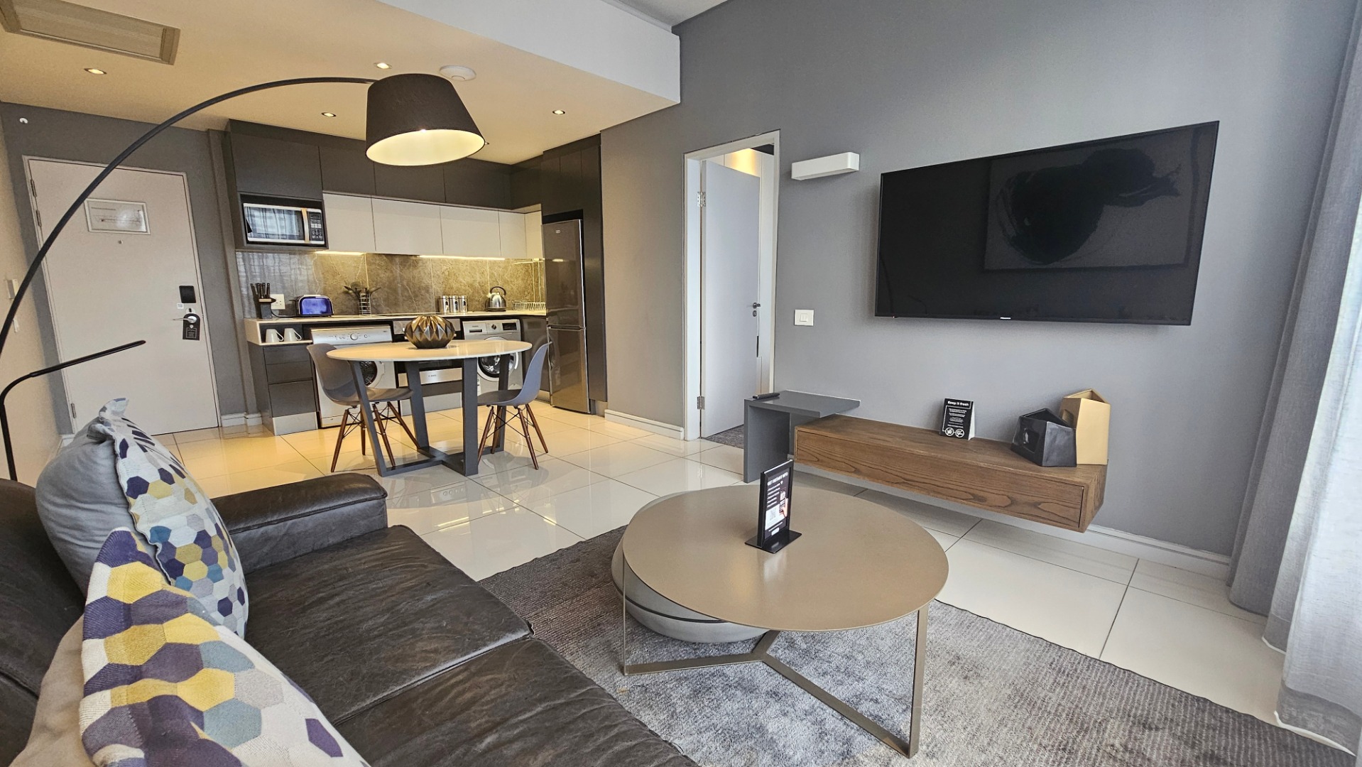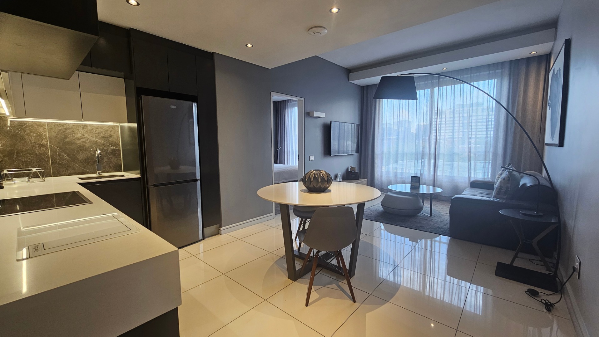 Discover an exquisite urban sanctuary within the vibrant heart of Sandton, South Africa. This designer-appointed 44 sqm residence in Sandown offers a sophisticated, furnished living experience. The seamless open-plan design integrates a chic lounge and a dedicated dining area, creating an inviting atmosphere. Enhanced by bespoke special lighting and air conditioning, the interior exudes refined elegance. Sliding doors invite natural light, with convenient access via modern lifts.