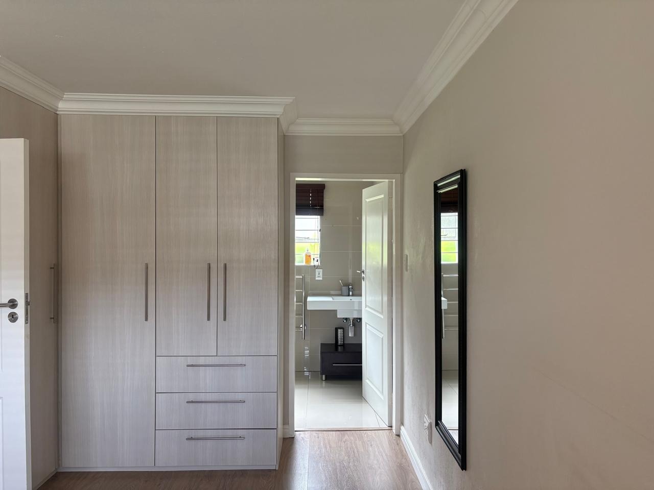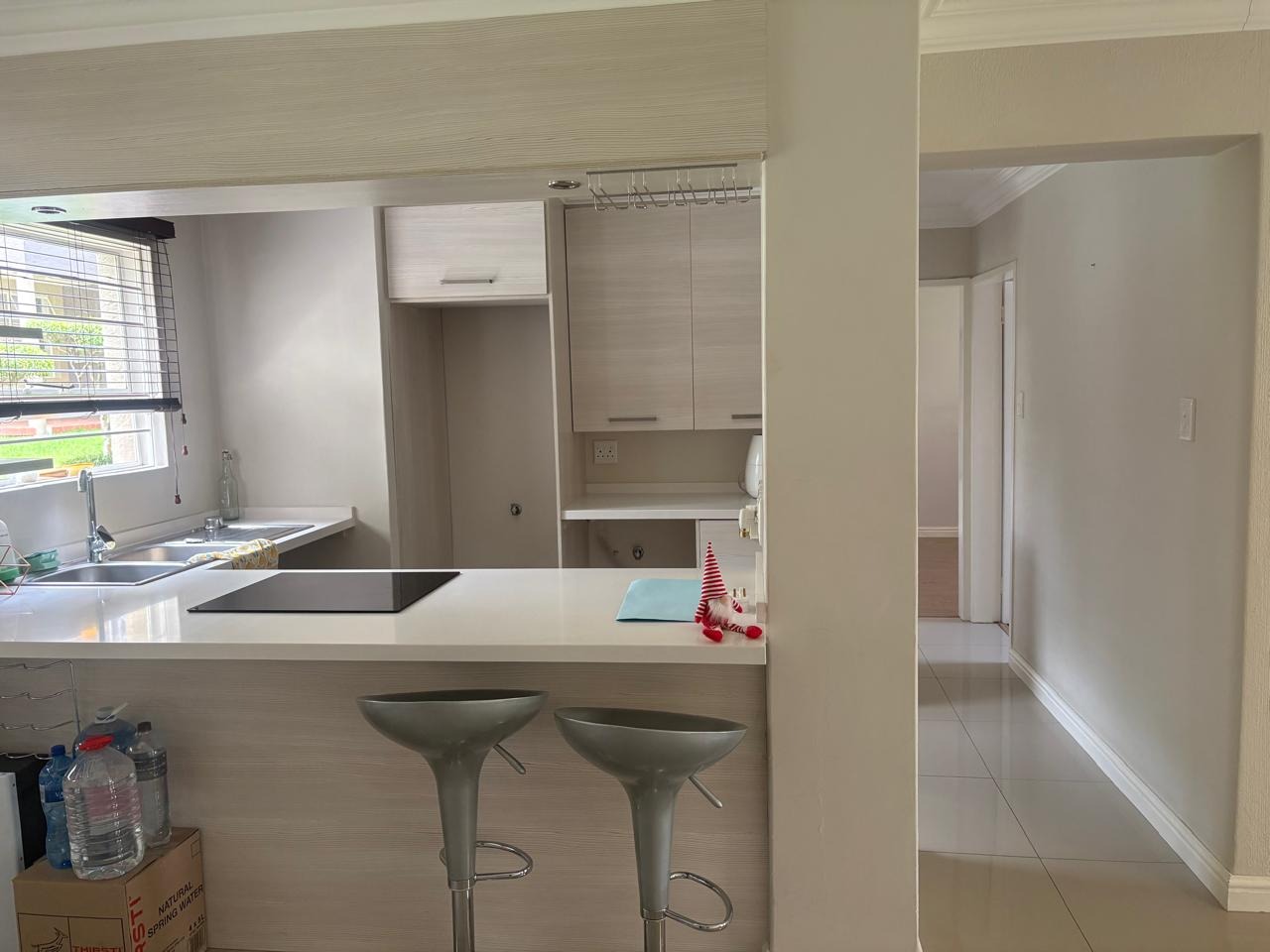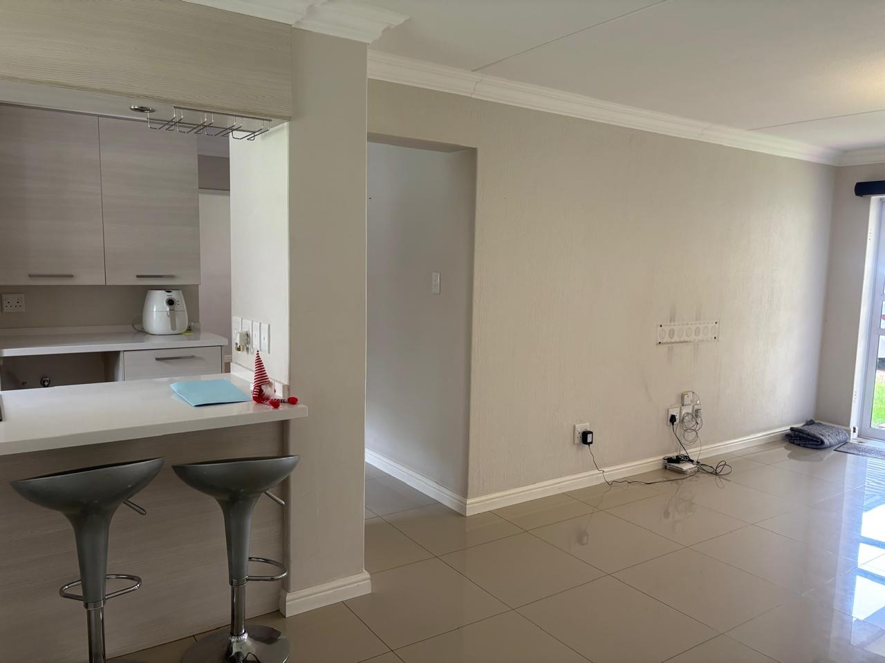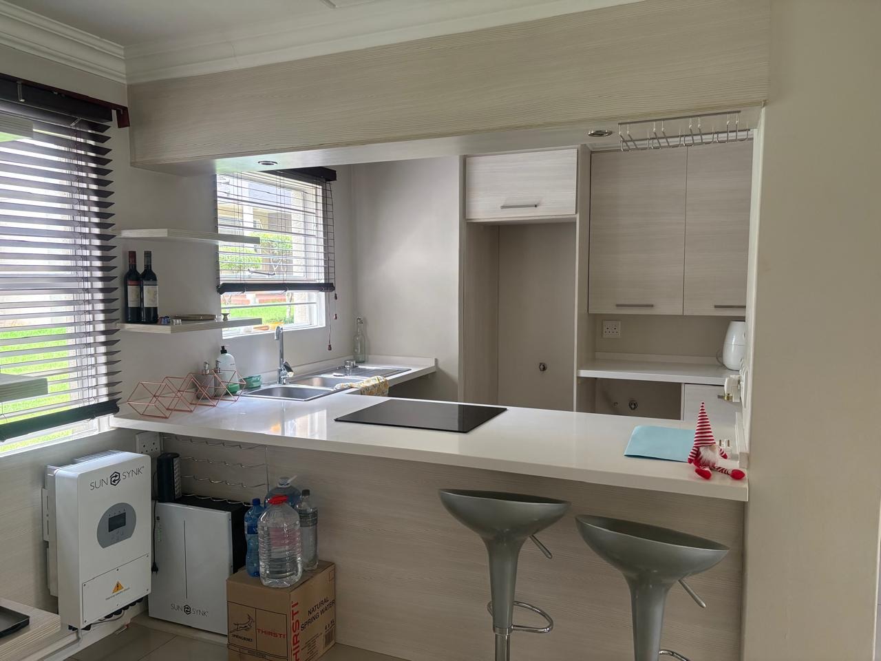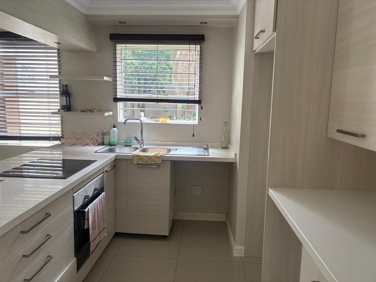 Discover modern living in this stylish 84 sqm apartment, ideally situated within a secure estate in Sandton Central. The interior boasts an open-plan layout, featuring contemporary tiled flooring and neutral-toned walls throughout the living areas. The kitchen is a highlight, equipped with sleek light wood-grain cabinetry, pristine white Caesarstone countertops, a built-in extractor fan, hob and oven - that can also be used during loadshedding, and a practical dual sink. Recessed lighting adds a refined touch, while a breakfast bar with 2 stools, seamlessly connects to the lounge, which offers direct access to a private covered patio through a glass door, perfect for relaxation or entertaining.