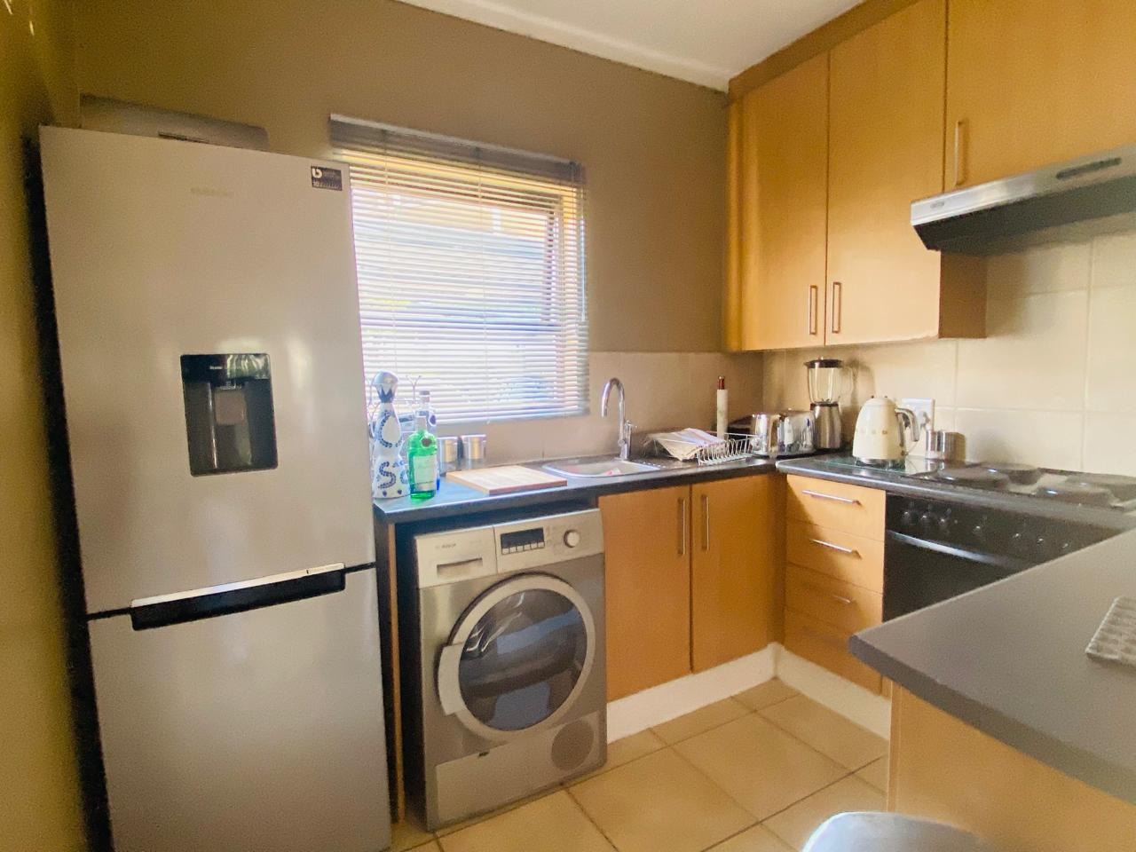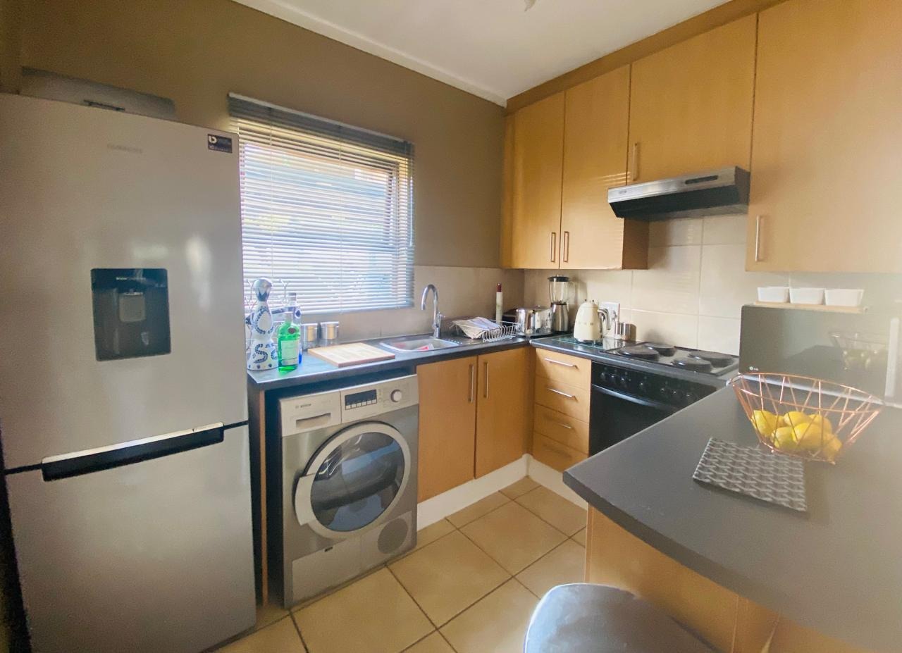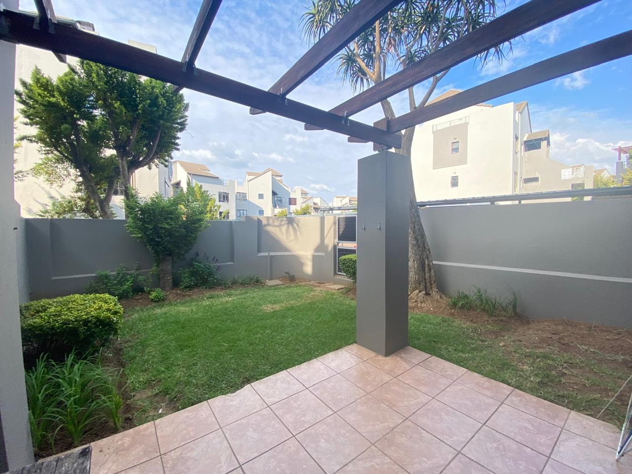 Beautiful ground floor garden apartment with 2 bedrooms and 1 full family bathroom available in the heart of Sunninghill. The apartment has a spacious open plan layout with the living area leading out onto a private sunny patio with a small manicured garden. The apartment is tiled throughout. The open plan kitchen flows effortlessly into the cozy lounge area. There is space for a fridge and washing machine and a decent amount of cupboard space. There are 2 comfortable sized tiled bedrooms with built in cupboards. The complex has 24 hour guarded security, a swimming pool and clubhouse available for those relaxing days. Easy access to shopping centers, highways, restaurants, public transport and medical and fitness centers.