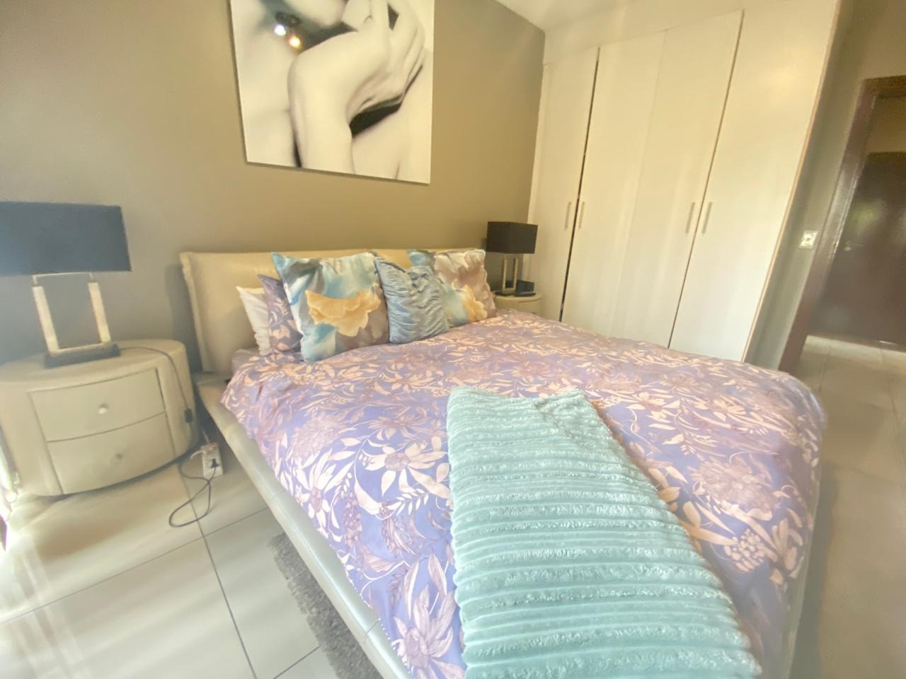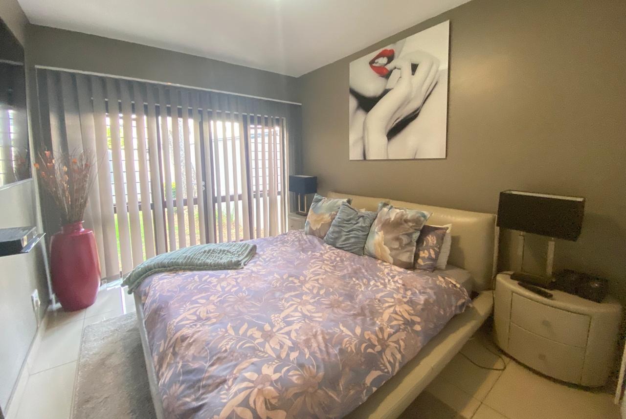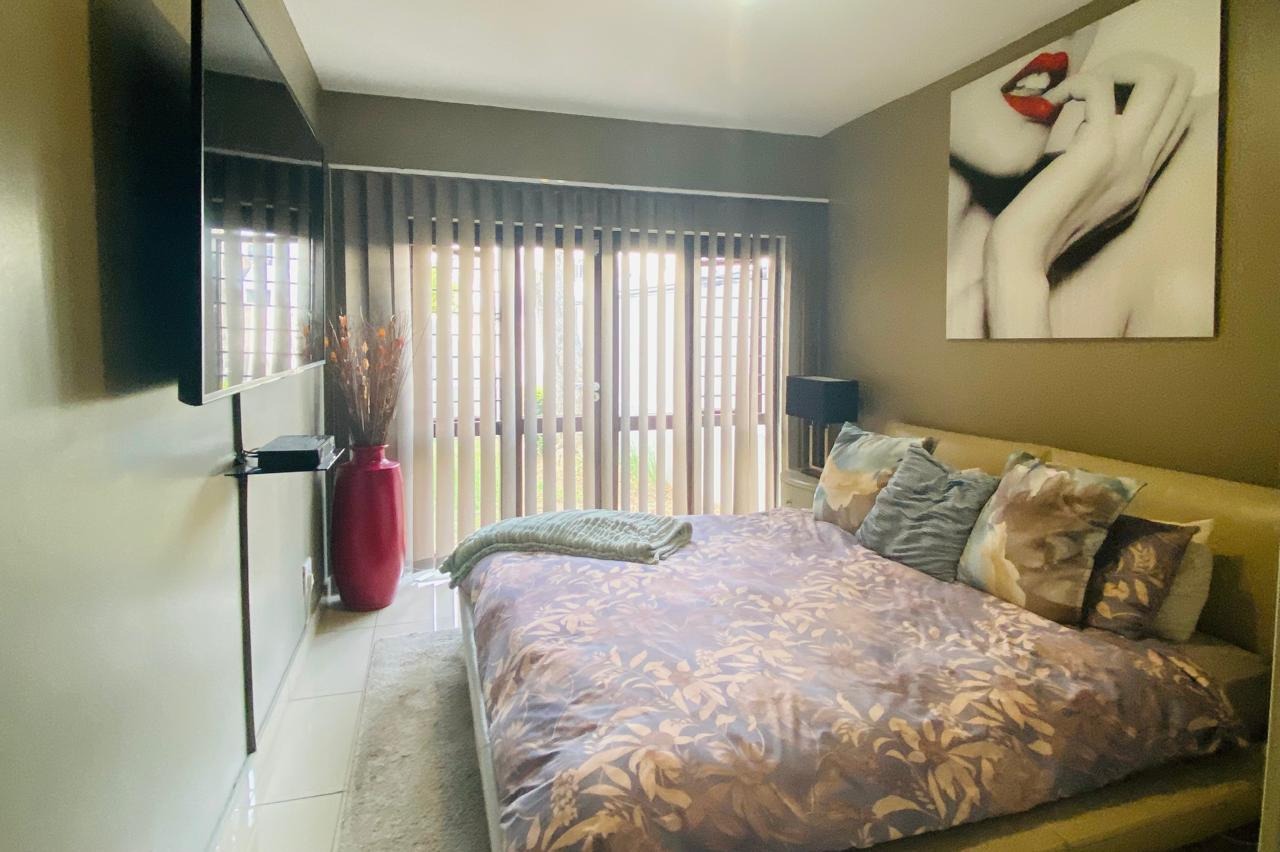 Beautiful ground floor garden apartment with 2 bedrooms and 1 full family bathroom available in the heart of Sunninghill. The apartment has a spacious open plan layout with the living area leading out onto a private sunny patio with a small manicured garden. The apartment is tiled throughout. The open plan kitchen flows effortlessly into the cozy lounge area. There is space for a fridge and washing machine and a decent amount of cupboard space. There are 2 comfortable sized tiled bedrooms with built in cupboards. The complex has 24 hour guarded security, a swimming pool and clubhouse available for those relaxing days. Easy access to shopping centers, highways, restaurants, public transport and medical and fitness centers.