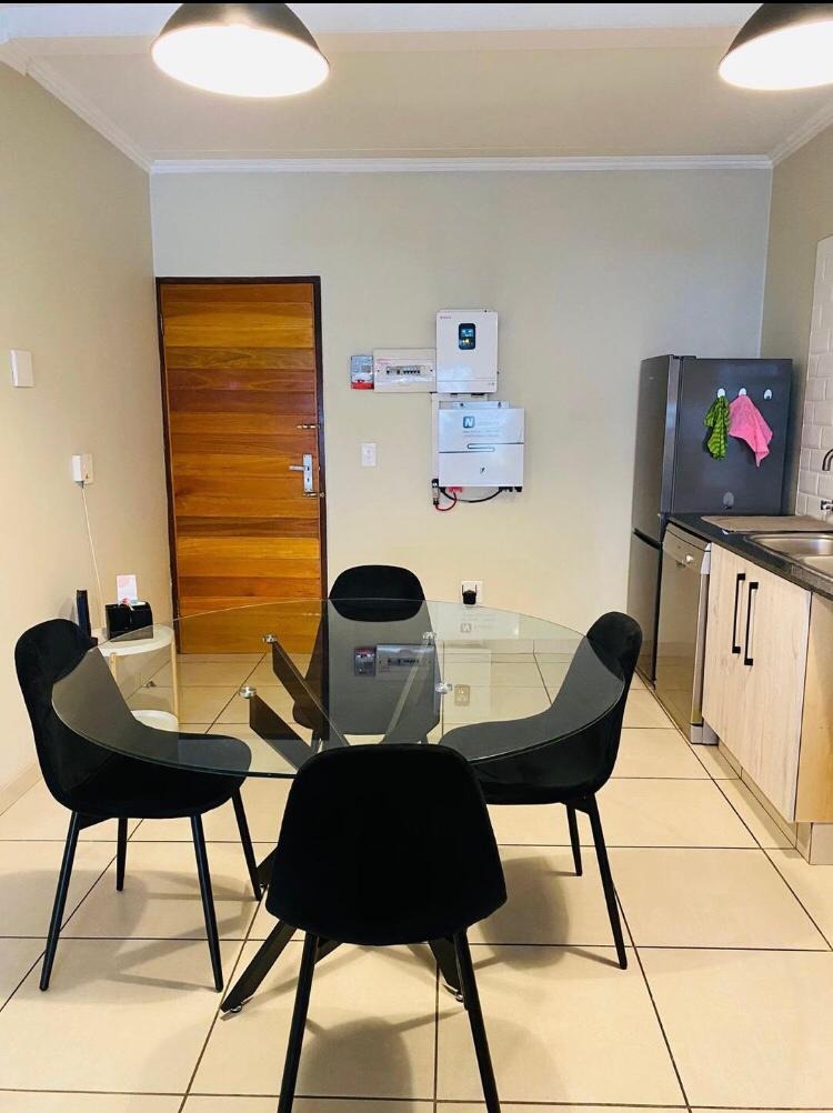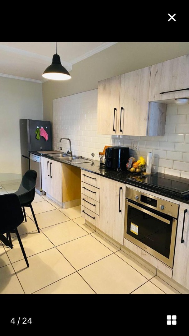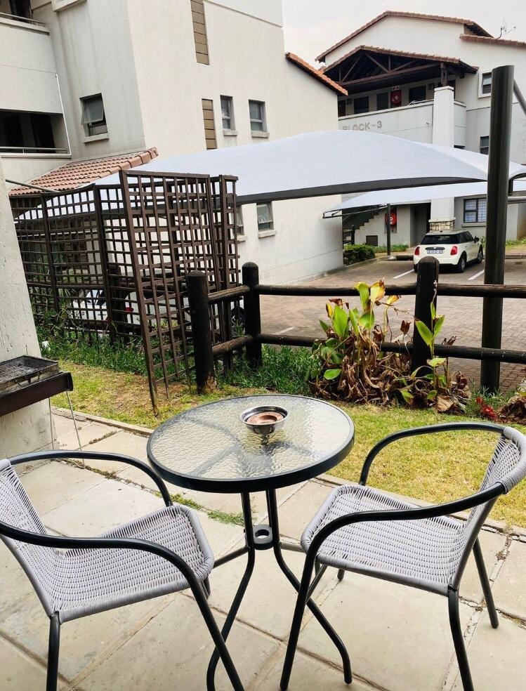 This modern apartment, nestled within a well-maintained complex in the sought-after suburb of Sunninghill, Sandton, offers a blend of contemporary design and practical living. The complex itself boasts a modern architectural style with attractive light-colored buildings and a landscaped central entrance, creating an inviting first impression.