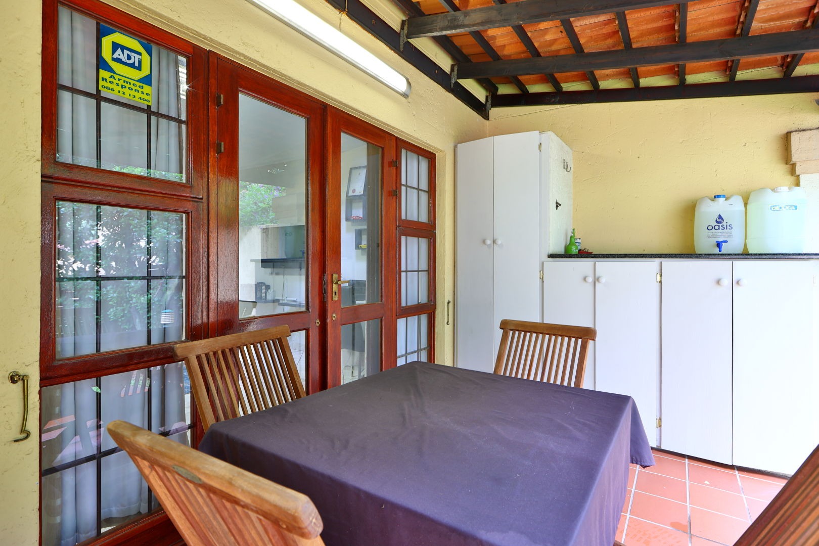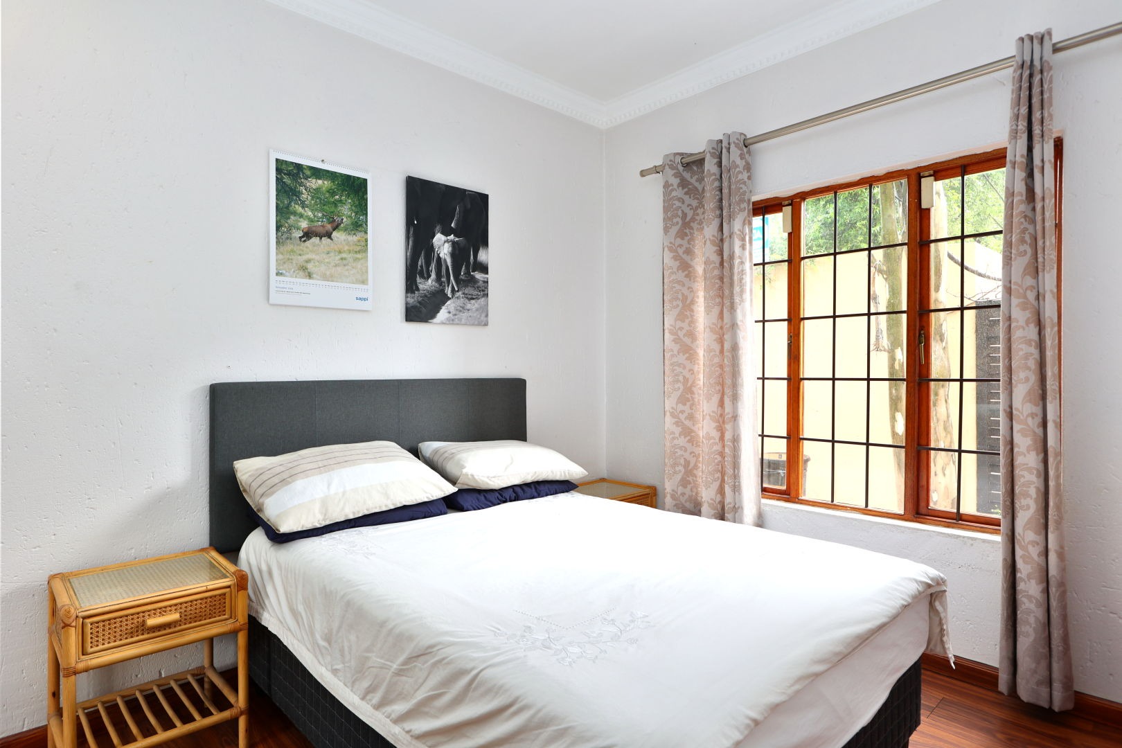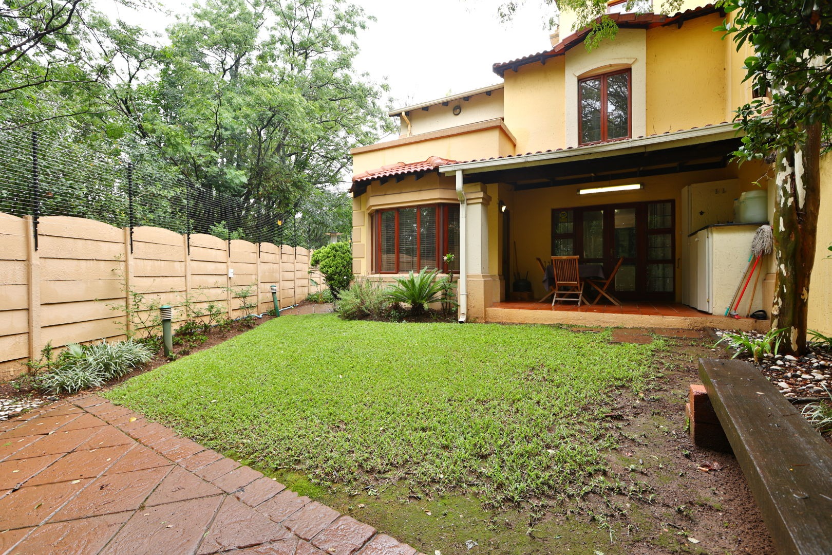 Discover this charming residential sale property located in a secure complex within a quiet cul-de-sac in Sunninghill, Sandton. The complex entrance features a Mediterranean/Tuscan architectural style with terracotta roofs, a gated entrance, security booth, and electric fencing, ensuring enhanced safety and peace of mind for residents. Step inside to a well-appointed interior spanning 108 sqm. The spacious lounge and dining area boast light tiled flooring, a neutral colour palette, and abundant natural light from large French doors that provide direct access to an outdoor patio/seating area. A prominent wooden staircase adds character, while the compact kitchen is equipped with light wood cabinetry, granite-style countertops, a built-in oven, hob, and extractor fan, all complemented by tiled finishes and natural light from a window. This home offers three comfortable bedrooms, each featuring wood laminate flooring, white walls, and decorative crown molding. One bedroom benefits from a bright bay window and a dedicated desk area, ideal for work or study. The property includes two bathrooms, with one being an en-suite. The main bathroom is a modern sanctuary, complete with a jetted bathtub, a wall-mounted toilet, a stylish vanity with a vessel sink, granite countertop, and contemporary tiling throughout. Practicality is key with two dedicated parking spaces. Situated in this sought-after suburb, the location offers convenient access to amenities and major routes, making it an ideal choice for discerning buyers seeking a blend of comfort and security. Key Features: * 3 Bedrooms, 2 Bathrooms (1 en-suite) * 1 Lounge, 1 Dining Room * Compact Kitchen with built-in oven/hob * Tiled and wood laminate flooring * Gated Security Complex with electric fencing * Direct outdoor access from living area * Two dedicated parking spaces * Located in a quiet cul-de-sac * Modern bathroom with jetted bathtub