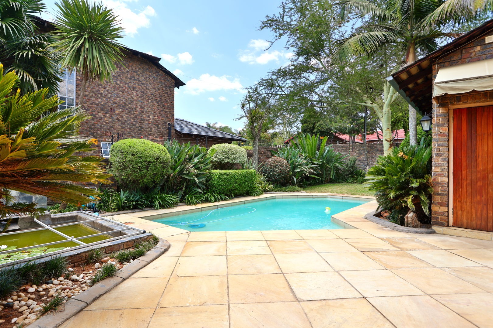 Situated in Woodmead, in the northern part of Sandton, the property borders Sunninghill, Rivonia, Gallo Manor, and Buccleuch. The home is located within a secure boomed-off area with controlled access, a manned gate, and regular patrols.