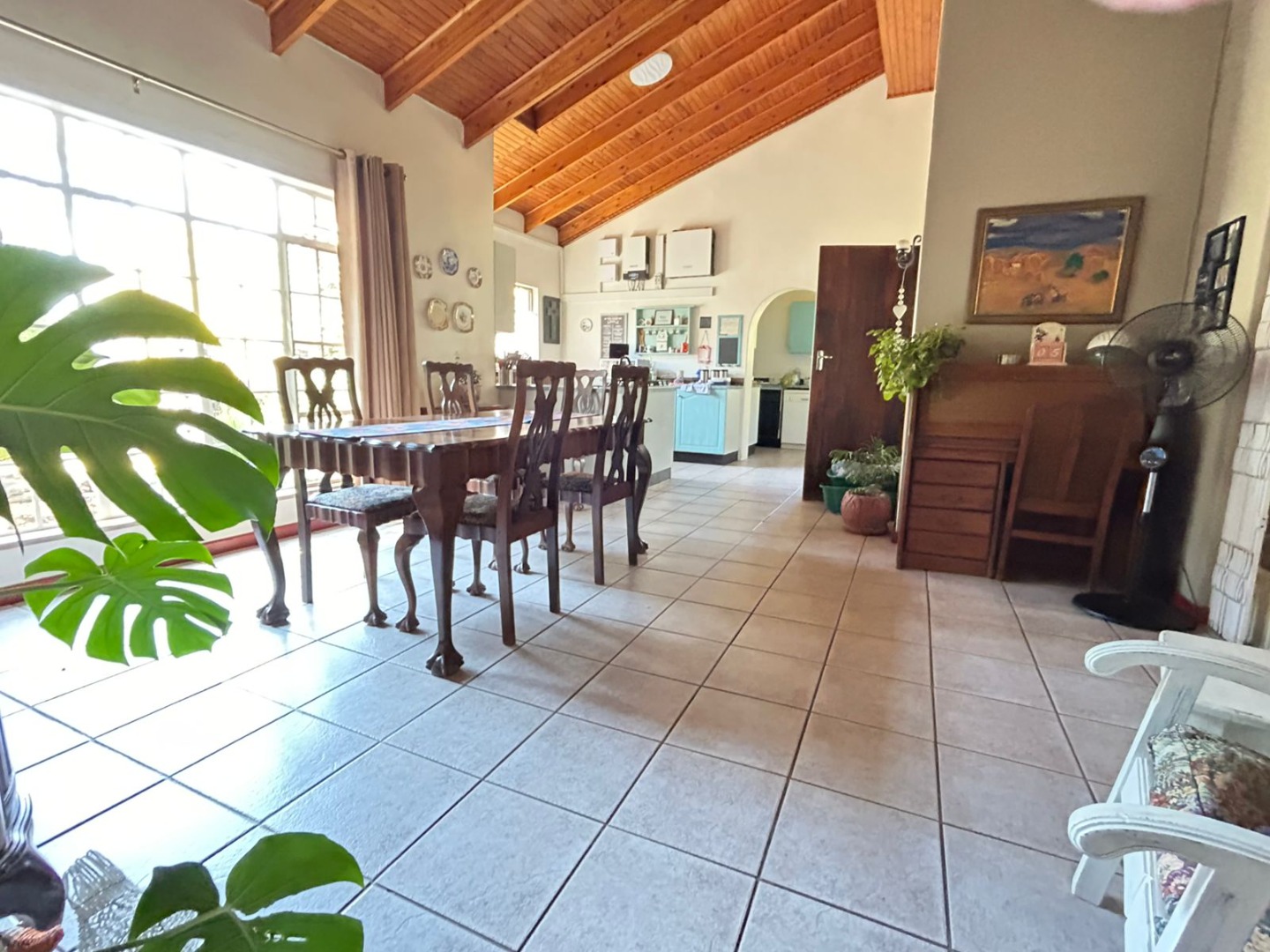 Come and discover this lovely 4-bedroom, 3-bathroom home nestled on a generous 20000 sqm erf in Endicott, Springs. It's a place where you can truly relax and enjoy life, offering a comfortable and inviting atmosphere for you and your loved ones. Step inside and you'll find a home full of character. The open-plan living and dining areas boast impressive high vaulted wooden ceilings and exposed beams, giving the space a wonderfully spacious and rustic feel. The kitchen is a real highlight with its unique wooden panel ceiling, cheerful light blue cabinetry, a gas hob, and a practical galley layout that makes cooking a breeze. There's also a dedicated family TV room and a study, perfect for work or quiet time. With four comfy bedrooms and three bathrooms, including one en-suite, there's plenty of space for everyone. You'll appreciate the natural light flooding in, the practical built-in wardrobes, and the charming exposed brick accent walls in some rooms. The bathrooms are neat, with one featuring a distinctive glass block shower wall. Outside, the fun continues with your very own private swimming pool, perfect for those sunny South African days. The mature trees around the pool area offer a lovely natural ambiance and privacy, making it a great spot to unwind. You'll also find a spacious garden, a braai room for entertaining, two garages, and an additional parking spot. Plus, your furry friends are welcome here! This home is all about comfortable living and making the most of your space. It’s a fantastic opportunity to own a charming property in Springs, South Africa. Key Features: * 4 Bedrooms, 3 Bathrooms (1 En-suite) * Spacious 20000 sqm Erf * Private Swimming Pool & Garden * Open-Plan Living with Vaulted Wooden Ceilings * Charming Kitchen with Gas Hob * Dedicated Study & Family TV Room * Braai Room for Entertaining * 2 Garages + 1 Parking * Pets Allowed