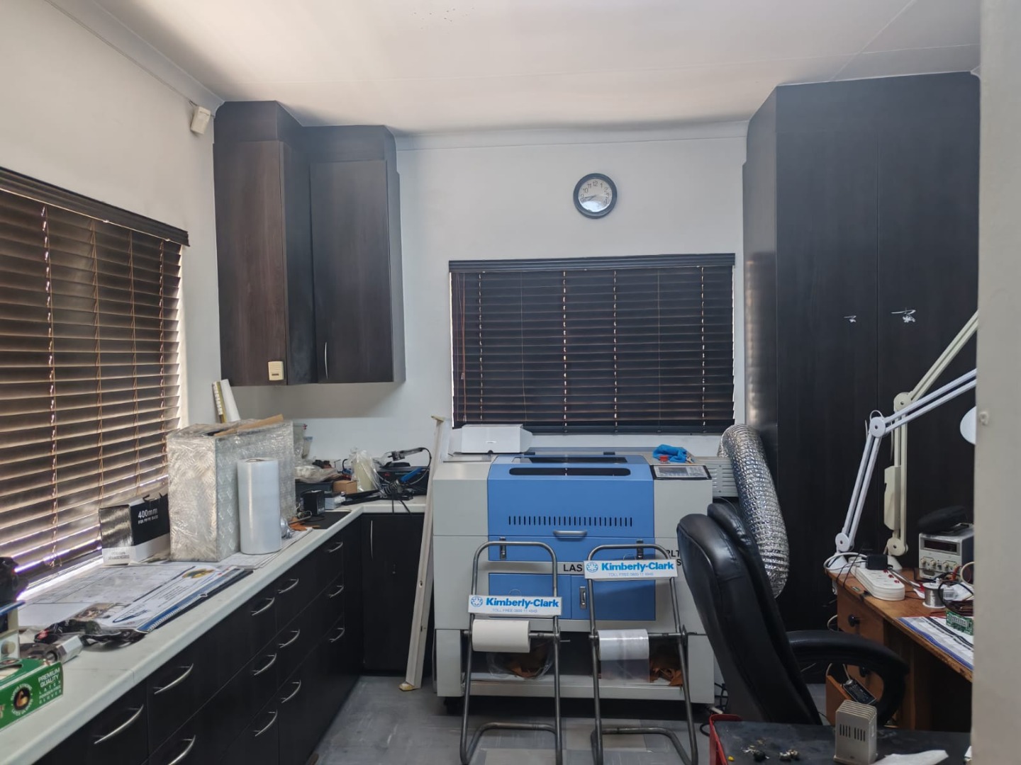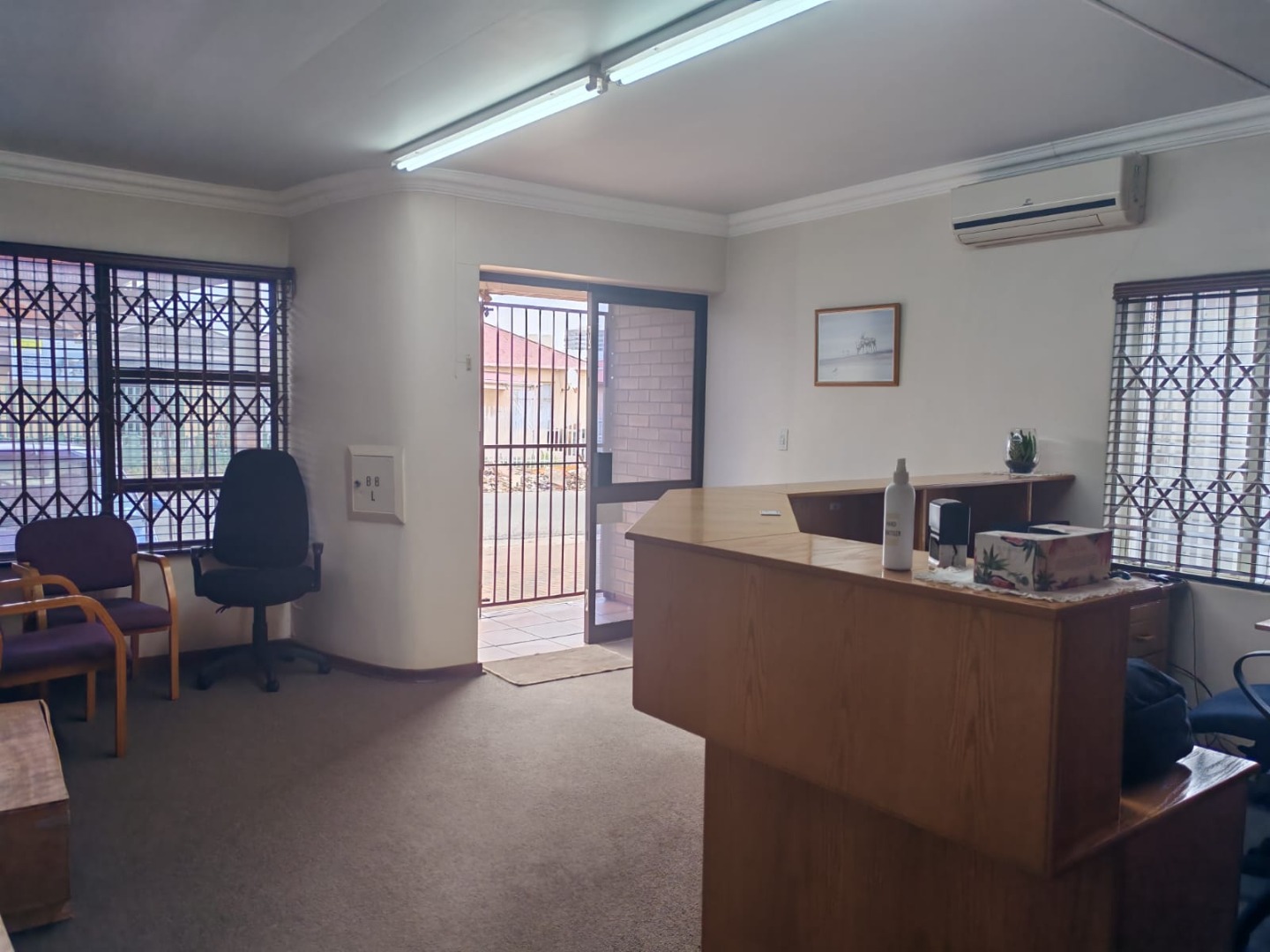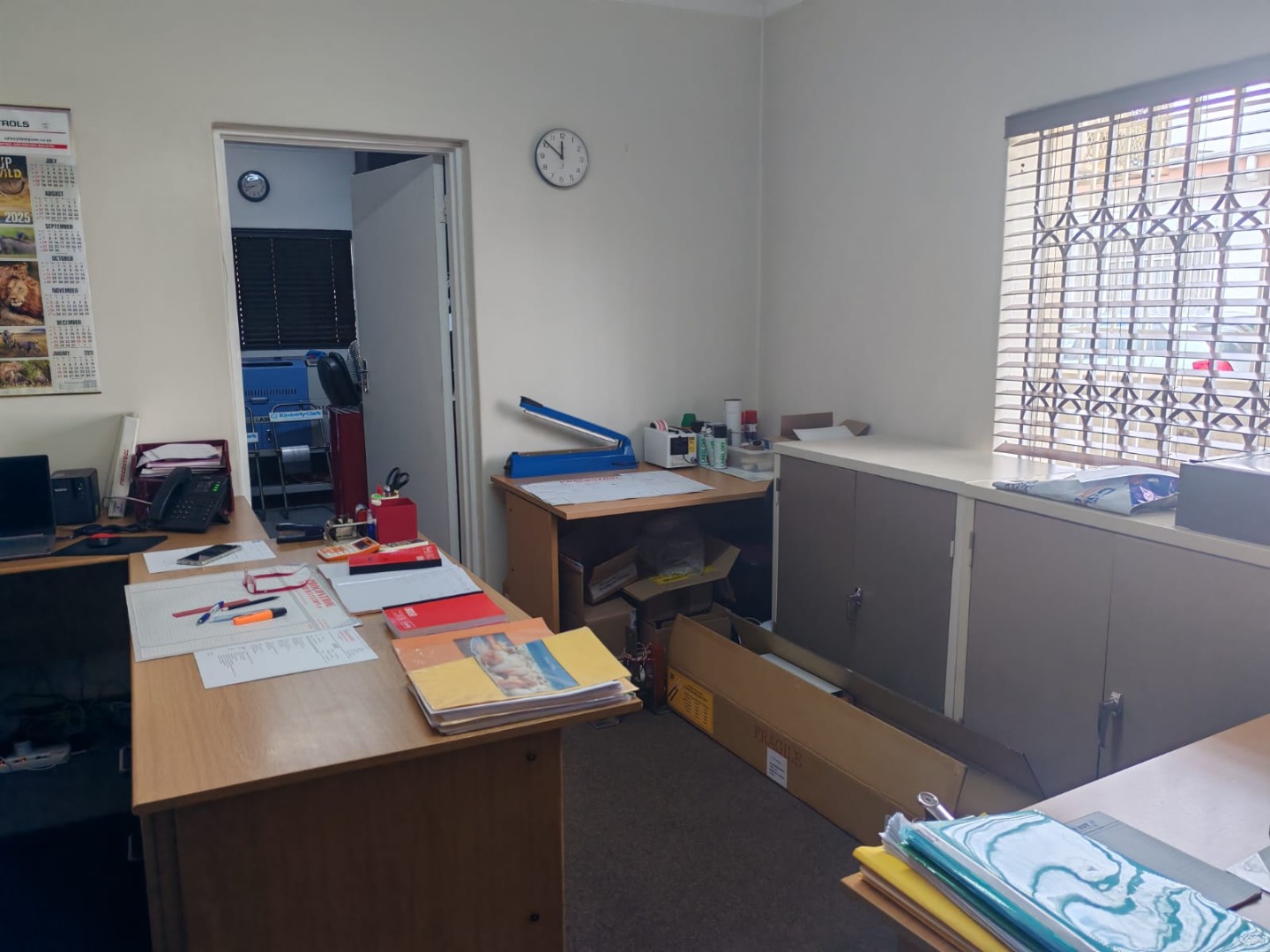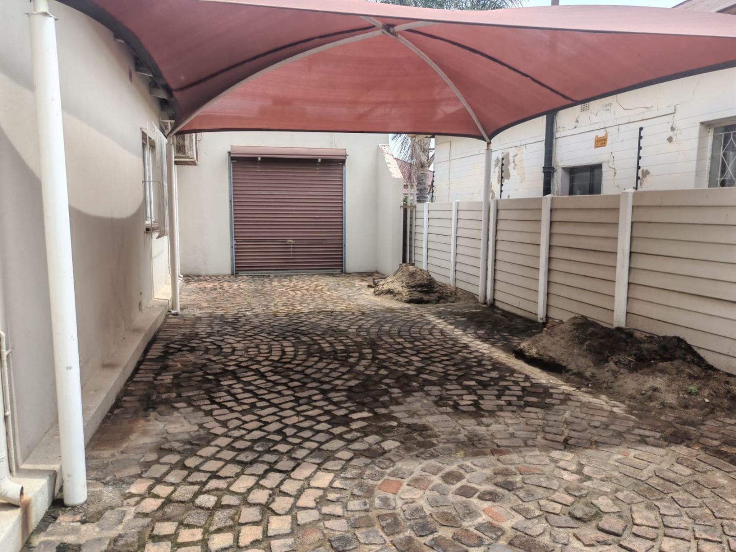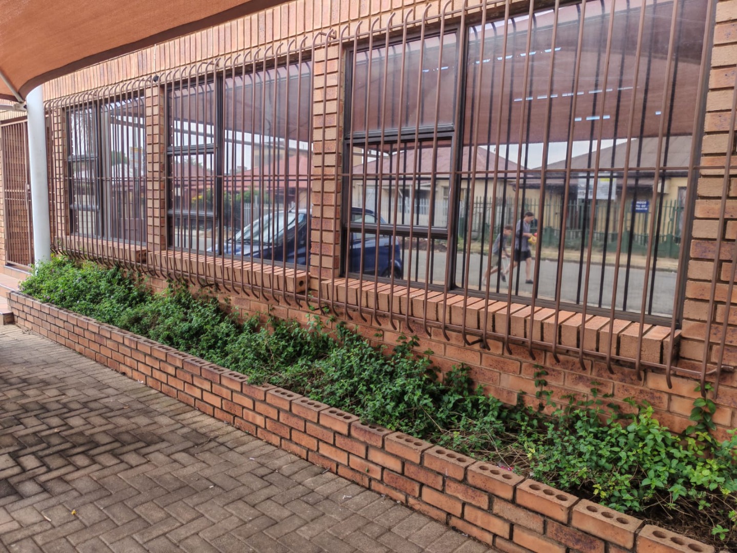 Looking for a great spot to set up or expand your business? This commercial property offers a fantastic opportunity with its practical layout and solid features. From the outside, you'll notice the sturdy brick exterior and a generous paved area that provides ample parking for up to 8 vehicles, complete with an overhead shade structure – super handy for those sunny South African days. Security is well-covered with robust window bars and a visible CCTV camera, giving you peace of mind. While the exterior might need a little touch-up on the paint and paving to really shine, the bones are definitely there for a welcoming first impression.