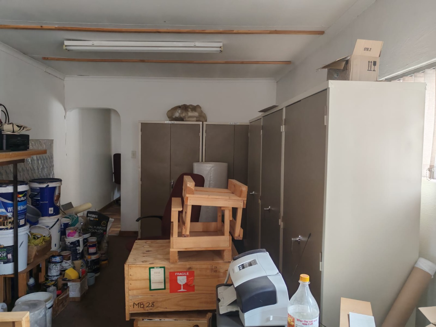 Step inside and you'll find a functional reception area, perfect for greeting clients, featuring a handy desk, guest seating, and a cool brick accent wall. The space is kept comfortable with air conditioning, and security grilles on the windows add an extra layer of safety. The property boasts multiple versatile office spaces, each benefiting from natural light and equipped with air conditioning for those warmer months. You'll also find plenty of storage solutions, including filing cabinets and extensive shelving, making organisation a breeze.