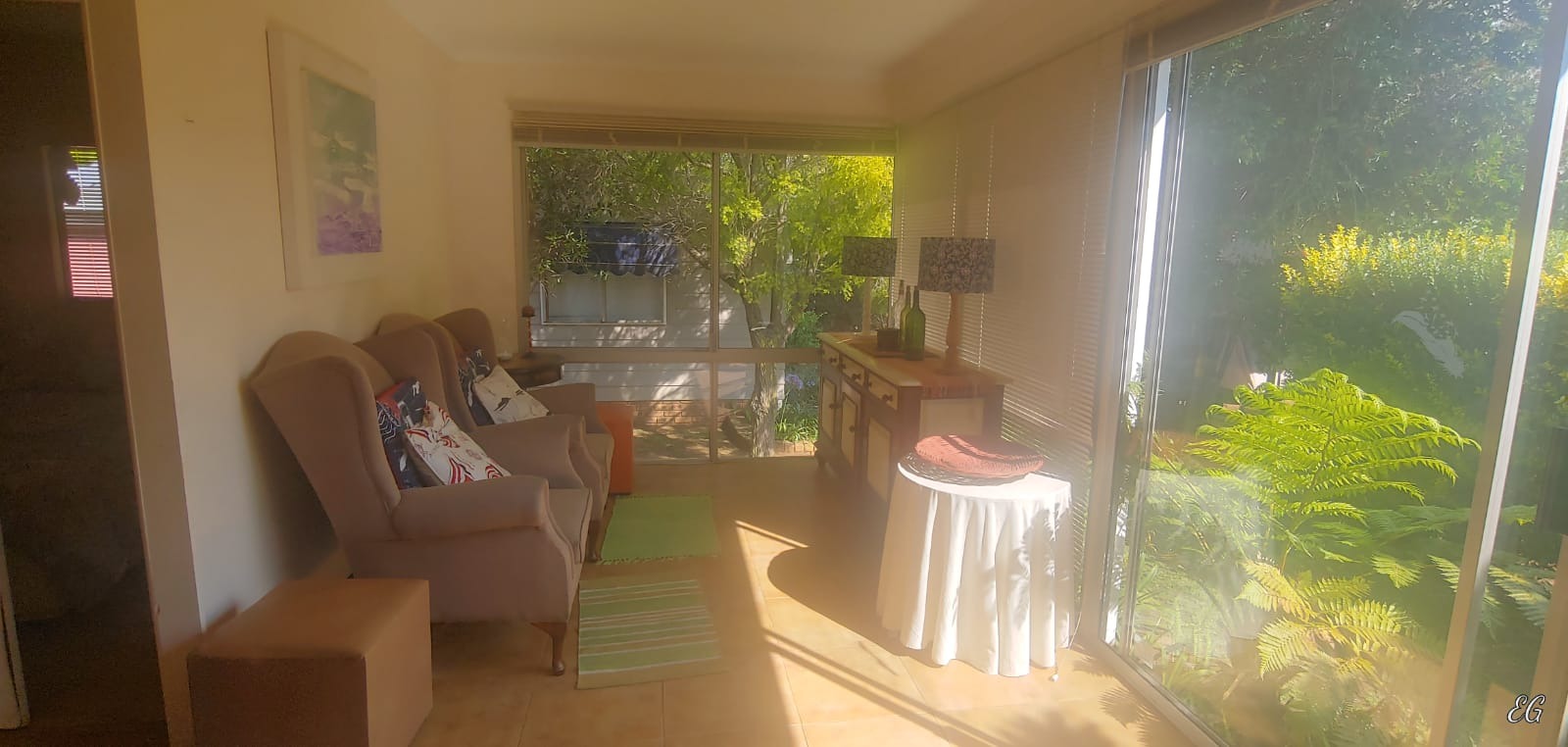 The interior features a comfortable layout designed for relaxed living. The property includes a spacious lounge, a dedicated dining room, and a functional kitchen, all contributing to a seamless flow. A highlight is the sun-drenched enclosed patio or sunroom, providing an additional versatile living space with delightful views of the vibrant garden, perfect for relaxation or entertaining guests.