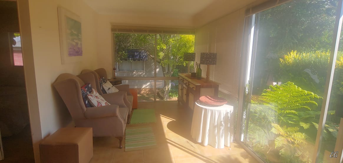The interior features a comfortable layout designed for relaxed living. The property includes a spacious lounge, a dedicated dining room, and a functional kitchen, all contributing to a seamless flow. A highlight is the sun-drenched enclosed patio or sunroom, providing an additional versatile living space with delightful views of the vibrant garden, perfect for relaxation or entertaining guests.