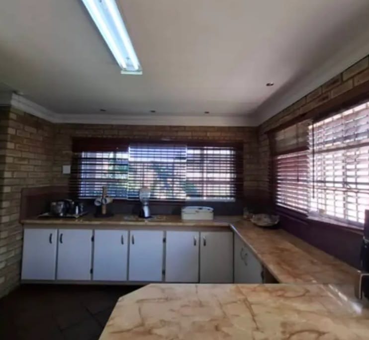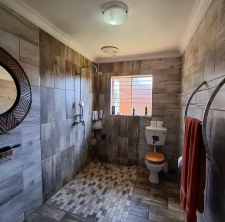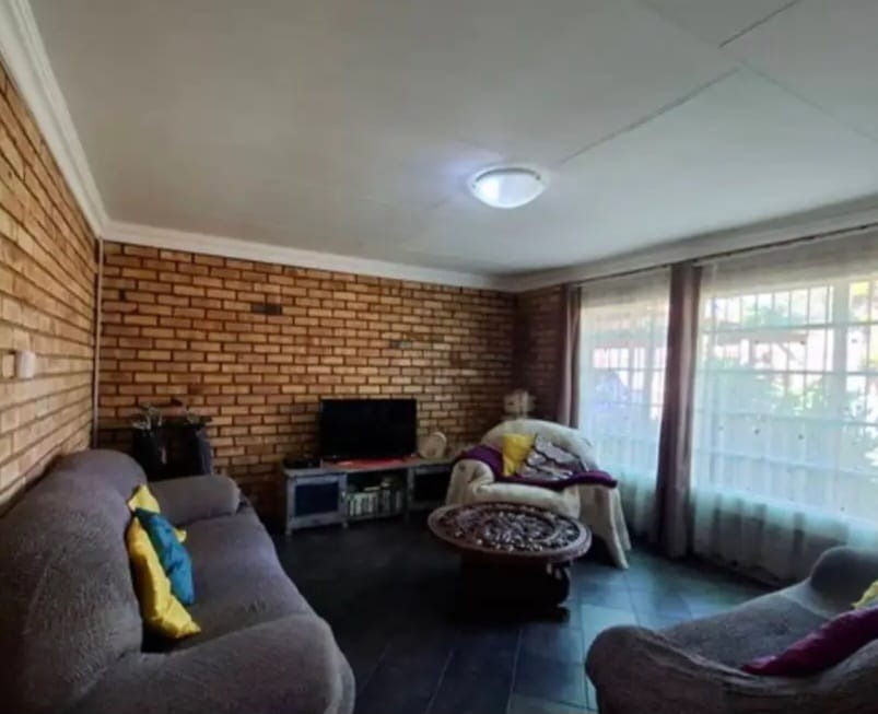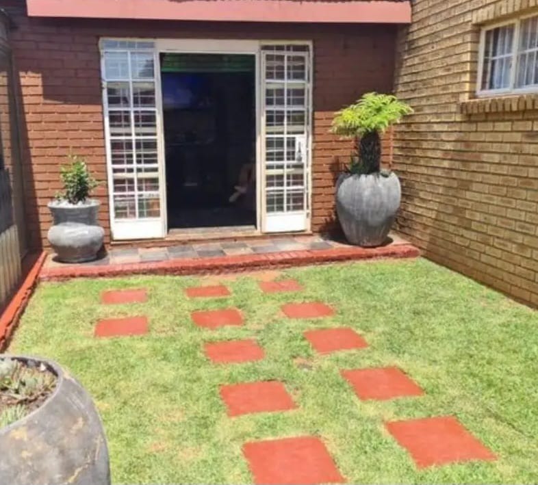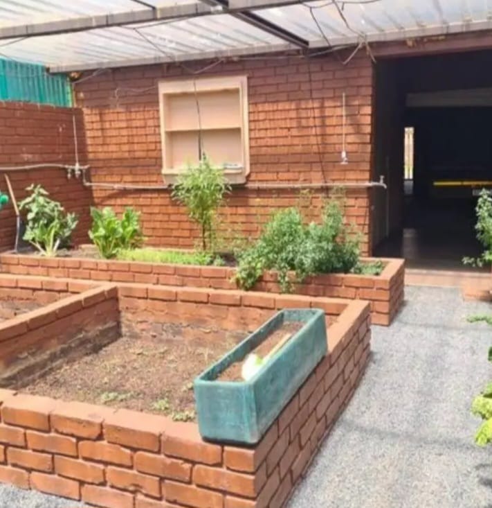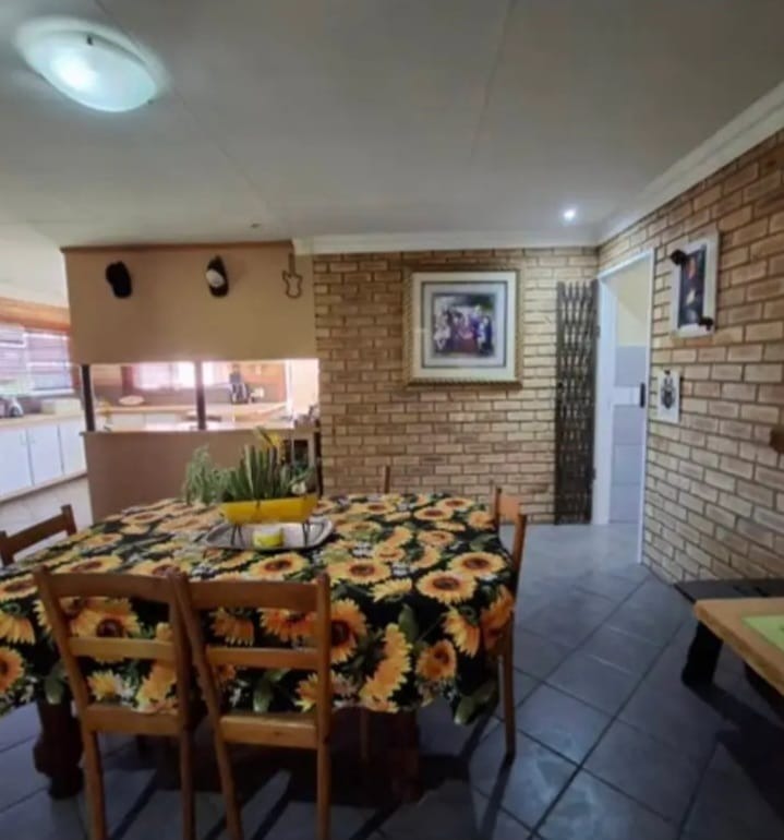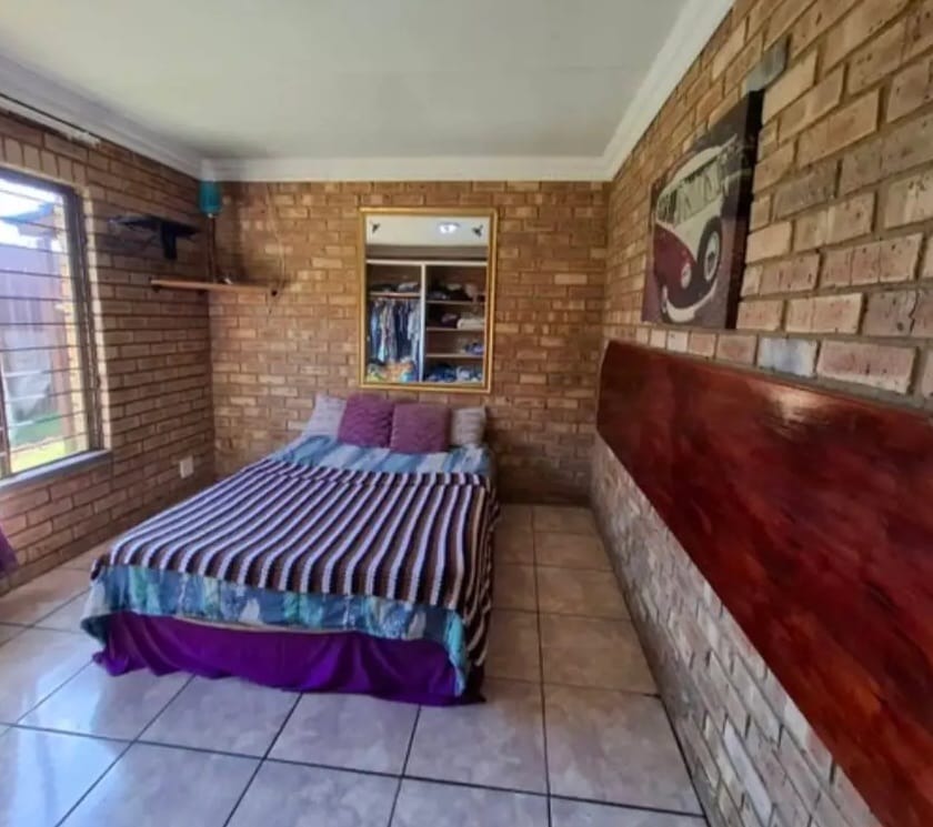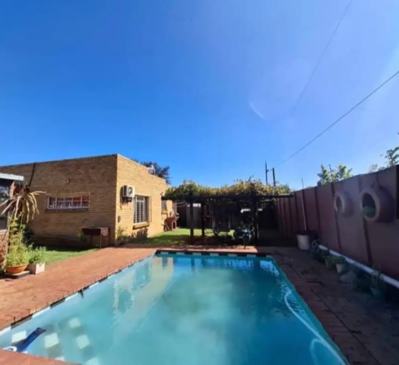 Discover this inviting 3-bedroom, 2-bathroom family home located in the tranquil suburb of Eloff, Delmas, South Africa. Designed for comfortable living, the residence features two spacious lounges and a dedicated dining room, providing ample space for relaxation and entertaining. A functional kitchen awaits culinary endeavours. Durable tiled flooring extends throughout the interior, complemented by recessed ceiling lighting. The three well-proportioned bedrooms offer private retreats, with one showcasing rustic exposed brick walls and an integrated mirrored storage unit. The two bathrooms include a modern update, featuring wood-look tiled walls and a mosaic-tiled walk-in shower. For peace of mind, the home is equipped with an alarm system and security bars on windows. Step outside to a vibrant outdoor oasis, perfect for family enjoyment. The property boasts a private swimming pool, ideal for cooling off during warm South African days. An extensive garden area features raised brick garden beds, a well-maintained lawn, and charming stepping stones. A covered patio or sunroom provides a sheltered spot for outdoor dining or relaxation, complemented by a shaded pergola. Two garages and additional parking for two vehicles ensure convenience, alongside water tanks and a wendy house. Pets are welcome. Key Features: * 3 Bedrooms, 2 Bathrooms * 2 Lounges, 1 Dining Room * Private Swimming Pool * Established Garden with Raised Beds * Covered Patio/Sunroom & Pergola * 2 Garages, 2 Parking Spaces * Alarm System & Security Bars * Water Tanks & Wendy House * Pet-Friendly