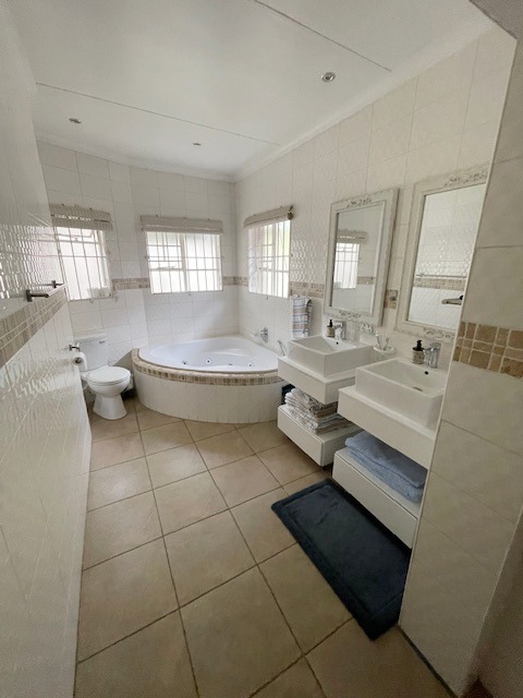 Discover this spacious 330 sqm family home available for rent in the desirable Bedfordview suburb of South Africa. This residence features three comfortable bedrooms and two well-appointed bathrooms, including a private ensuite. The heart of the home is its generously sized kitchen, equipped with extensive granite countertops, a built-in double oven, a gas hob, and ample cream-colored cabinetry, complemented by modern tiled flooring. A convenient walk-in pantry provides additional storage. The property also boasts a dedicated dining room and a welcoming lounge, perfect for family gatherings and relaxation, all accessible from an inviting entrance hall. Step outside to a magnificent, well-maintained garden, offering a serene suburban retreat. The property features a large covered patio, ideal for outdoor entertaining, overlooking a sparkling pool and a charming lapa. The expansive green lawn and mature trees create a private oasis, perfect for families and pet owners, as pets are allowed. With three open parking spaces and a paved driveway, convenience is assured for residents and guests alike. Situated in a peaceful cul-de-sac, this home offers enhanced privacy and a secure living environment. Security features include an access gate, intercom system, and a totally walled perimeter. A borehole ensures a reliable water supply for the garden. Bedfordview is a sought-after suburban area, known for its tranquil atmosphere and convenient access to amenities. Key Features: * 3 Bedrooms, 2 Bathrooms (1 Ensuite) * Spacious 330 sqm Floor Size * Modern Kitchen with Granite Countertops, Double Oven & Gas Hob * Walk-in Pantry * Large Covered Patio, Pool & Lapa * Expansive, Well-Maintained Garden * 3 Open Parking Spaces * Secure Cul-de-Sac Location with Access Gate * Pets Allowed
