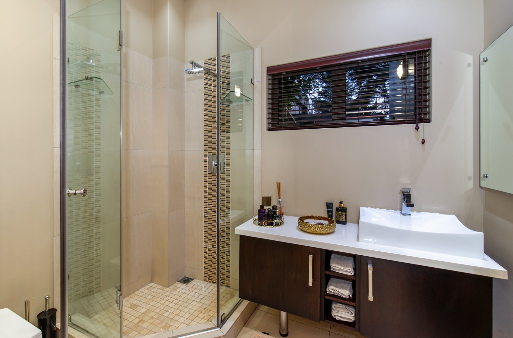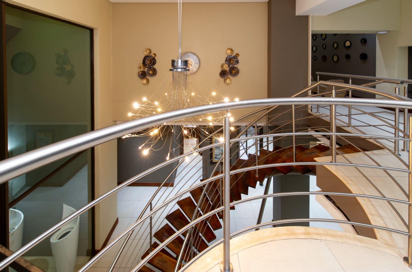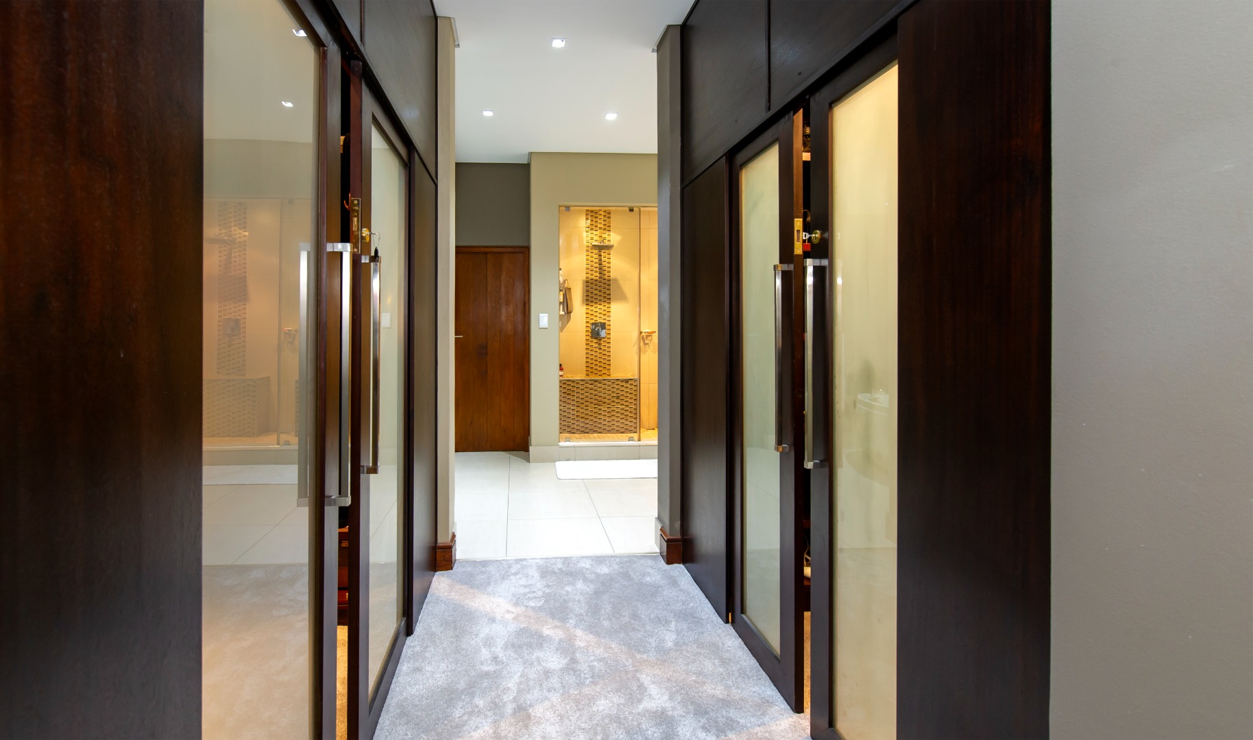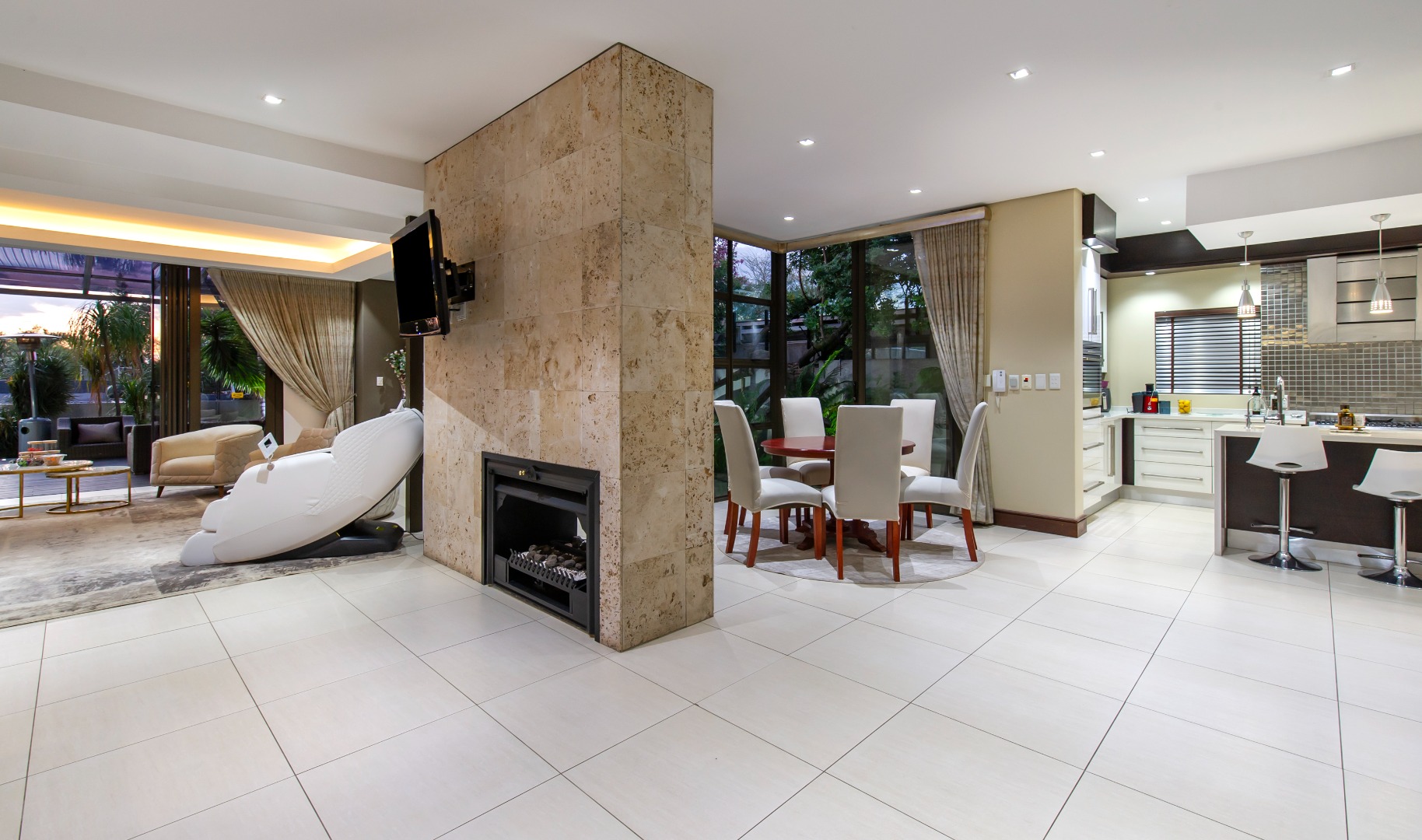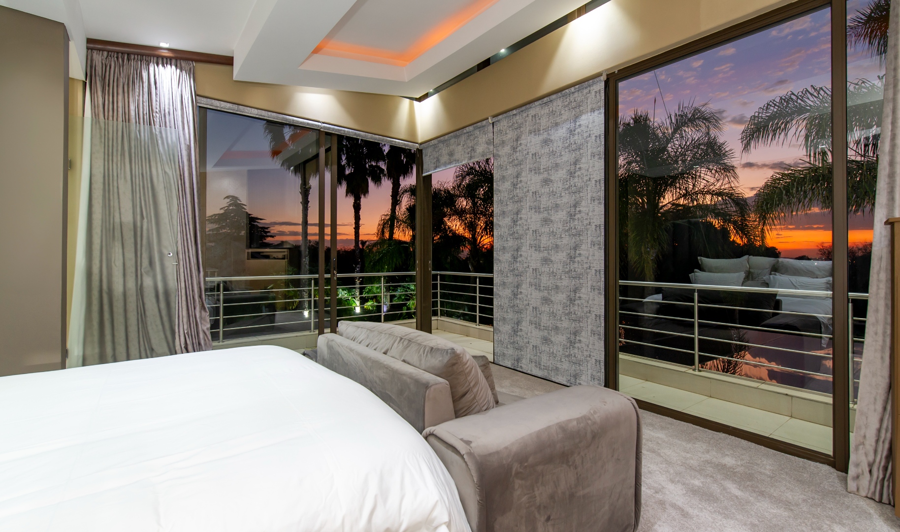 Situated in the elite suburb of Bedfordview, this breathtaking double-storey executive residence offers contemporary luxury at its finest. A striking glass-encased entrance hall with a sweeping natural-wood staircase sets the tone for the sophisticated interiors. Expansive windows frame the landscaped garden and newly installed swimming pool with cascading water feature.