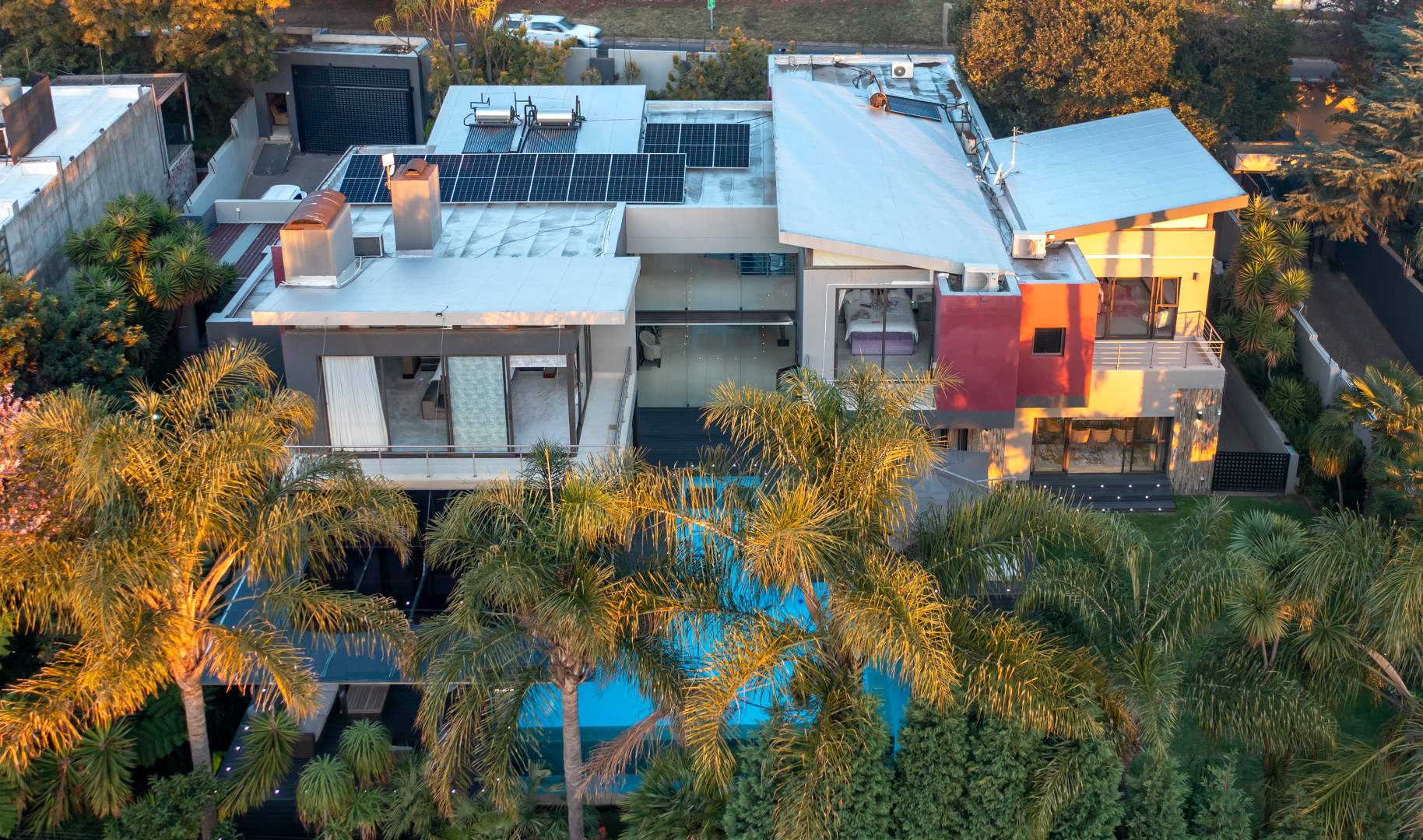 Additional features include five automated garages, double covered parking, a solar inverter system, optional staff accommodation, top-tier security, and ample visitors’ parking.