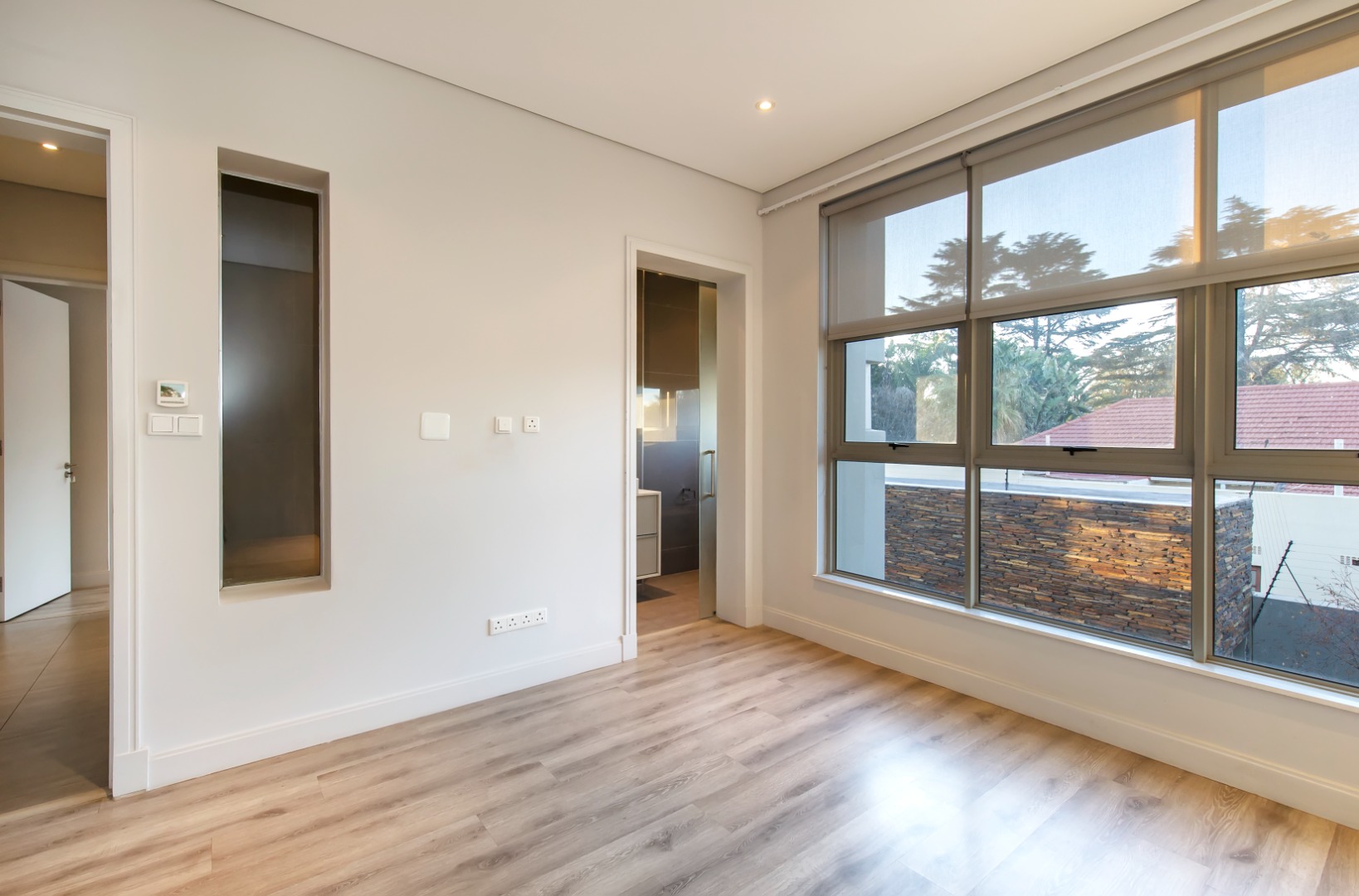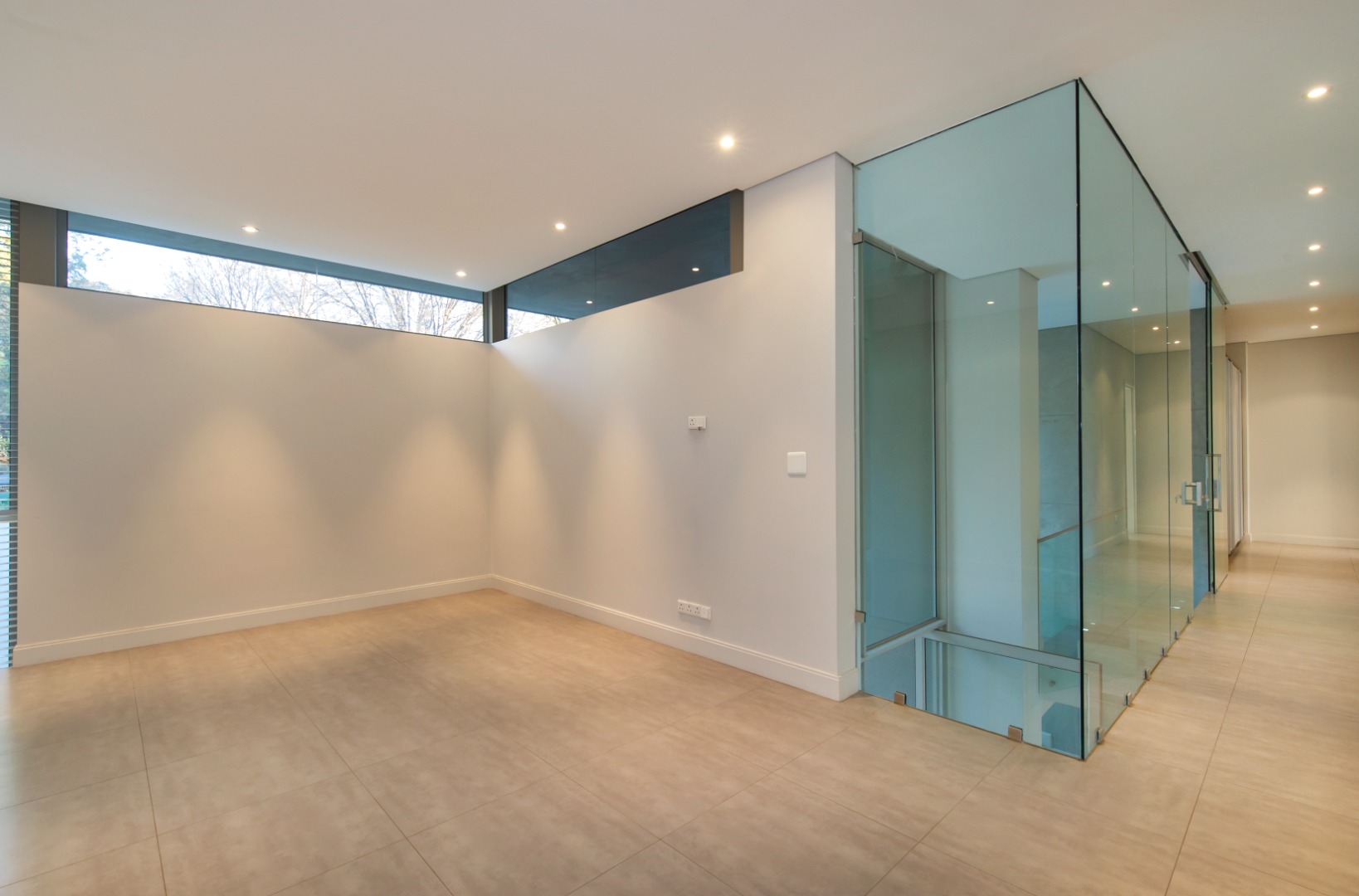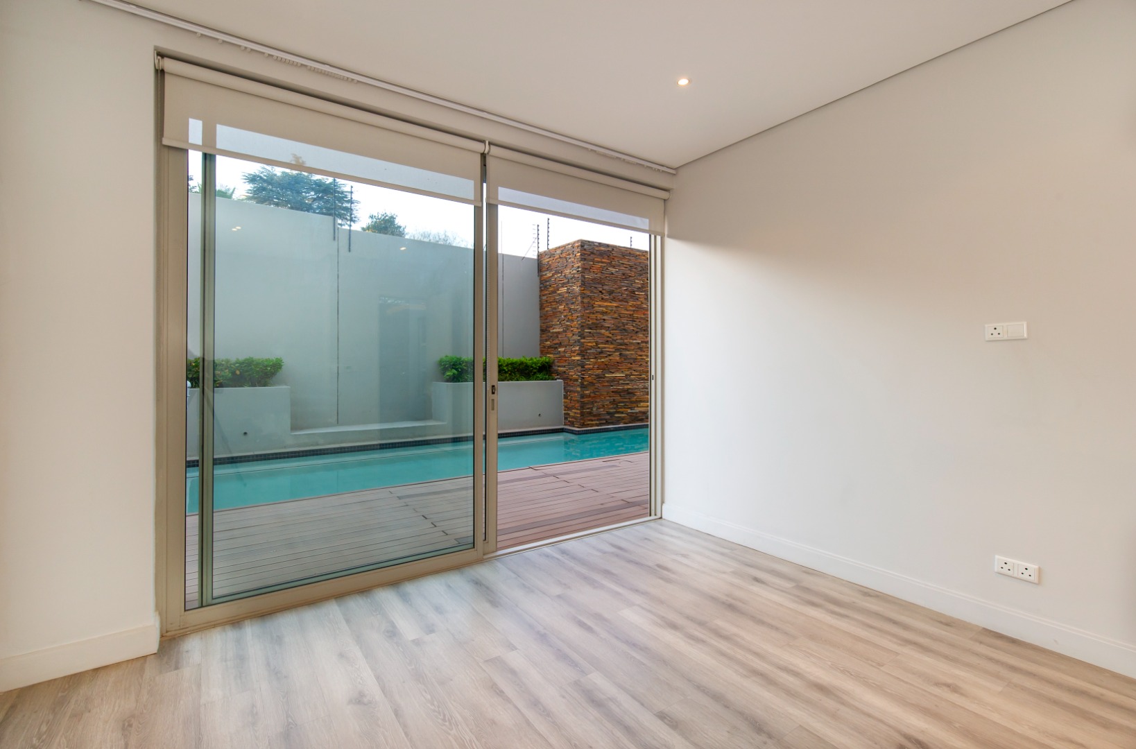 Discover contemporary living in this exquisite 4-bedroom residence available for rent in Bedfordview. Spanning an impressive 550 sqm under roof on a 1068 sqm erf, this home boasts a striking modern architectural design with clean lines and expansive windows, ensuring abundant natural light throughout. The interior features a welcoming entrance hall, a spacious lounge, a dedicated dining room, and an additional family TV room, providing ample space for relaxation and entertainment. The well-appointed kitchen includes a convenient pantry, complemented by a separate laundry area for practical living. Each of the four bedrooms benefits from its own private en-suite bathroom, offering ultimate comfort and privacy. The property seamlessly blends indoor and outdoor living, with large glass doors opening onto a private patio and a stylish wooden deck surrounding a refreshing swimming pool. This outdoor oasis is perfect for entertaining or simply unwinding in the well-maintained garden. Parking is generous with three dedicated garages, ensuring secure accommodation for vehicles. Additionally, the property includes staff quarters, adding to its comprehensive functionality. Security is paramount, with features such as electric fencing, a comprehensive alarm system, and CCTV surveillance providing peace of mind. The high boundary walls further enhance privacy and safety, making this an ideal lock-up-and-go solution for discerning tenants. This home is perfectly suited for families or professionals seeking a sophisticated and secure lifestyle in a prime location. Oriel, situated in the vibrant city of Bedfordview, is a highly sought-after suburb known for its upscale residences and convenient access to amenities. Residents enjoy proximity to top schools, shopping centres, and major transport routes, enhancing the appeal of this desirable address in South Africa. Key Features: * 4 Bedrooms, 4 En-suite Bathrooms * 3 Garages * Private Swimming Pool & Wooden Deck * Patio & Garden * Staff Quarters * Electric Fencing, Alarm System, CCTV * Modern Architectural Design * Pantry, Laundry, Family TV Room