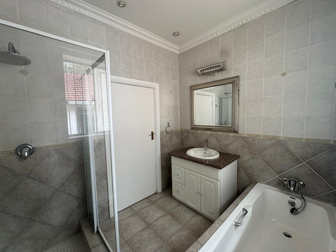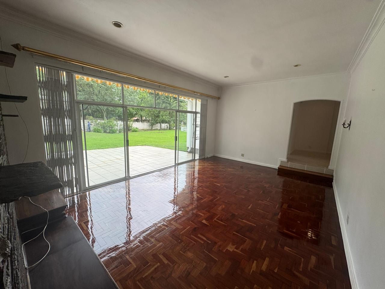 Multiple living areas define this home, with two expansive lounges and an open-plan dining area enhanced by beautiful parquet flooring. These spaces flow effortlessly into a charming garden and enclosed swimming pool, creating an ideal setting for both entertaining and relaxed family living. An inviting lapa area completes the outdoor entertainment offering.