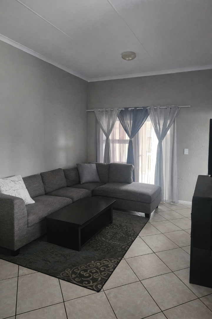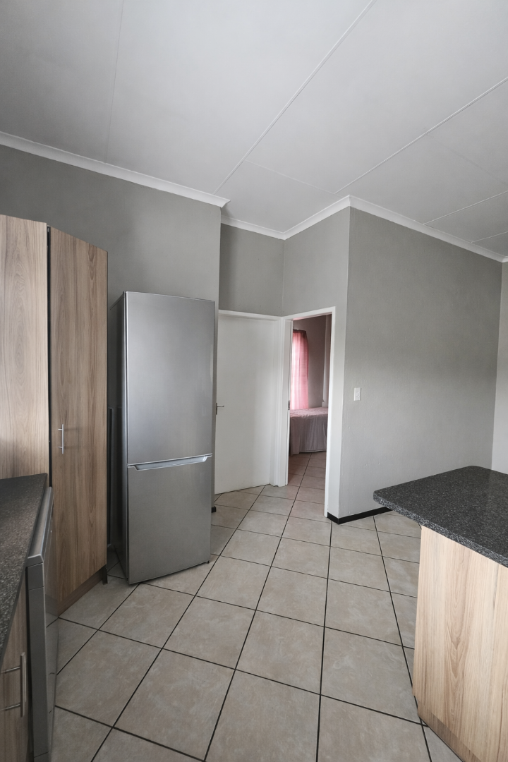 Hey there! Check out this lovely 2-bedroom, 2-bathroom rental in a secure complex in Benoni. This spot is super comfy with a modern kitchen featuring cool wooden cabinets, dark granite countertops, and even a washing machine to make life easier. The open-plan lounge area is perfect for chilling out, and you'll find neat tiled flooring throughout, making it a breeze to keep clean.