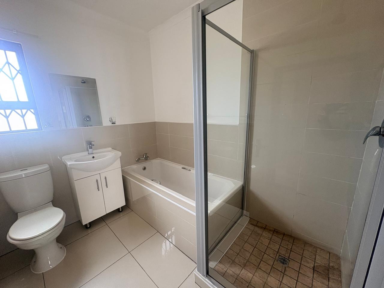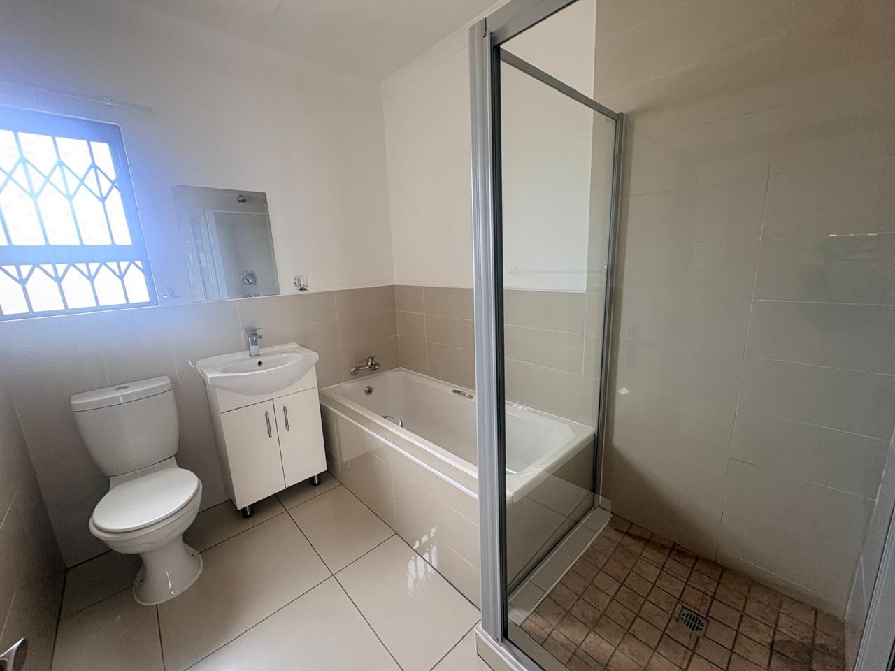Lovely 2-bedroom, 2-bathroom upstairs unit in a secure complex. Ideal for a couple seeking modern finishes and extra space. Tiled throughout with granite countertops in the kitchen and laminated flooring in the bedrooms. The main bedroom comfortably fits a king-size bed.