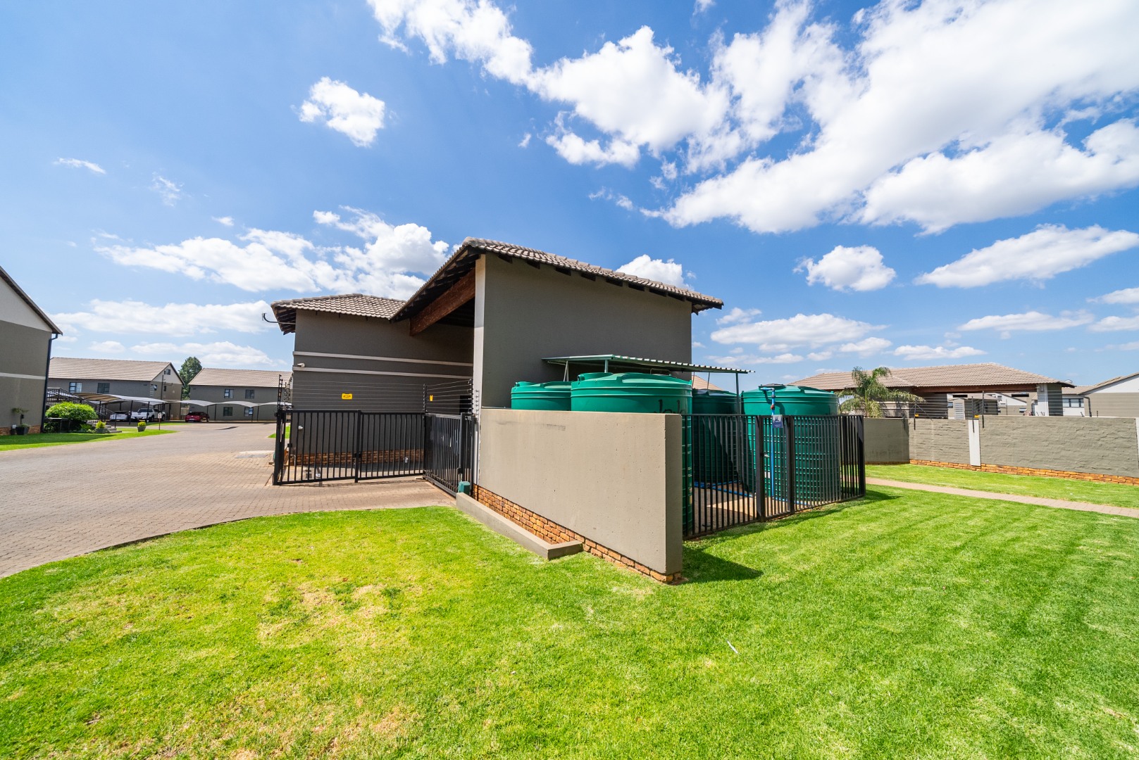 During loadshedding there is a battery powered inverter that powers the wifi router and single plug point along with a solar geyser to ensure hot water and savings on electricity costs. 2 undercover carport parking spaces exclusive to this unit is situated just Infront of you new home.