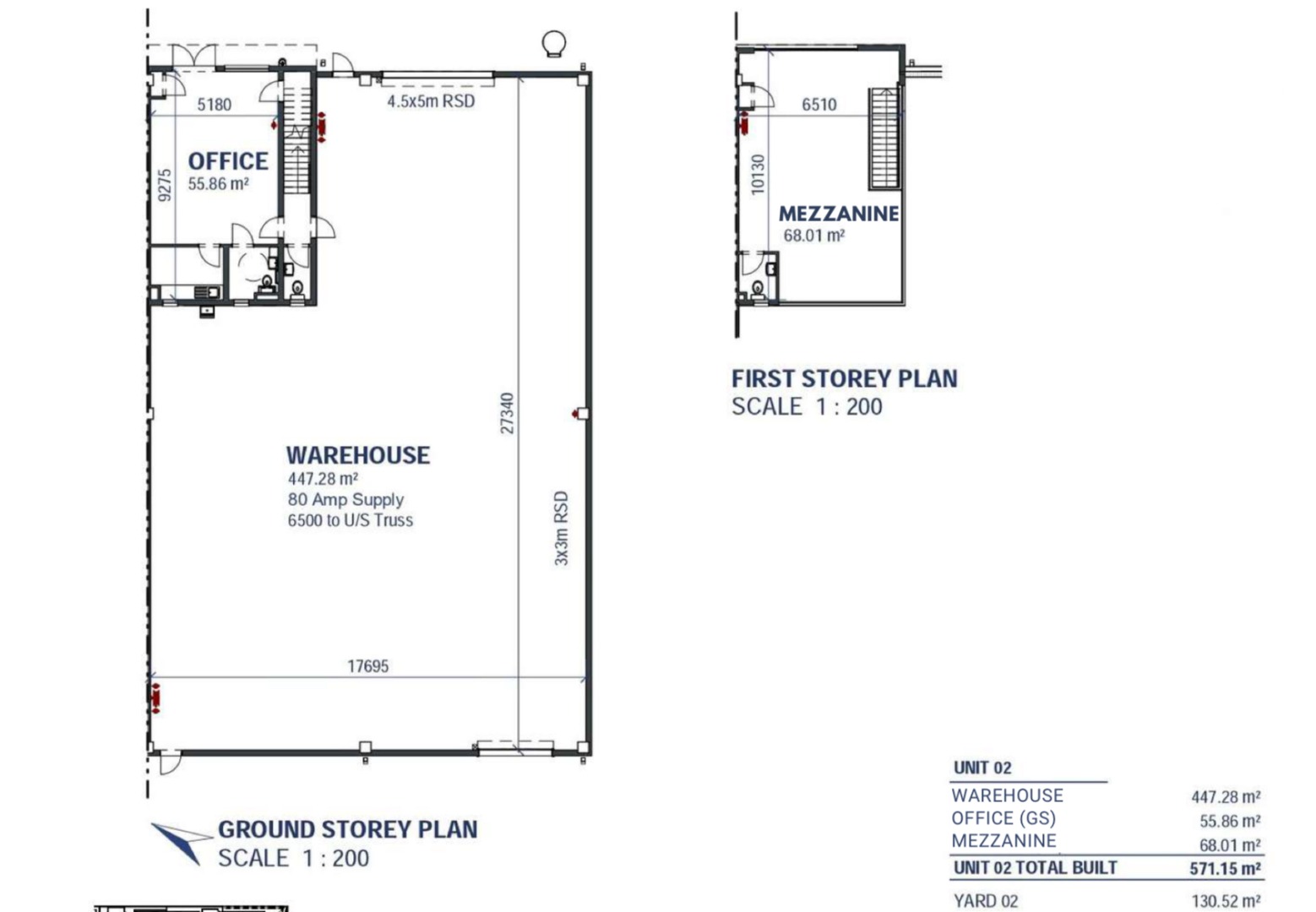 Warehouses ranging in size from 400 to 900sqm. Each unit includes two well-appointed bathrooms. Ideal rental space in Samrand for storage, light industrial operations or warehousing needs. Every warehouse has high-clearance warehouse space, roller shutter access, and a small office component.