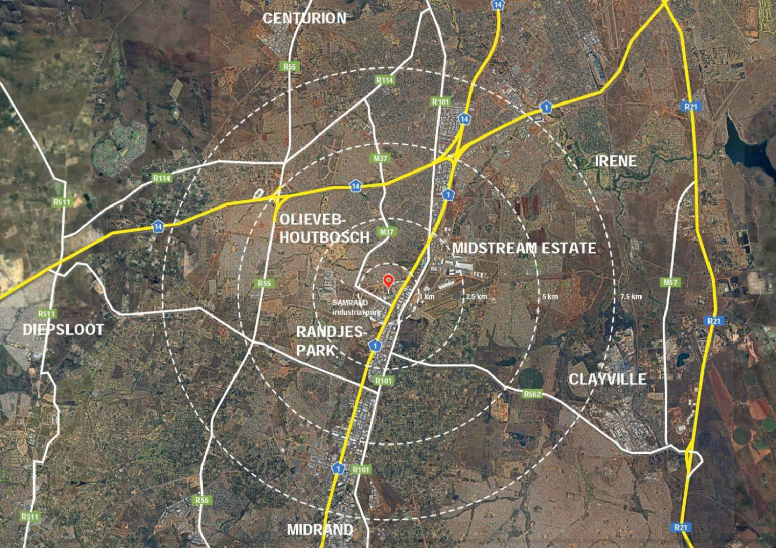 This versatile space is optimally suited for a range of commercial operations, including warehousing, light manufacturing, distribution, or corporate offices requiring significant storage and logistical capabilities. The business park features comprehensive security measures, including a robust multi-strand electric fence, a manned guardhouse, controlled access gates, and an advanced intercom system. Samrand Business Park is strategically located in Centurion, offering prime access to major arterial routes and transport networks, making it an ideal location for businesses focused on logistics and regional distribution within South Africa's economic heartland.