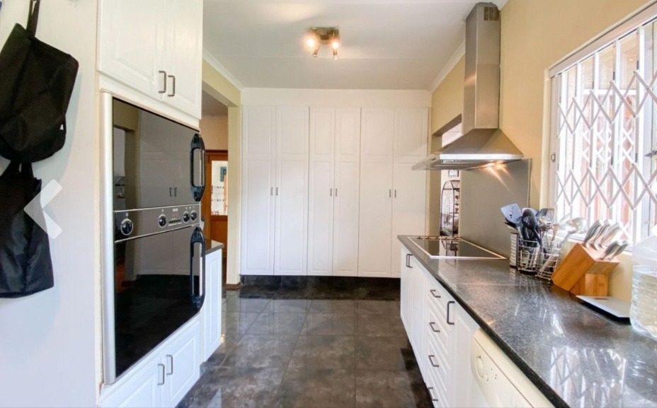 Discover this spacious 4-bedroom, 3-bathroom home available for rent in the desirable Eden Glen suburb of Edenvale. This property offers ample living space for families. The modern kitchen features sleek white cabinetry, dark countertops, and stainless steel appliances, providing a functional and stylish hub for culinary activities. Enjoy multiple living areas, including two lounges, a dining room, and a family/TV room, all benefiting from high vaulted ceilings and durable tiled flooring, creating an open and airy atmosphere. A built-in bar enhances the entertainment potential of the main living space.