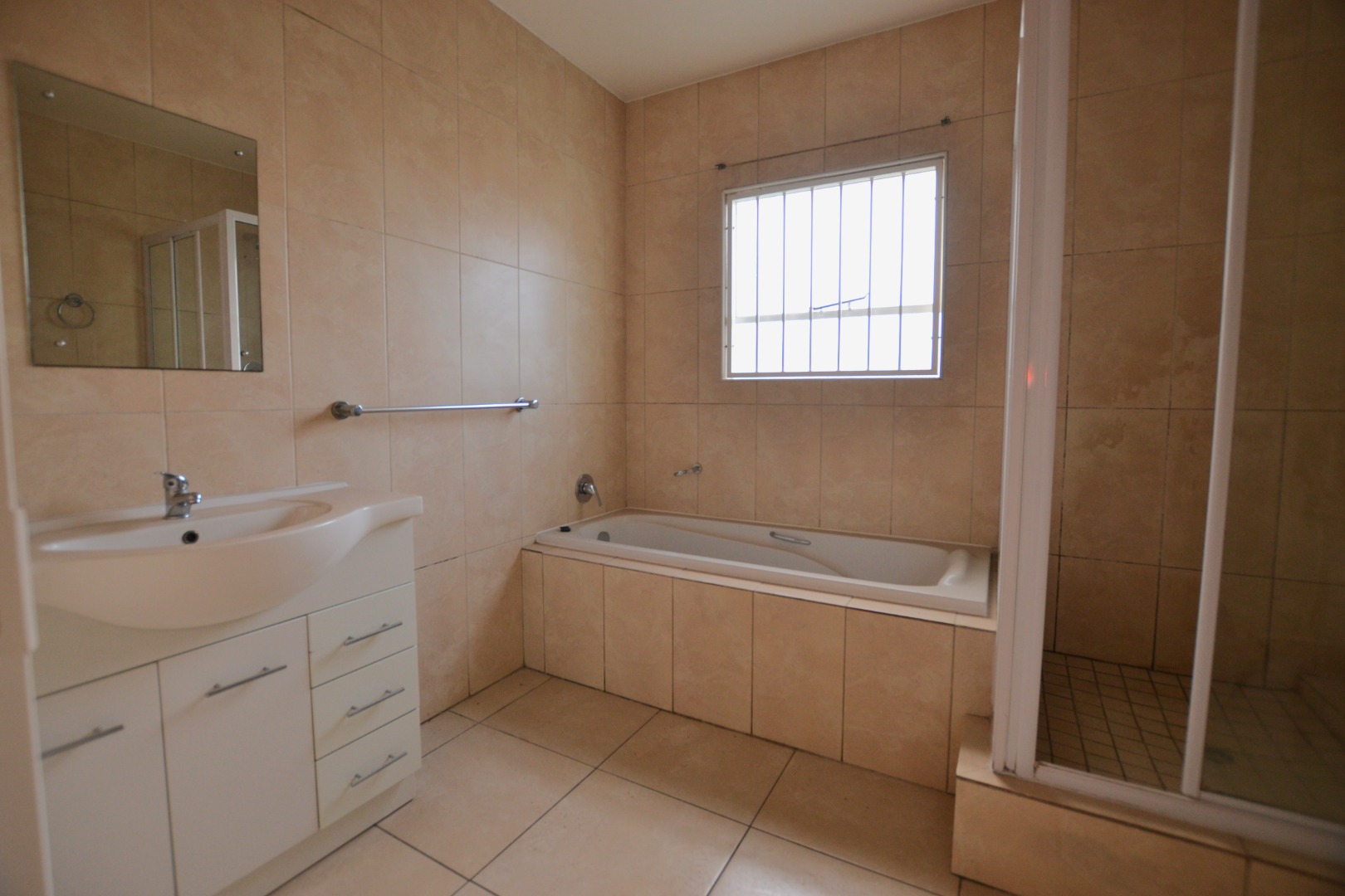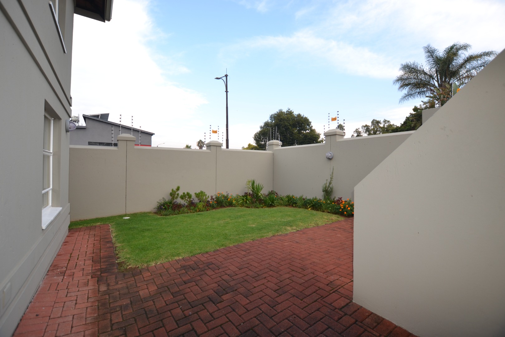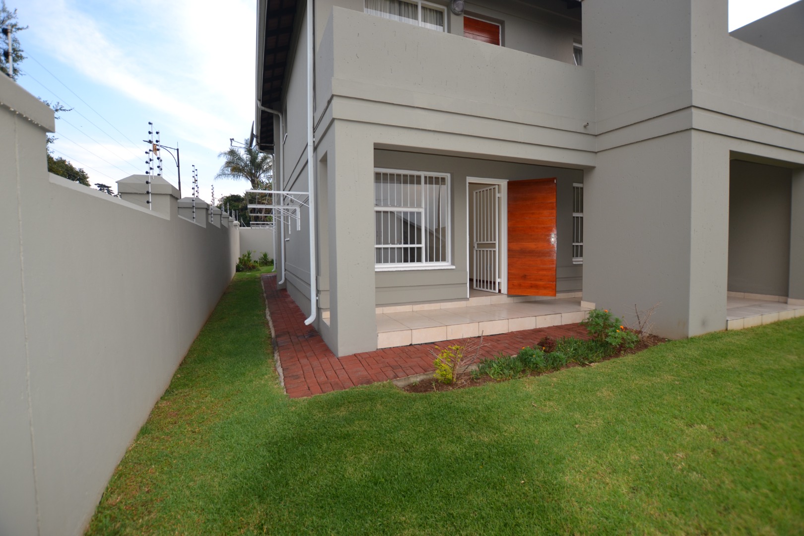 This modern 2-bedroom, 1-bathroom rental unit offers a comfortable and secure living environment in Edenvale Central. Spanning 99 square meters, the property features an open-concept living area seamlessly connecting to a functional kitchen. The kitchen is equipped with ample wooden cabinetry, a breakfast bar, a built-in oven, hob, and extractor fan, alongside a double sink, all set against durable tiled flooring and neutral walls. This unfurnished space provides a versatile canvas for tenants to personalize their home. The two well-proportioned bedrooms each include built-in wardrobes, offering practical storage solutions. The single bathroom is fully tiled and features both a separate bathtub and a glass-enclosed shower, complemented by a vanity with storage. The property extends its living space outdoors with an integrated built-in braai and a patio area, perfect for relaxation or entertaining. A small, well-maintained lawn adds a touch of greenery, while the paved driveway provides two dedicated parking spaces. Designed for peace of mind, this unit prioritizes security with features such as electric fencing, burglar bars on windows, and security gates. The high boundary walls further enhance privacy and safety, making it an ideal lock-up-and-go option for professionals or small families seeking a secure residence. Situated in Edenvale Central, Edenvale, South Africa, this location offers convenient access to local amenities and transport routes, catering to a practical urban lifestyle. Key Features: * 2 Bedrooms, 1 Bathroom * 99 sqm Floor Size * Open-plan living and kitchen * Built-in braai and patio * Two dedicated parking bays * Electric fencing and burglar bars * Built-in wardrobes * Unfurnished * Located in Edenvale Central