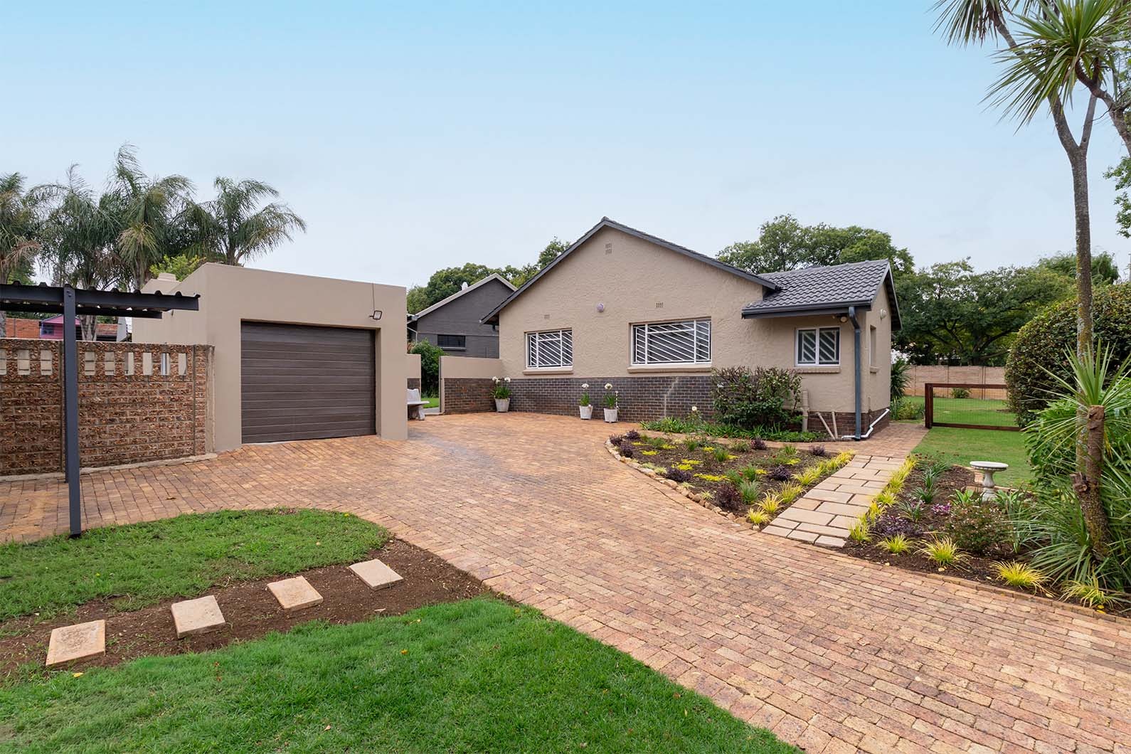 The landscaped garden and paved entertainment patio, complete with a Weber braai, provide the perfect setting for outdoor living. New Wendy house ideal for storage and a garden service once a week included in the rental.