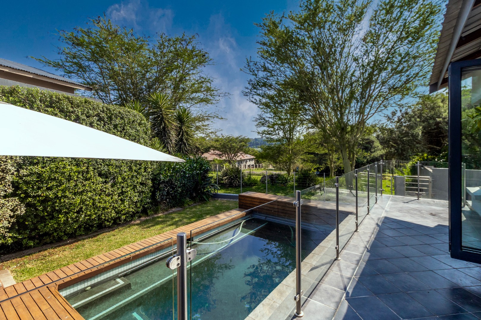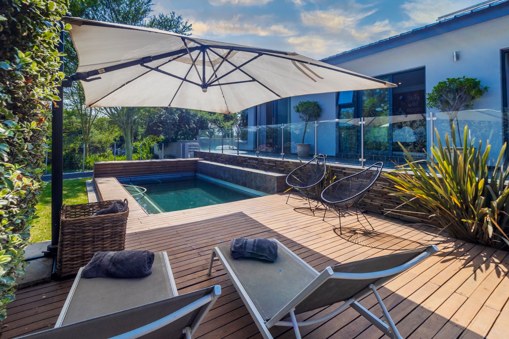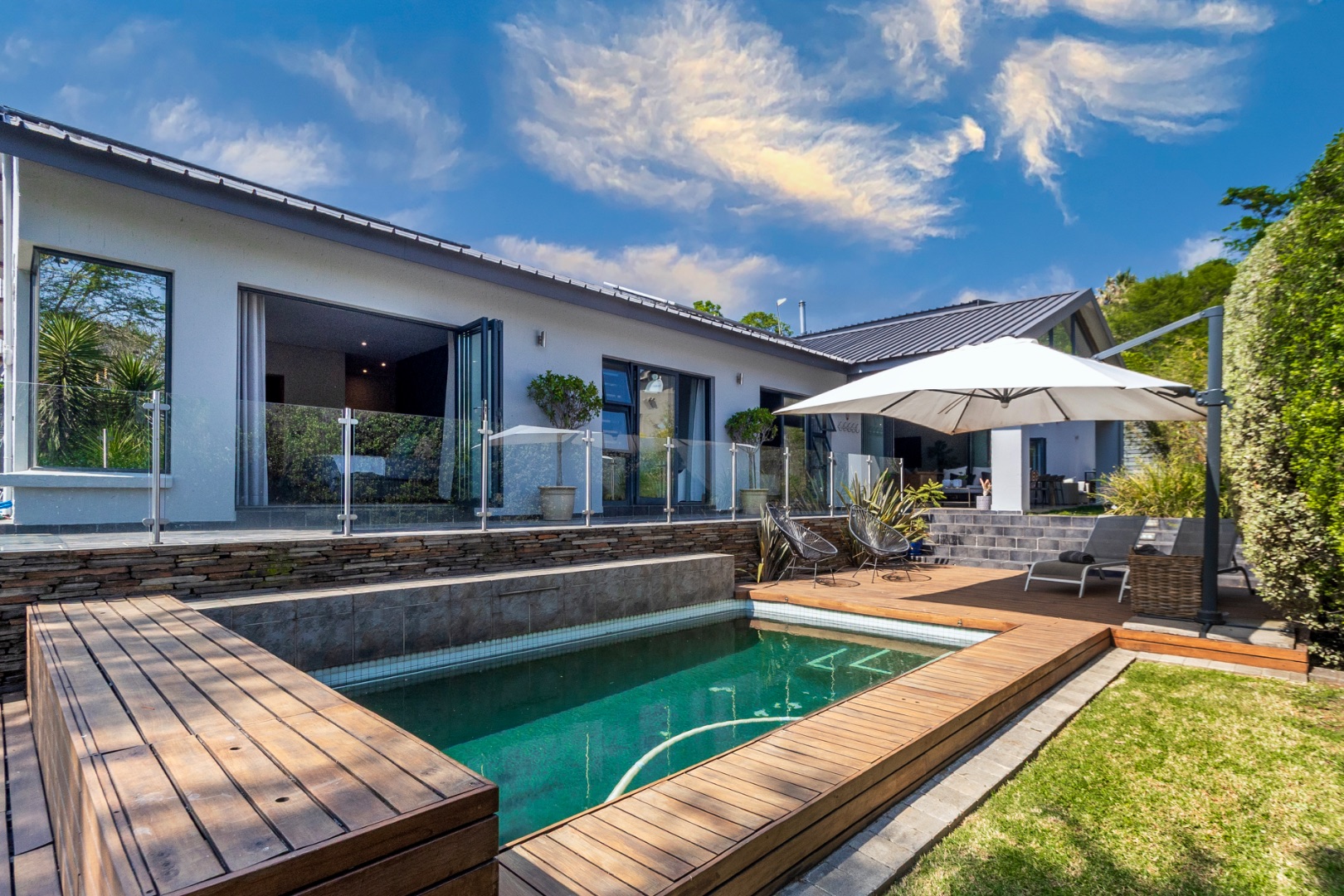 * Private swimming pool, wooden deck, and jacuzzi for ultimate relaxation.