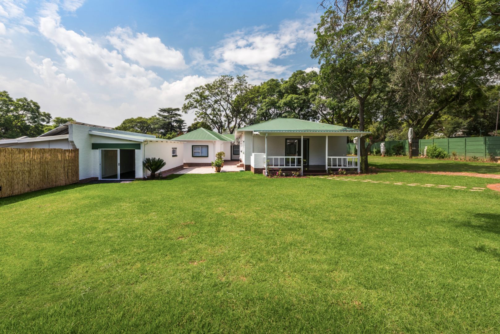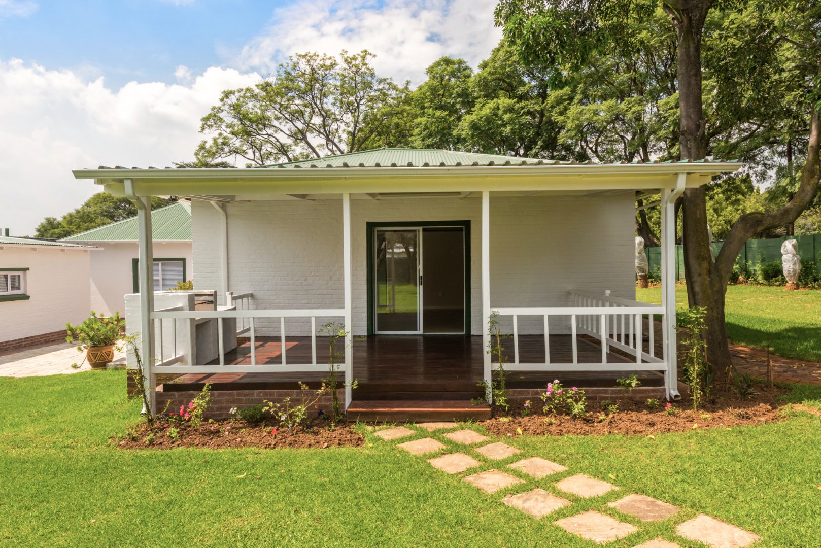 In addition to the main house, the property includes two fully independent flatlets, making it ideal for extended family living or flexible use of space. The first flatlet, approximately 92m², offers its own private entrance and double carport, and features a spacious open-plan kitchen, lounge and dining area, a large bedroom and a full bathroom. The second flatlet or teenage pad, approximately 36m², offers an open-plan bedroom and lounge, a separate kitchenette fitted with granite countertops and cupboards, and a fully renovated bathroom with a bath, vanity and toilet.