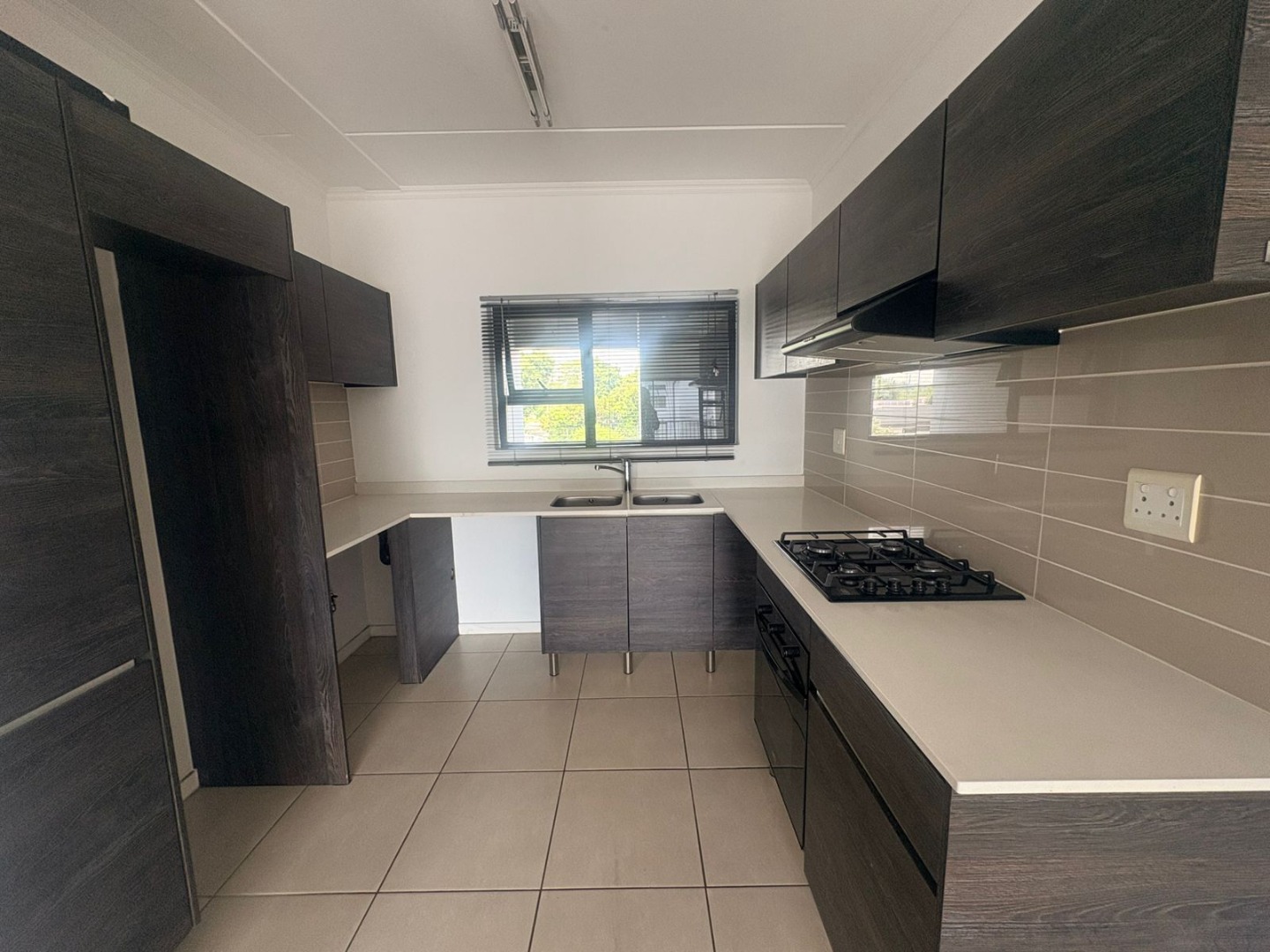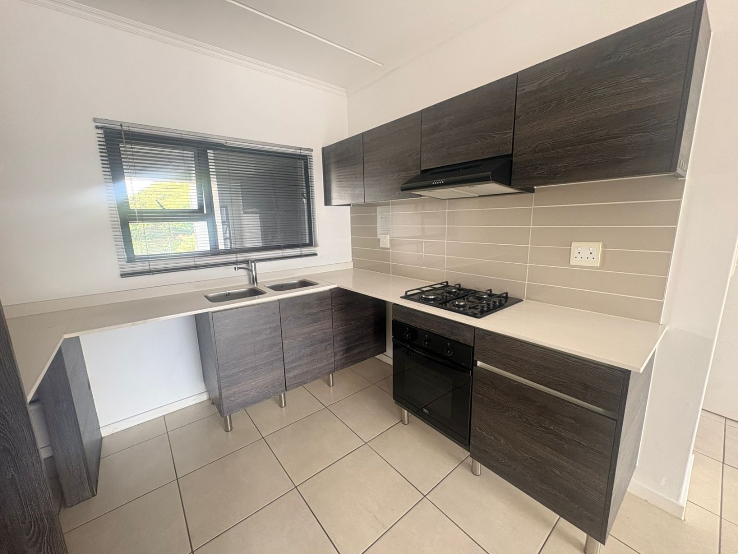 Discover modern living in this unfurnished 2-bedroom, 2-bathroom apartment located within a secure eco-estate in Modderfontein, Edenvale (Westlake Eco Estate). This contemporary rental property offers a well-designed open-plan layout, featuring light-coloured tiled flooring throughout and clean white walls, complemented by stylish dark accent walls in key areas. The spacious lounge and dining area flow seamlessly into a modern kitchen, equipped with dark wood-look cabinetry, light countertops, an integrated gas hob, oven, and extractor fan, providing a functional and aesthetically pleasing space for daily living.