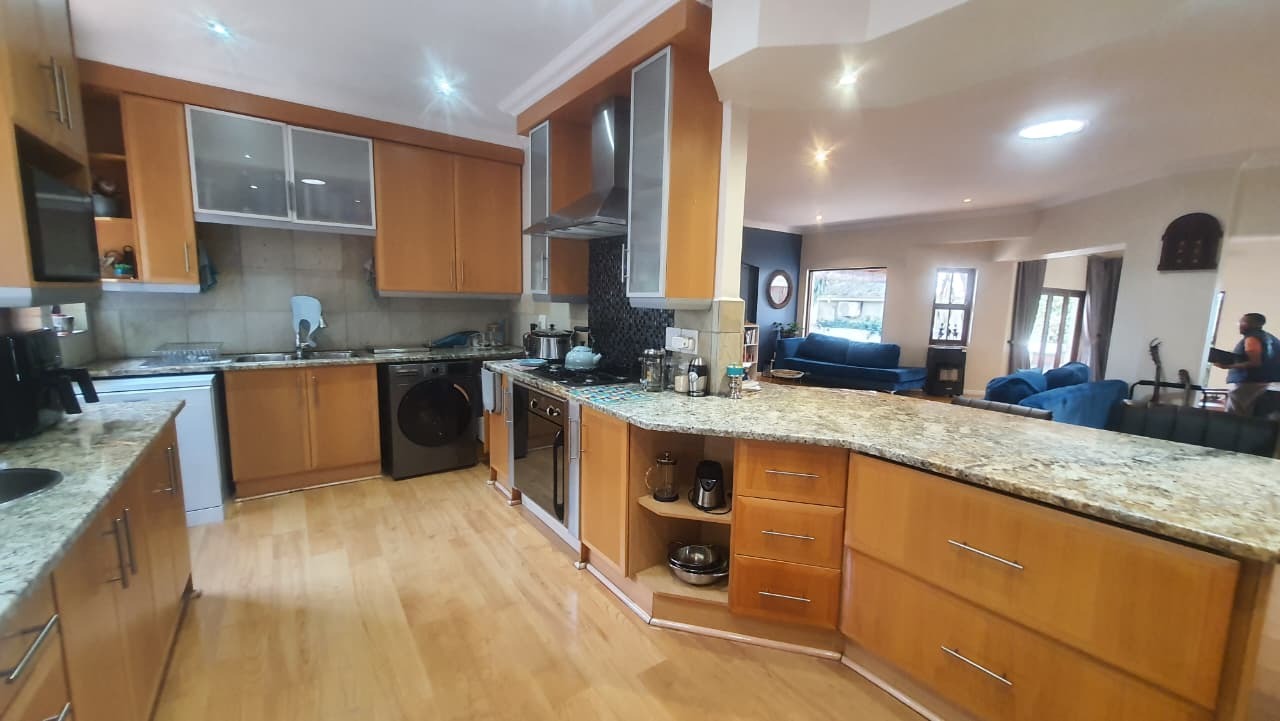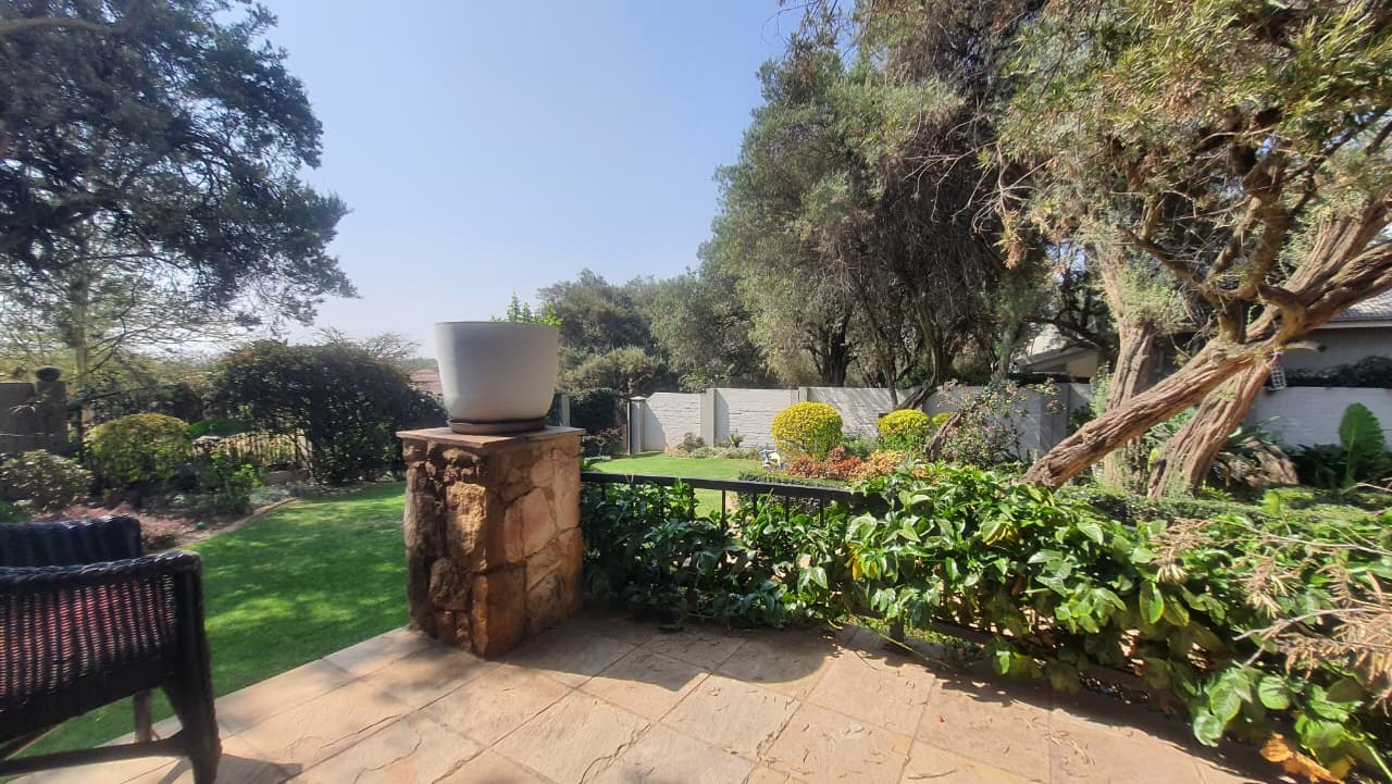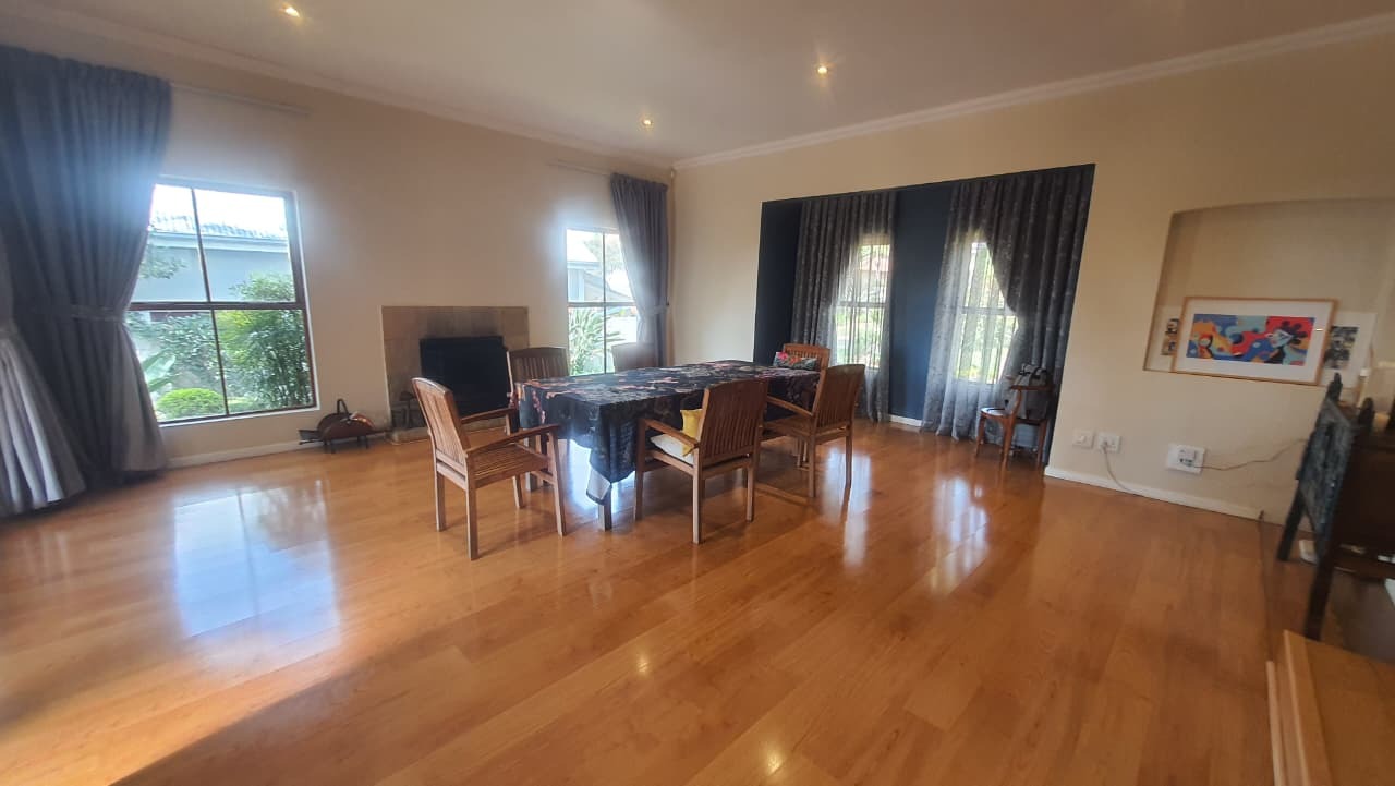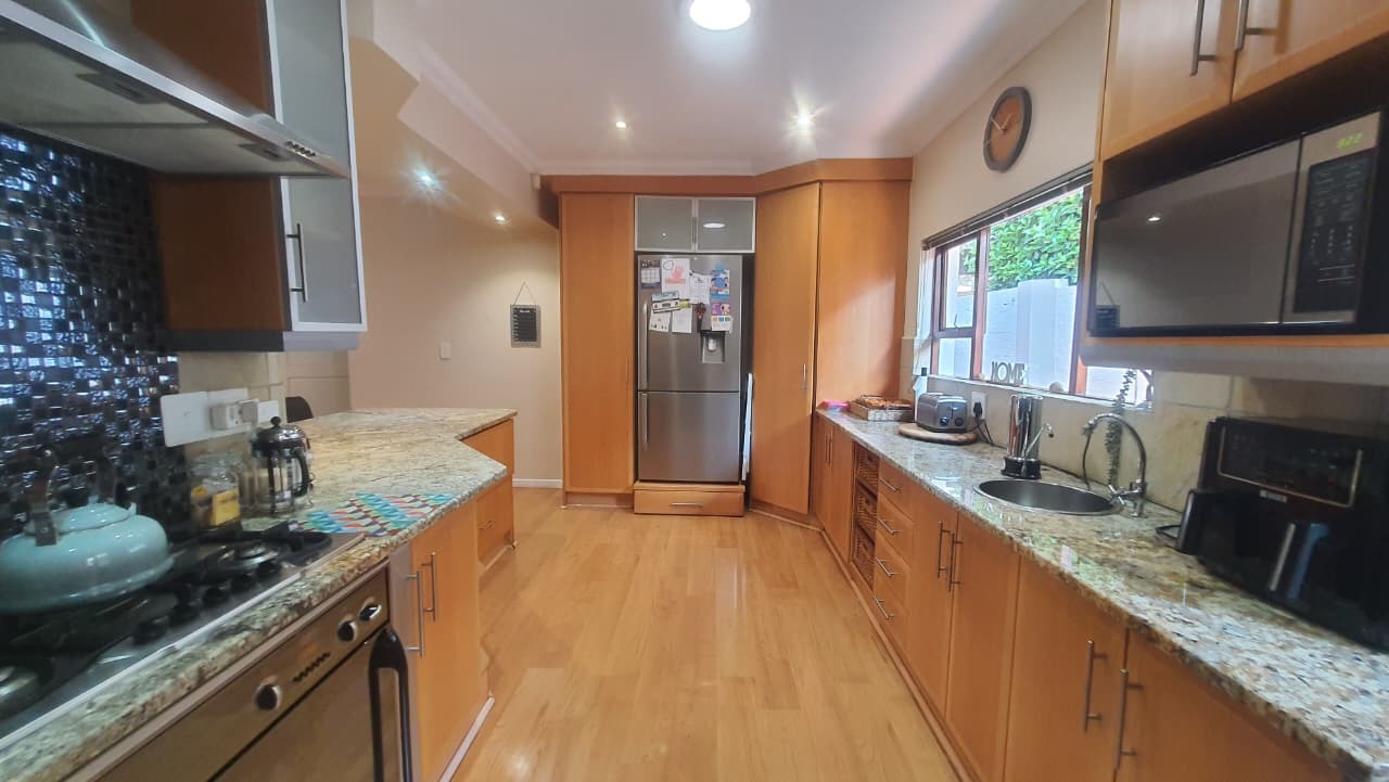 A large covered patio with a built-in braai overlooks a beautifully manicured garden, providing an ideal space for relaxing or entertaining. The property includes a double automated garage and additional driveway parking. There is no pool, making this home easy to maintain, and its position within the estate adds to its overall appeal.